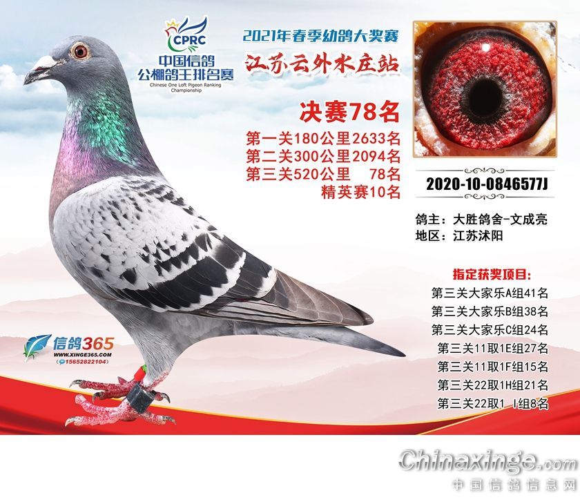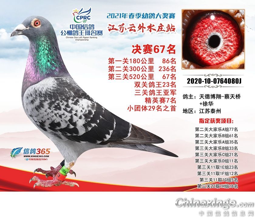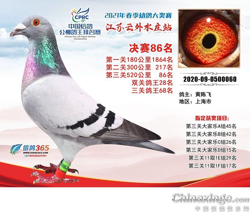 作品说明: 江苏云外水庄赛鸽中心2021年获奖鸽61-90名