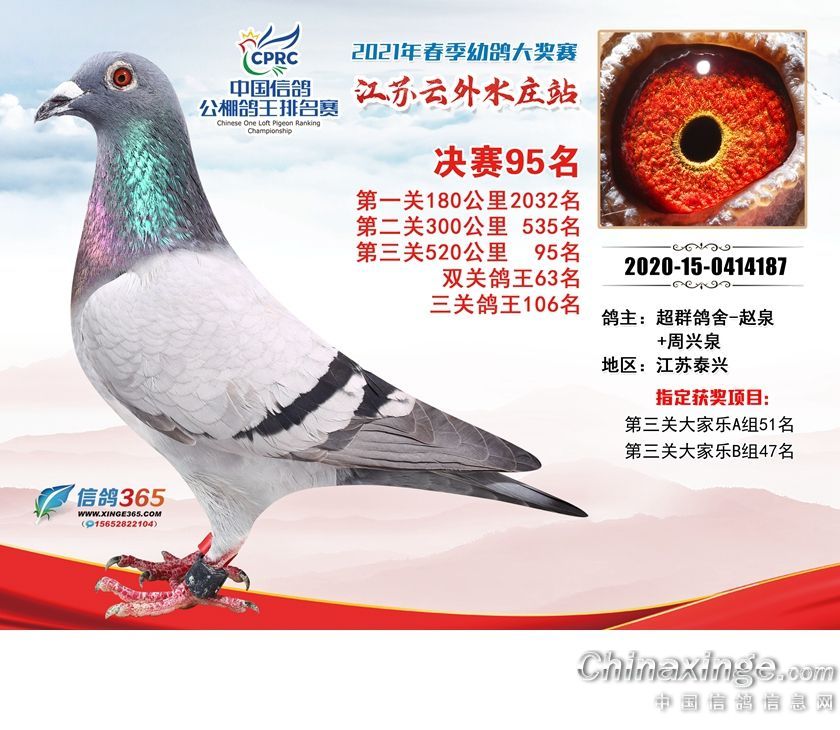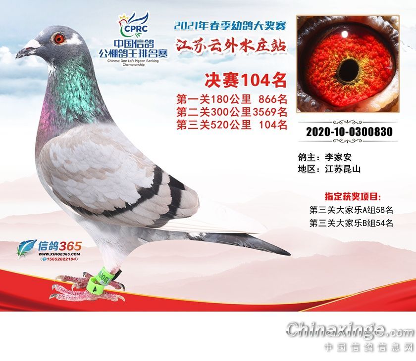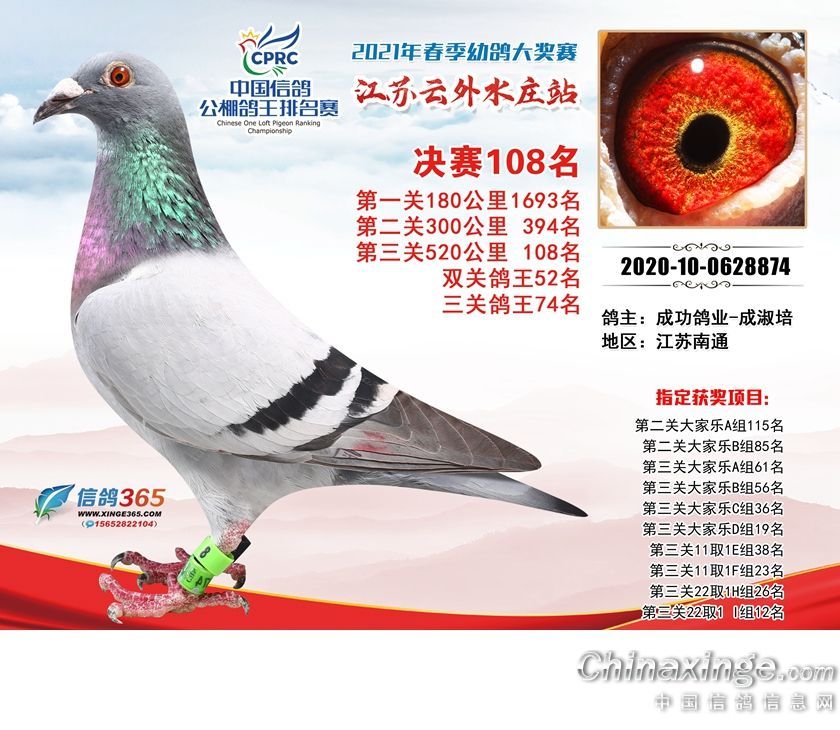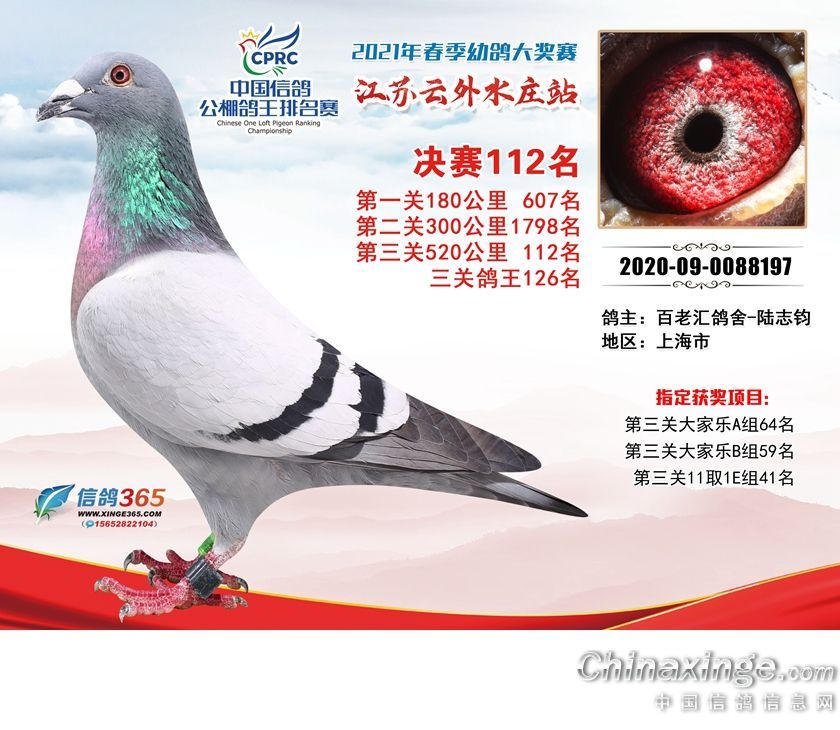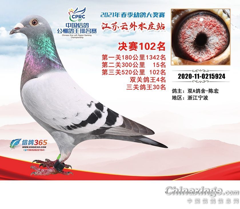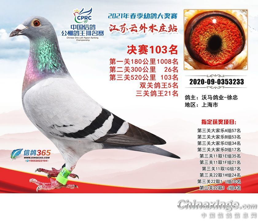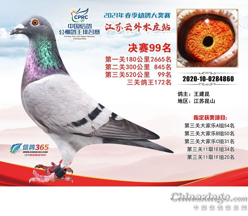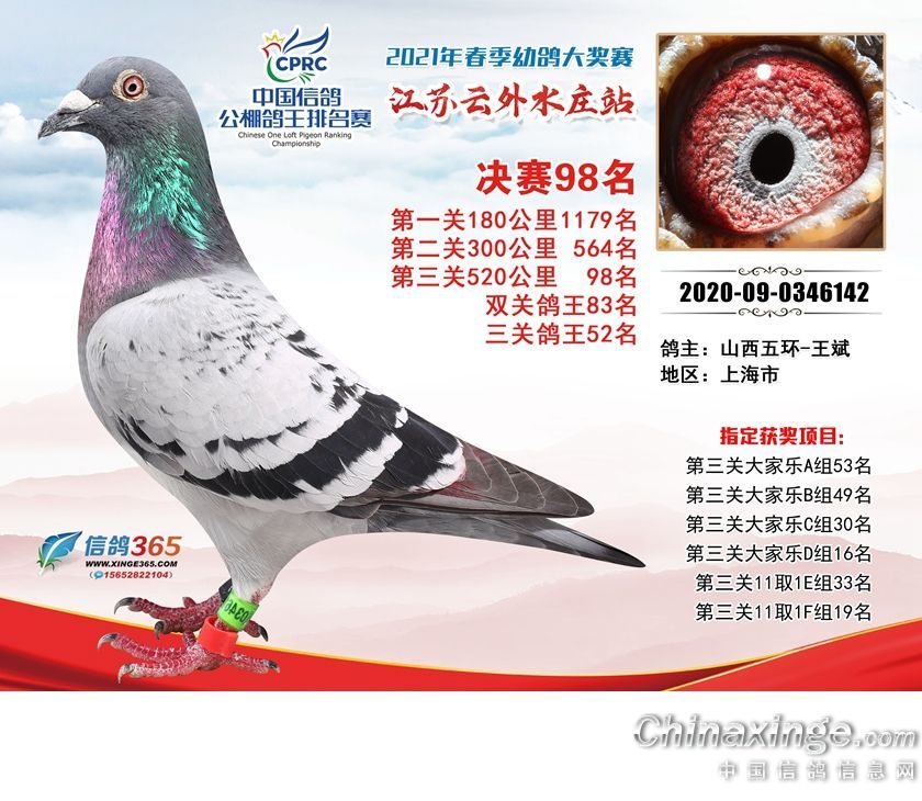 作品说明: 江苏云外水庄赛鸽中心2021年获奖鸽91-120名
