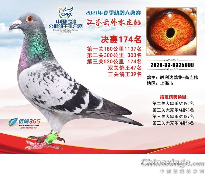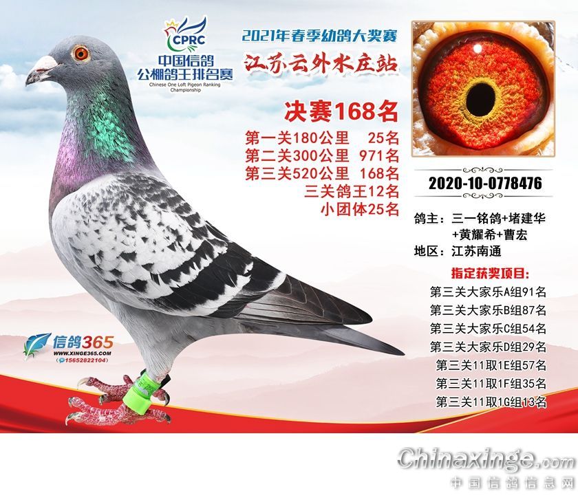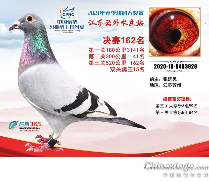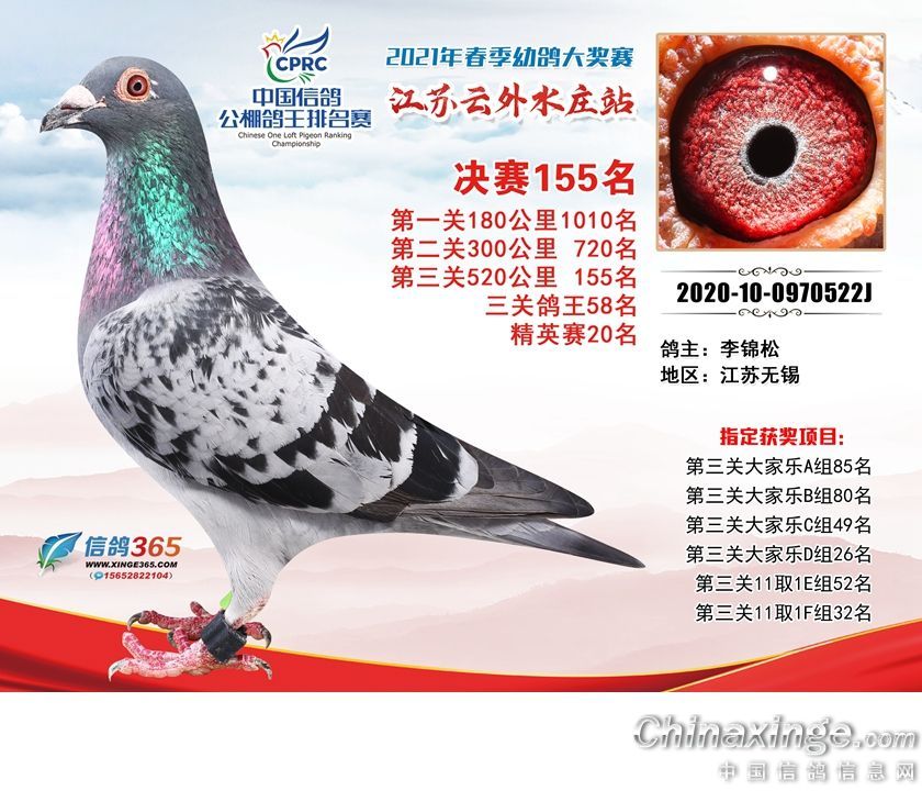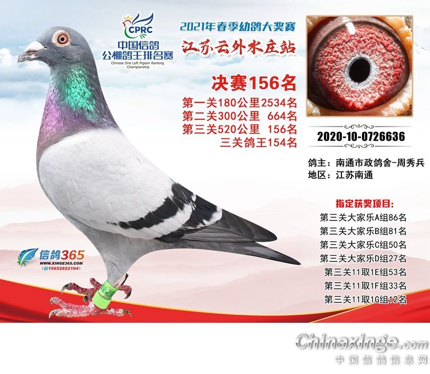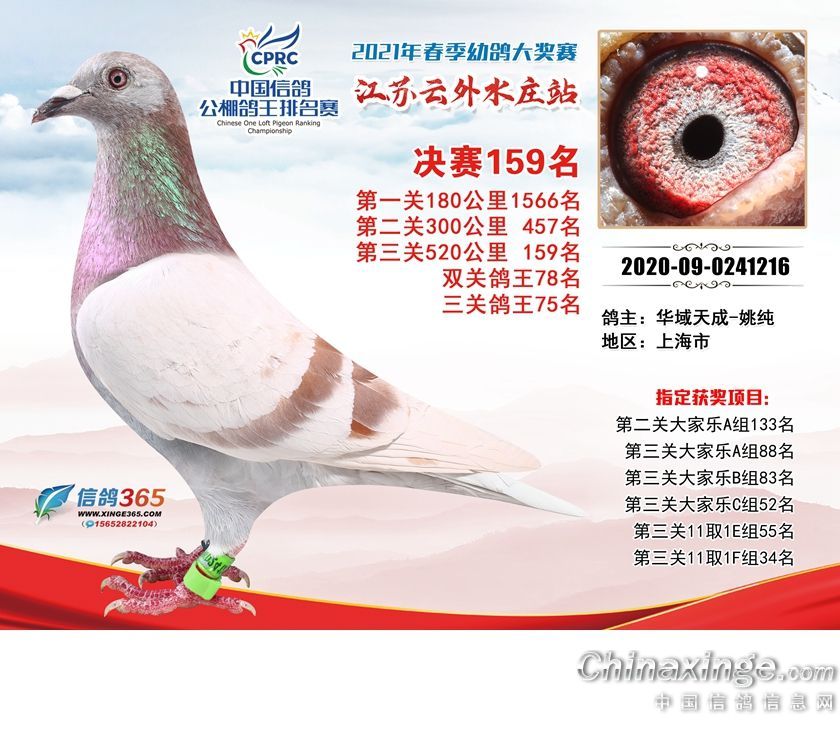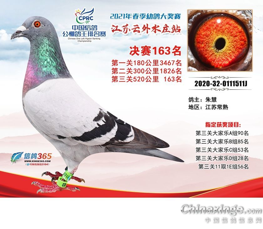 作品说明: 江苏云外水庄赛鸽中心2021年获奖鸽151-180名