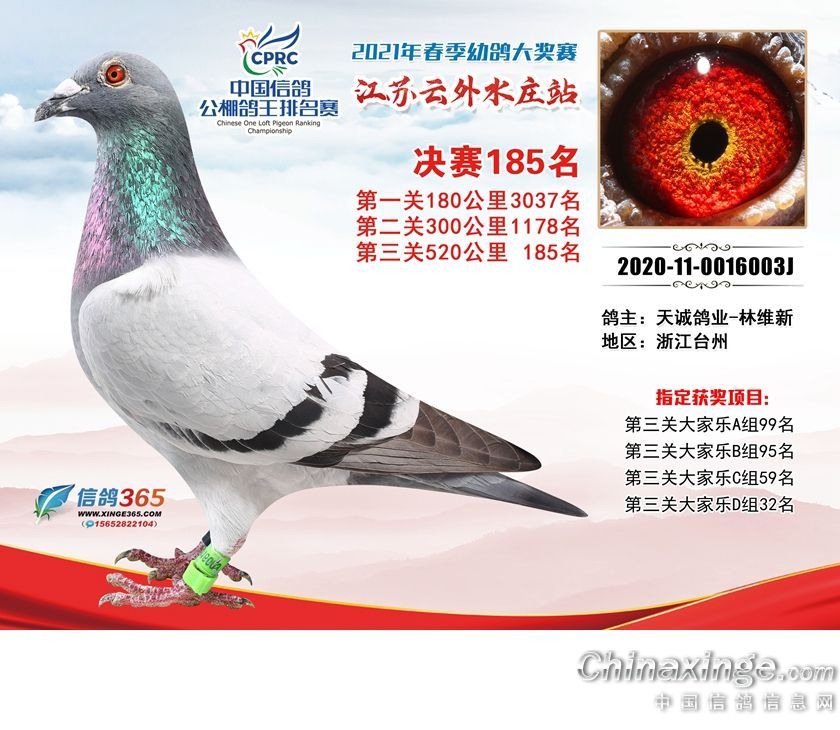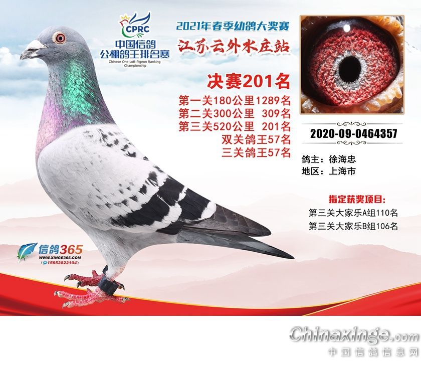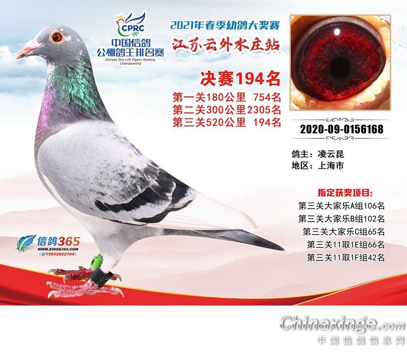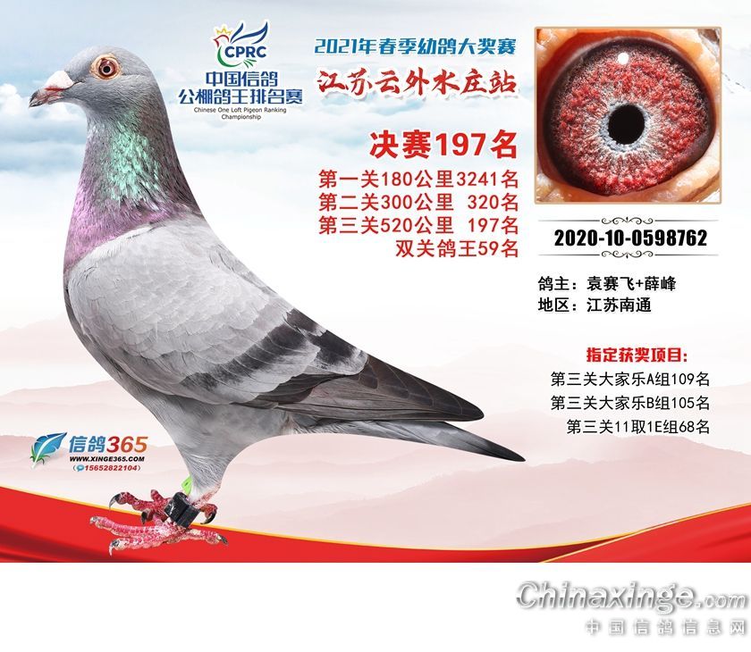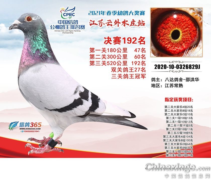 作品说明: 江苏云外水庄赛鸽中心2021年获奖鸽181-210名