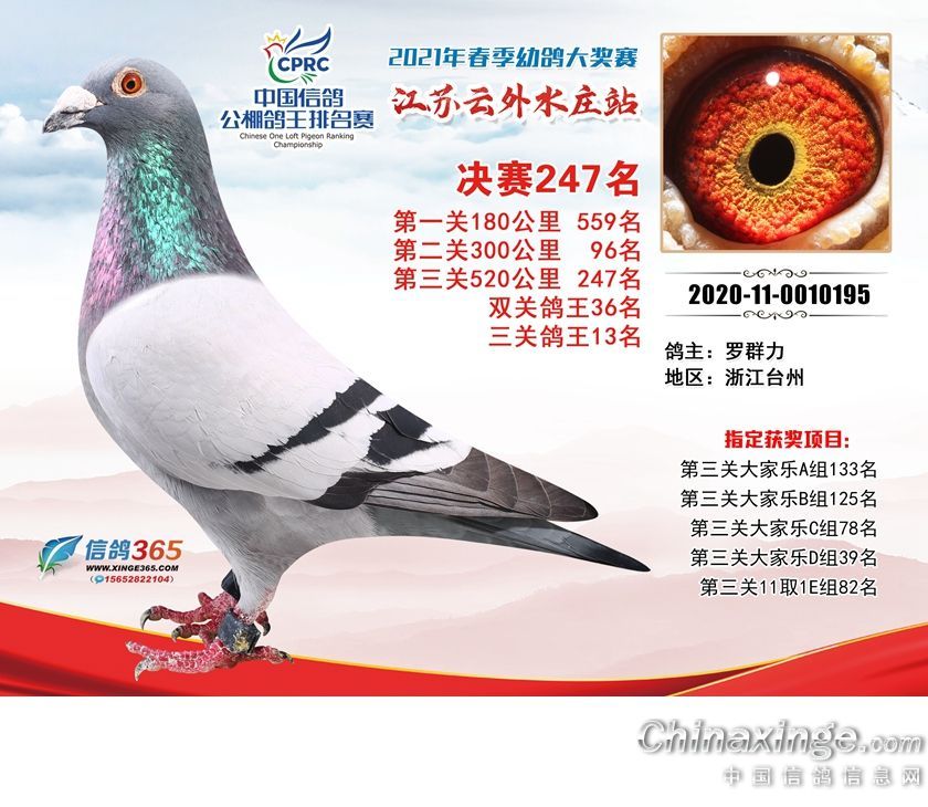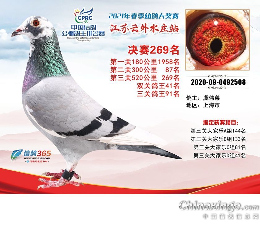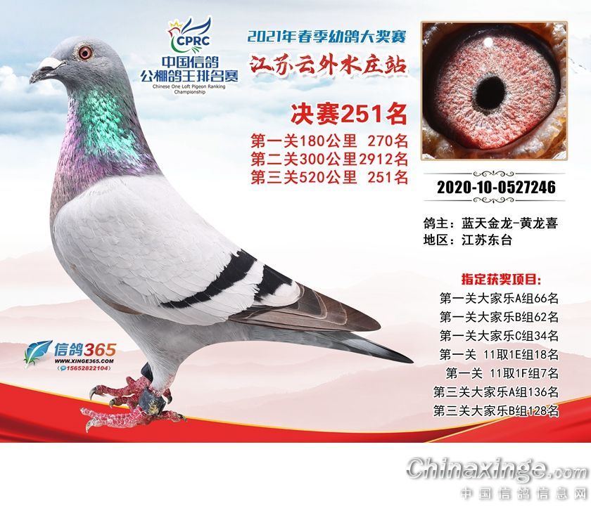 作品说明: 江苏云外水庄赛鸽中心2021年获奖鸽241-270名