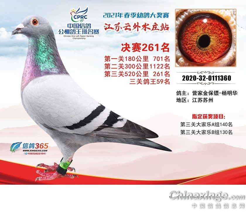 江苏云外水庄赛鸽中心2021年获奖鸽241-270名