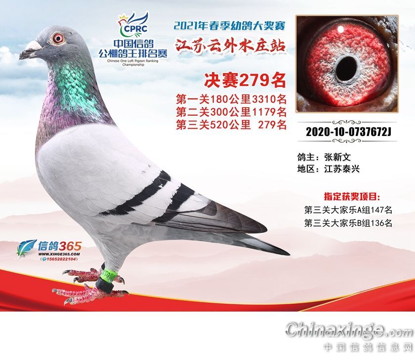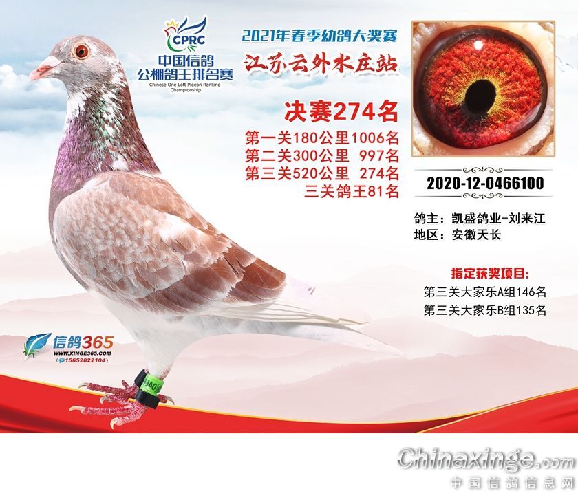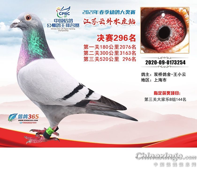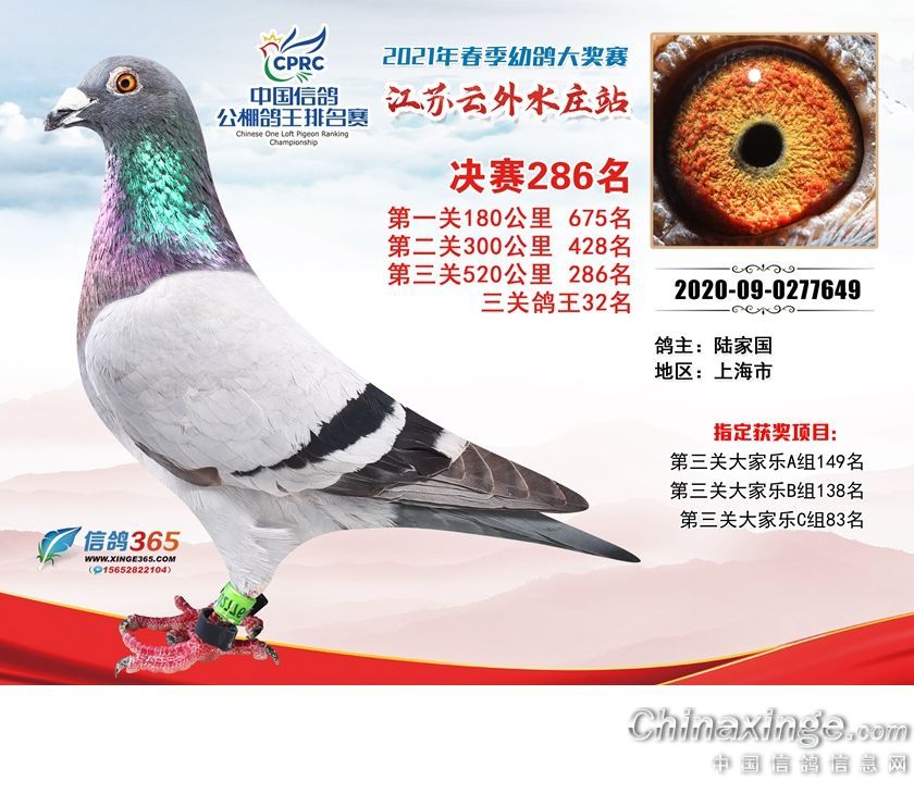 作品说明: 江苏云外水庄赛鸽中心2021年获奖鸽271-300名