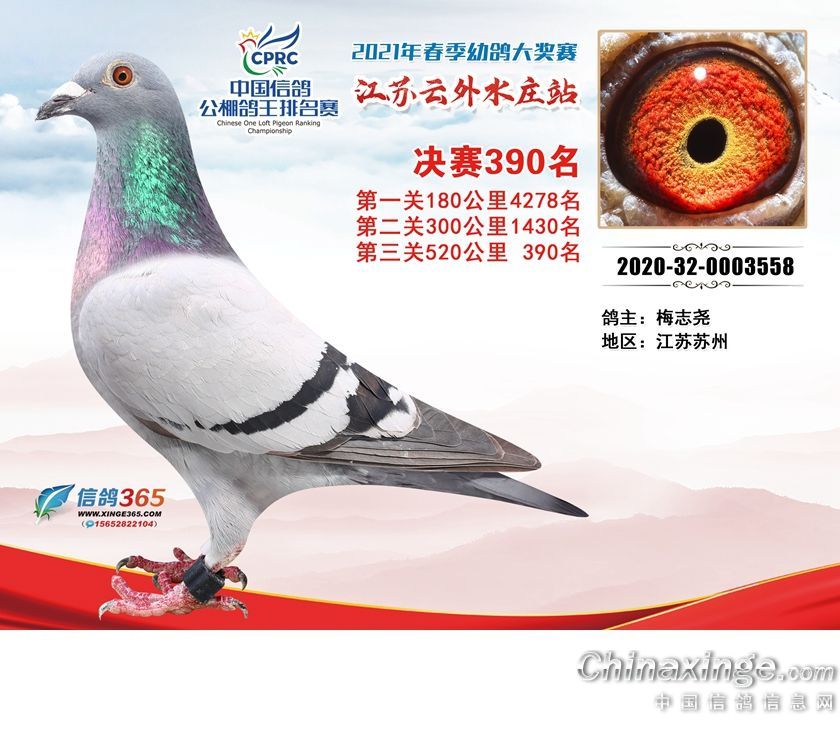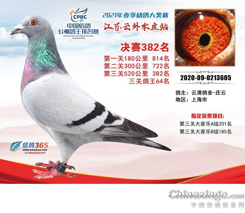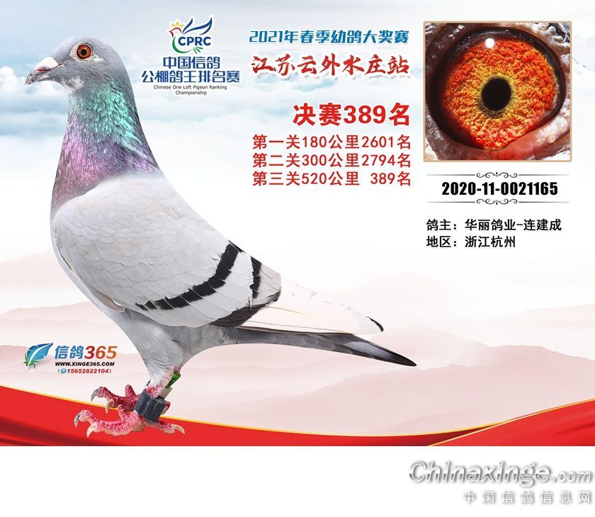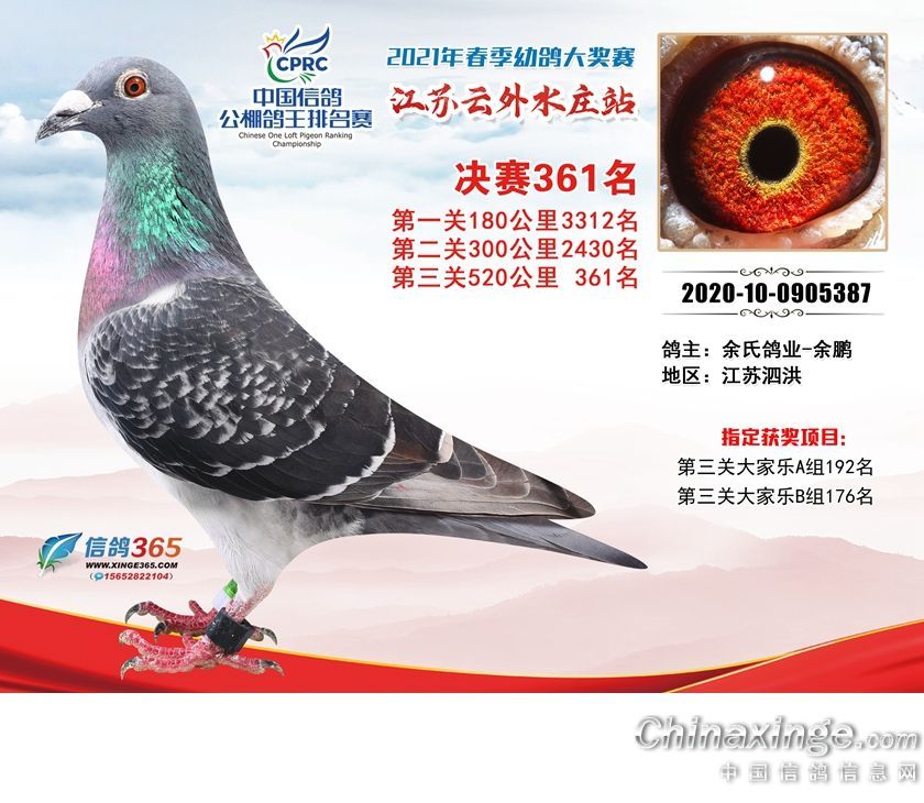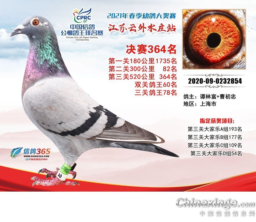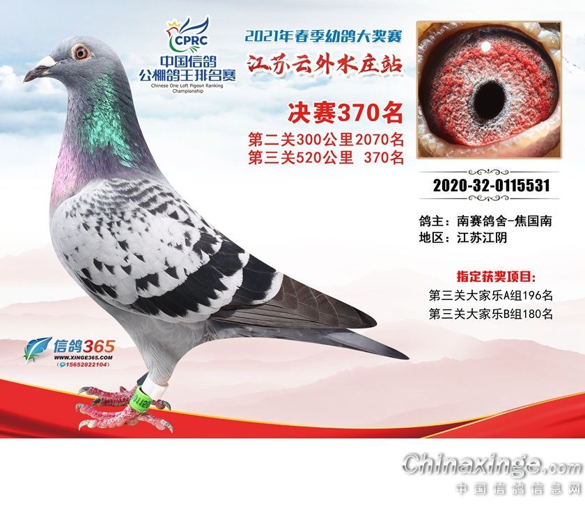 作品说明: 江苏云外水庄赛鸽中心2021年获奖鸽361-390名
