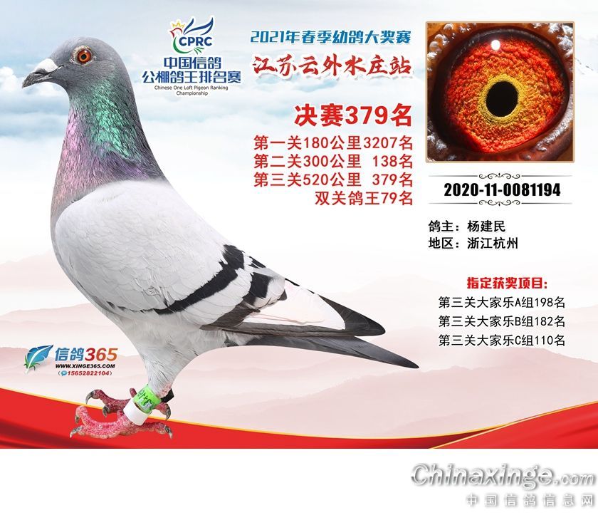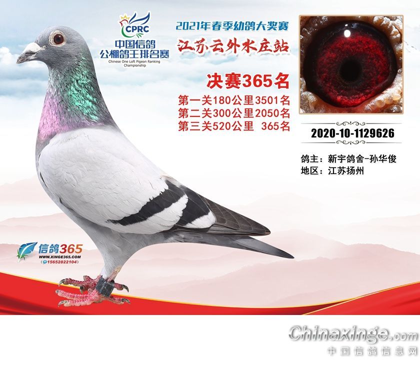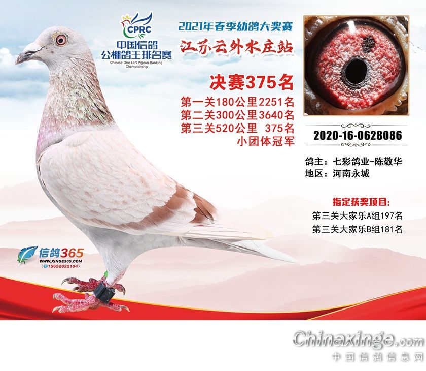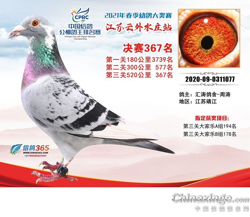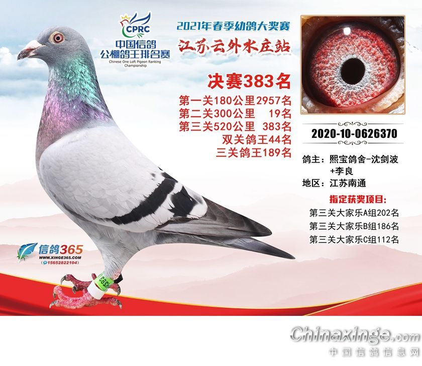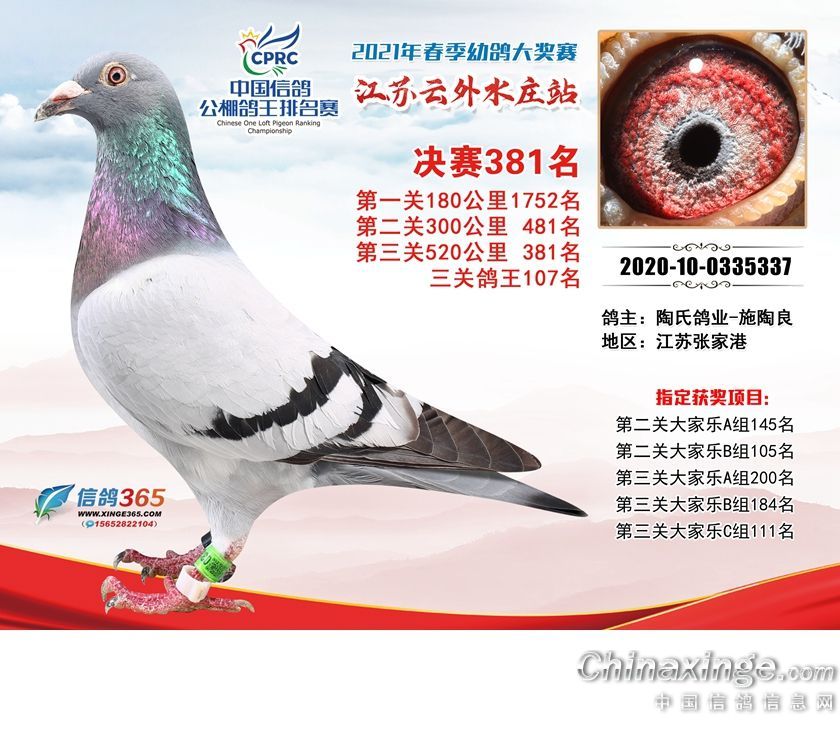 作品说明: 江苏云外水庄赛鸽中心2021年获奖鸽361-390名