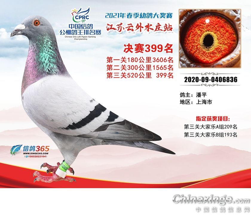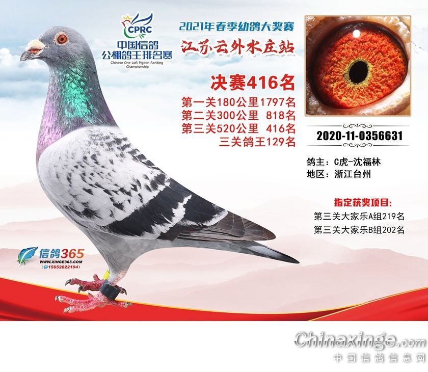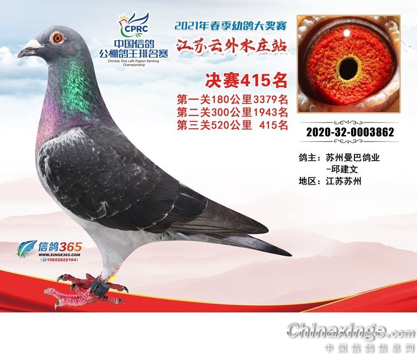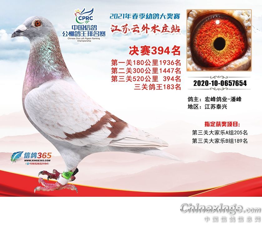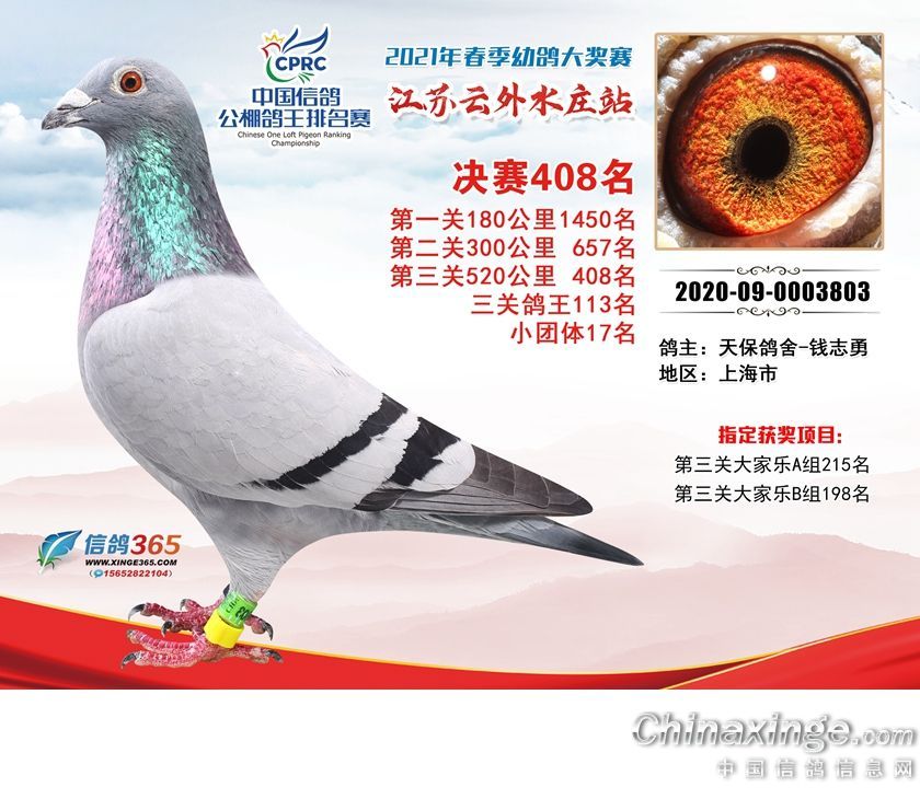 作品说明: 江苏云外水庄赛鸽中心2021年获奖鸽391-420名