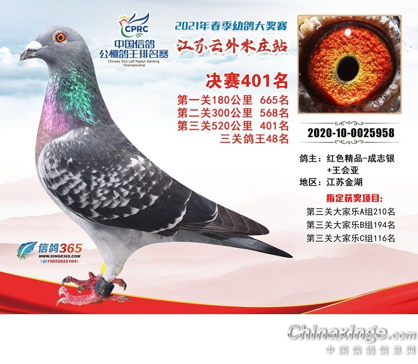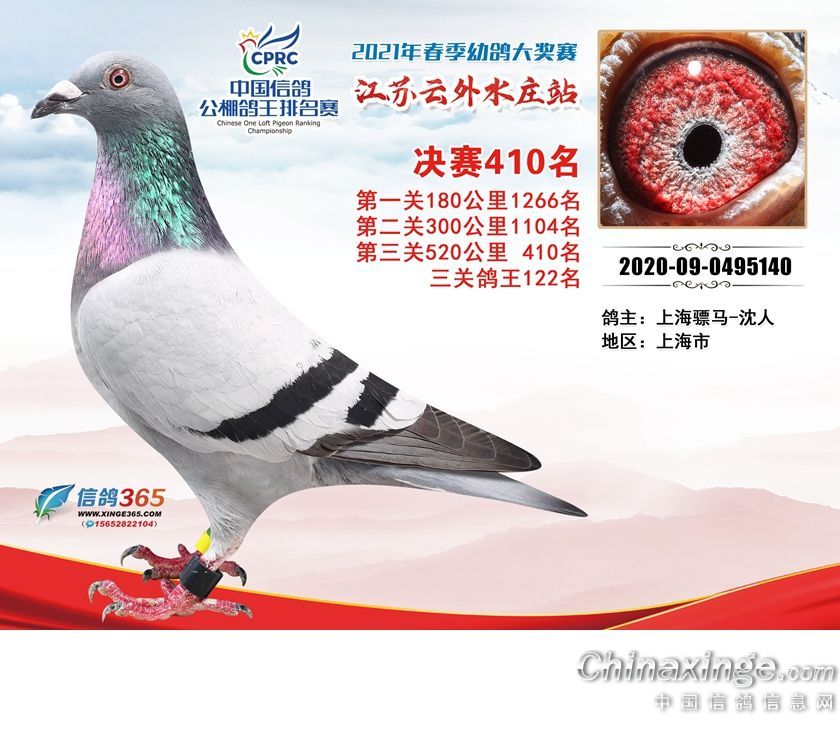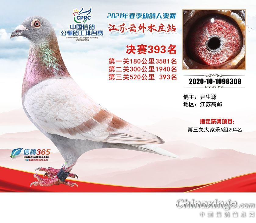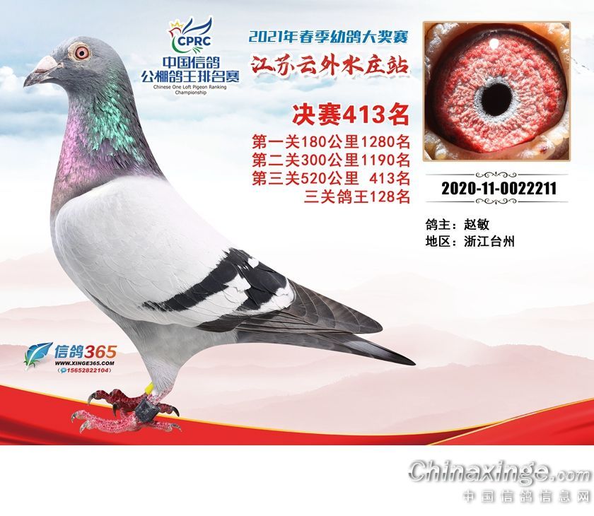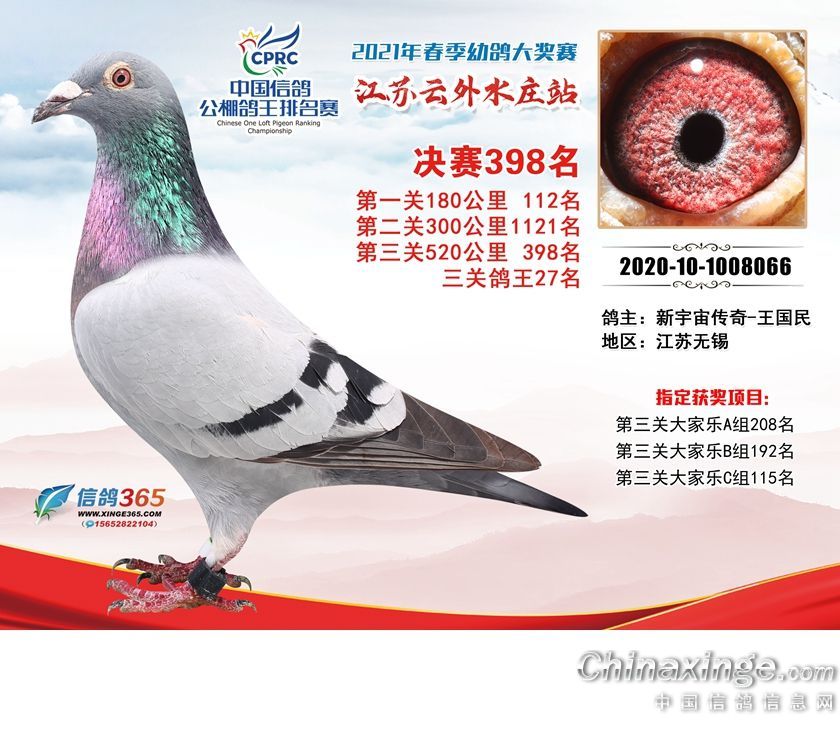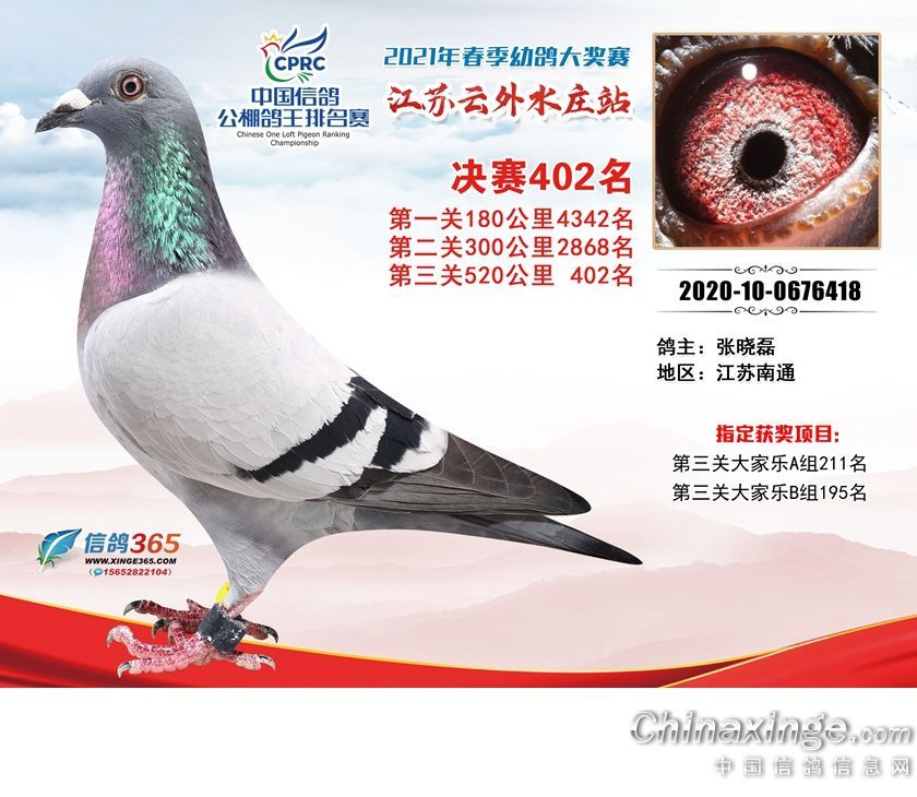 作品说明: 江苏云外水庄赛鸽中心2021年获奖鸽391-420名