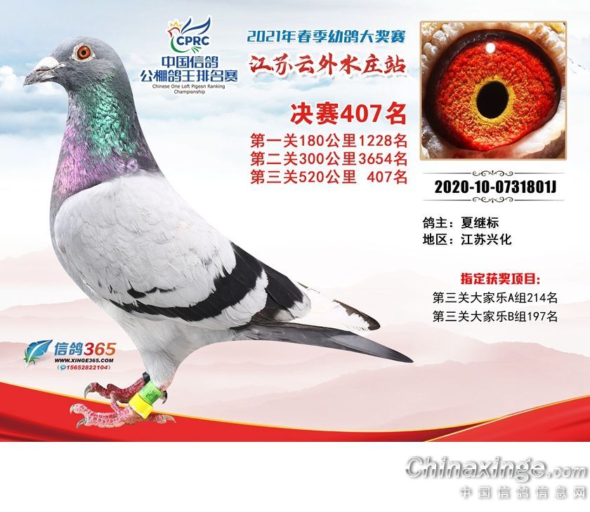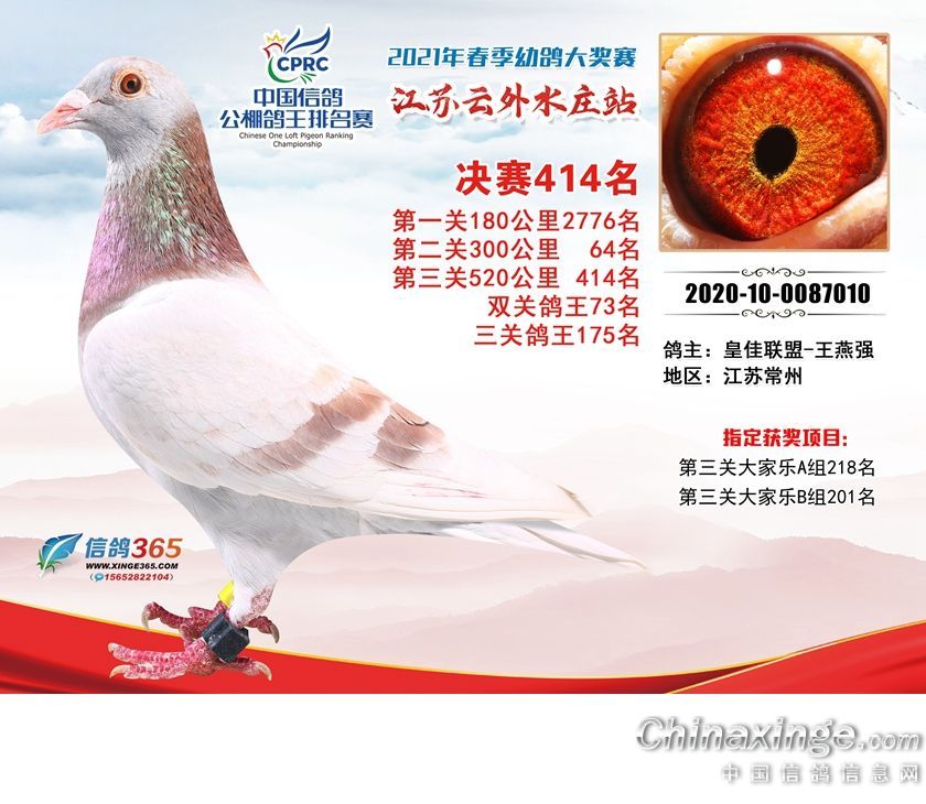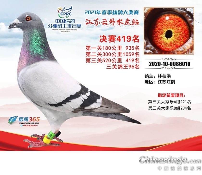 江苏云外水庄赛鸽中心2021年获奖鸽391-420名