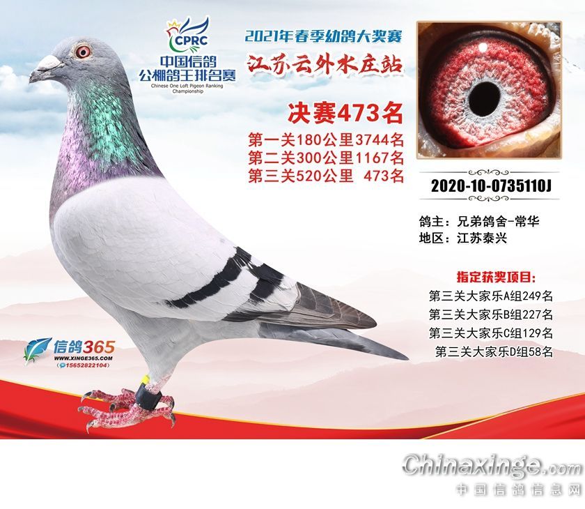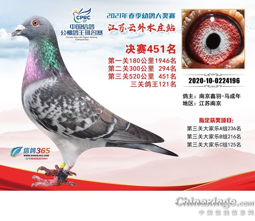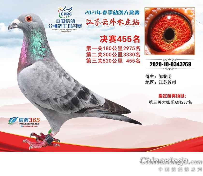 江苏云外水庄赛鸽中心2021年获奖鸽451-480名