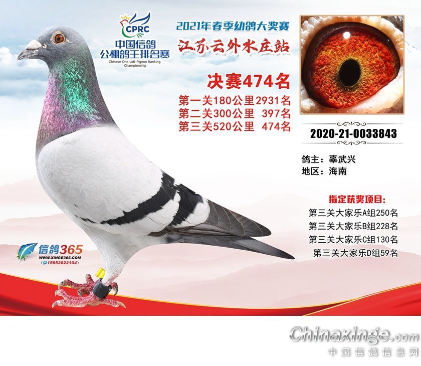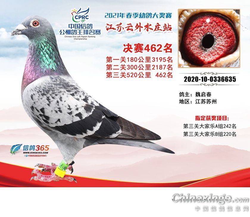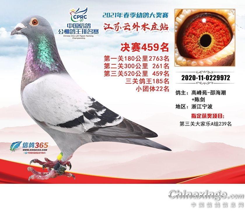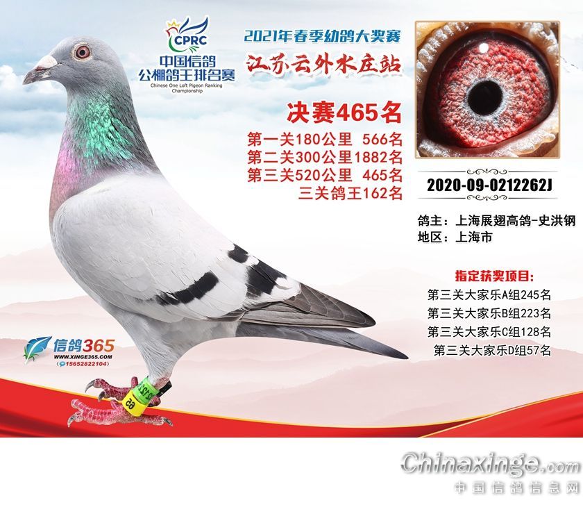 作品说明: 江苏云外水庄赛鸽中心2021年获奖鸽451-480名
