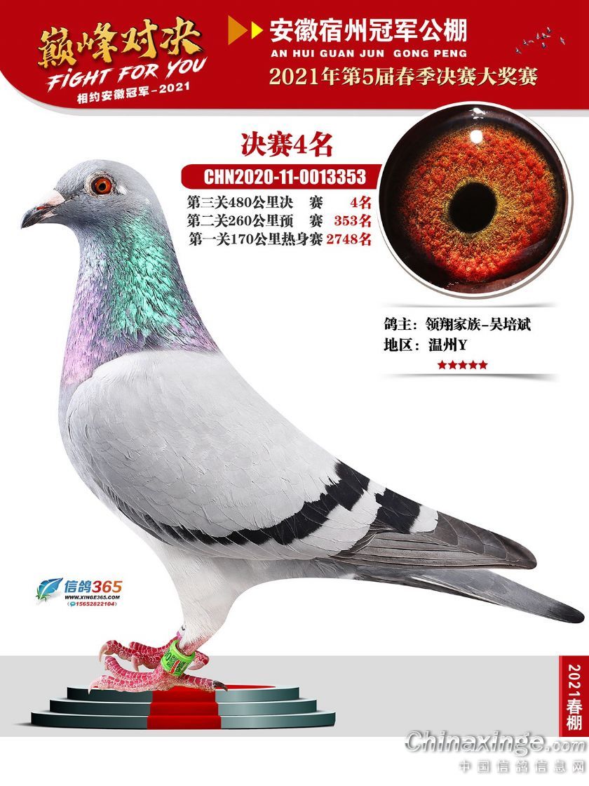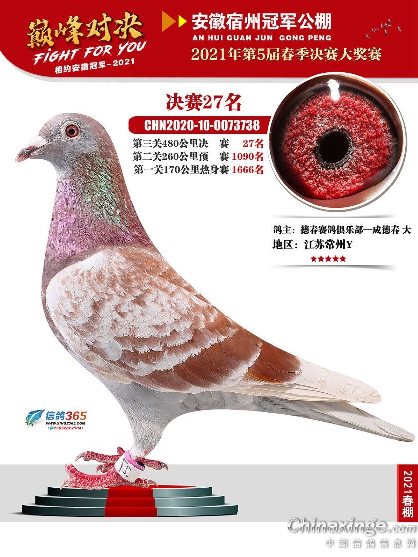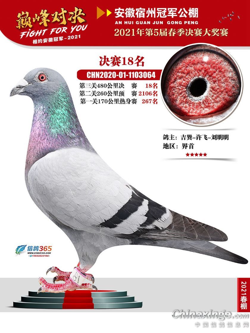 2021年春安徽宿州冠军公棚获奖鸽1-30名