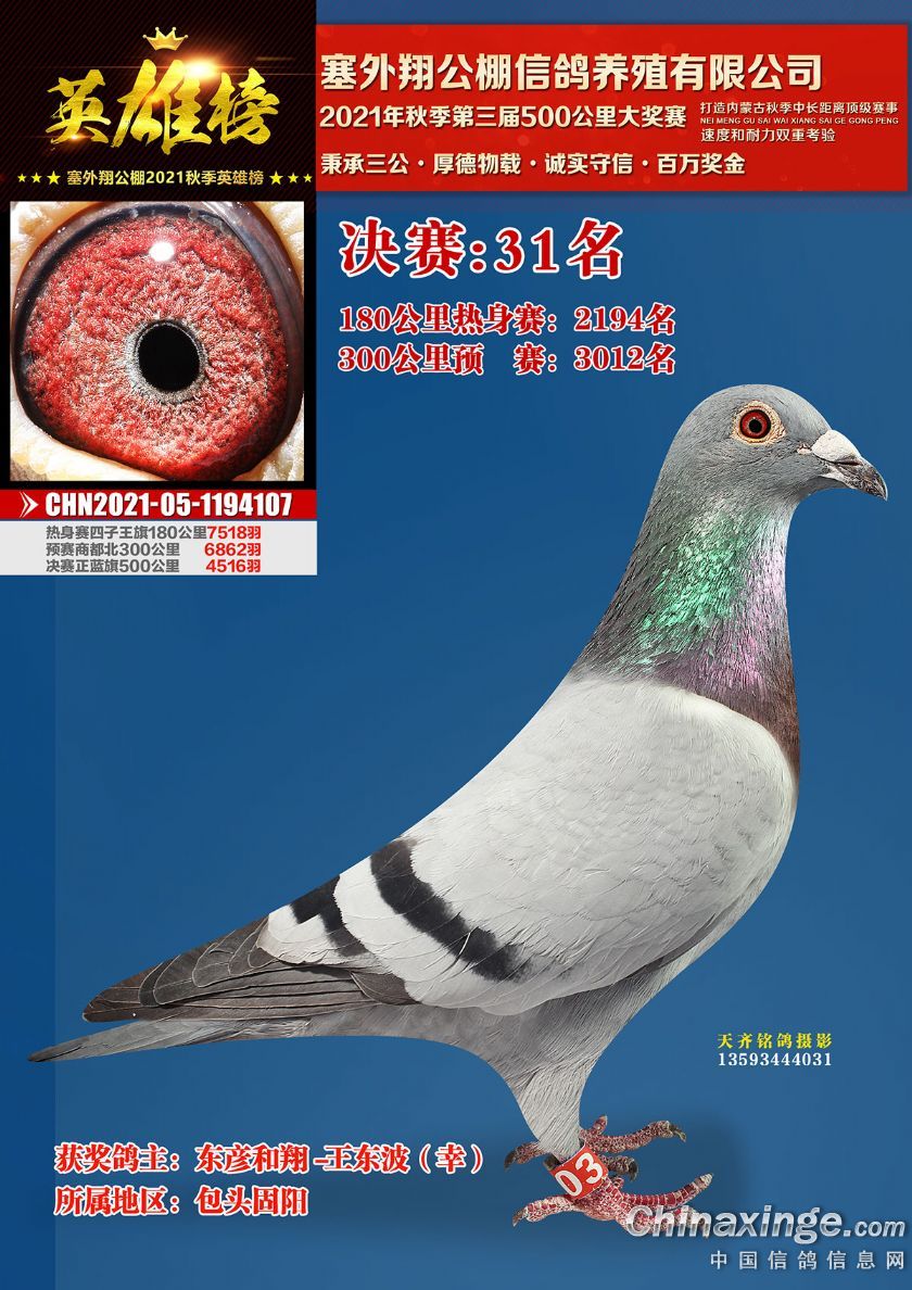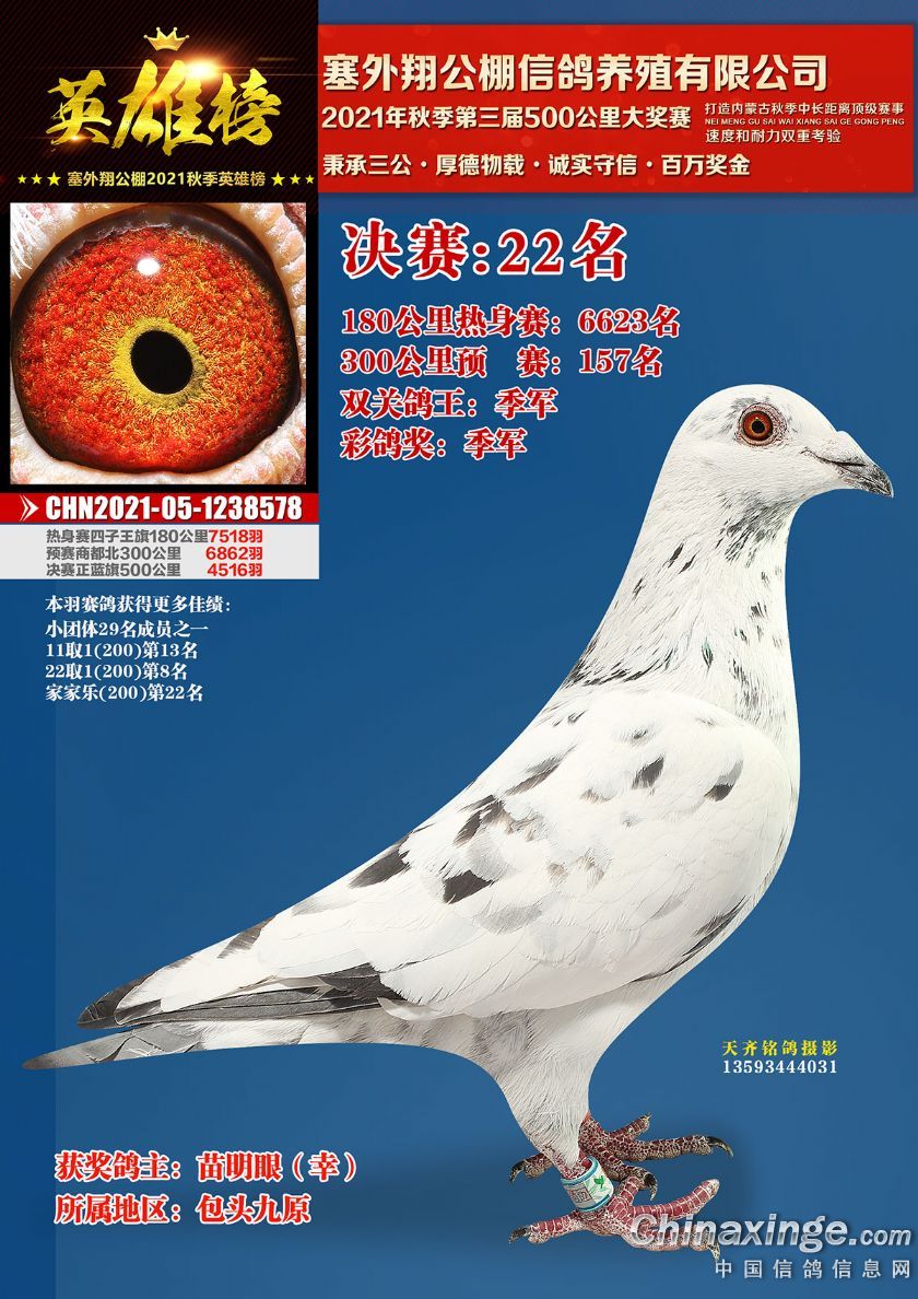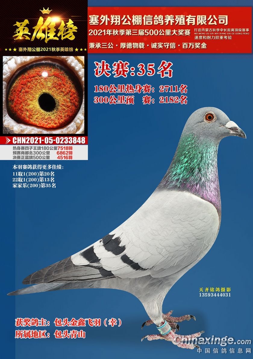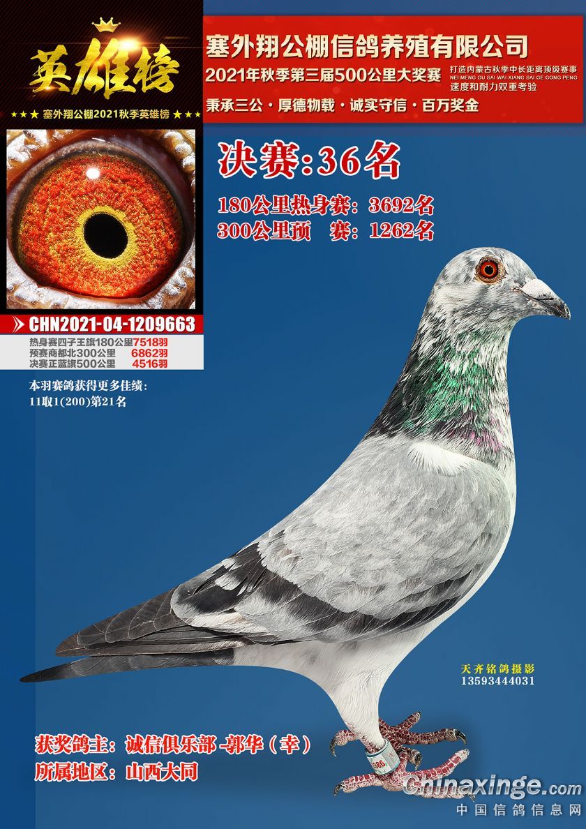 作品说明: 包头市塞外翔公棚2021年获奖鸽专辑(21-50)