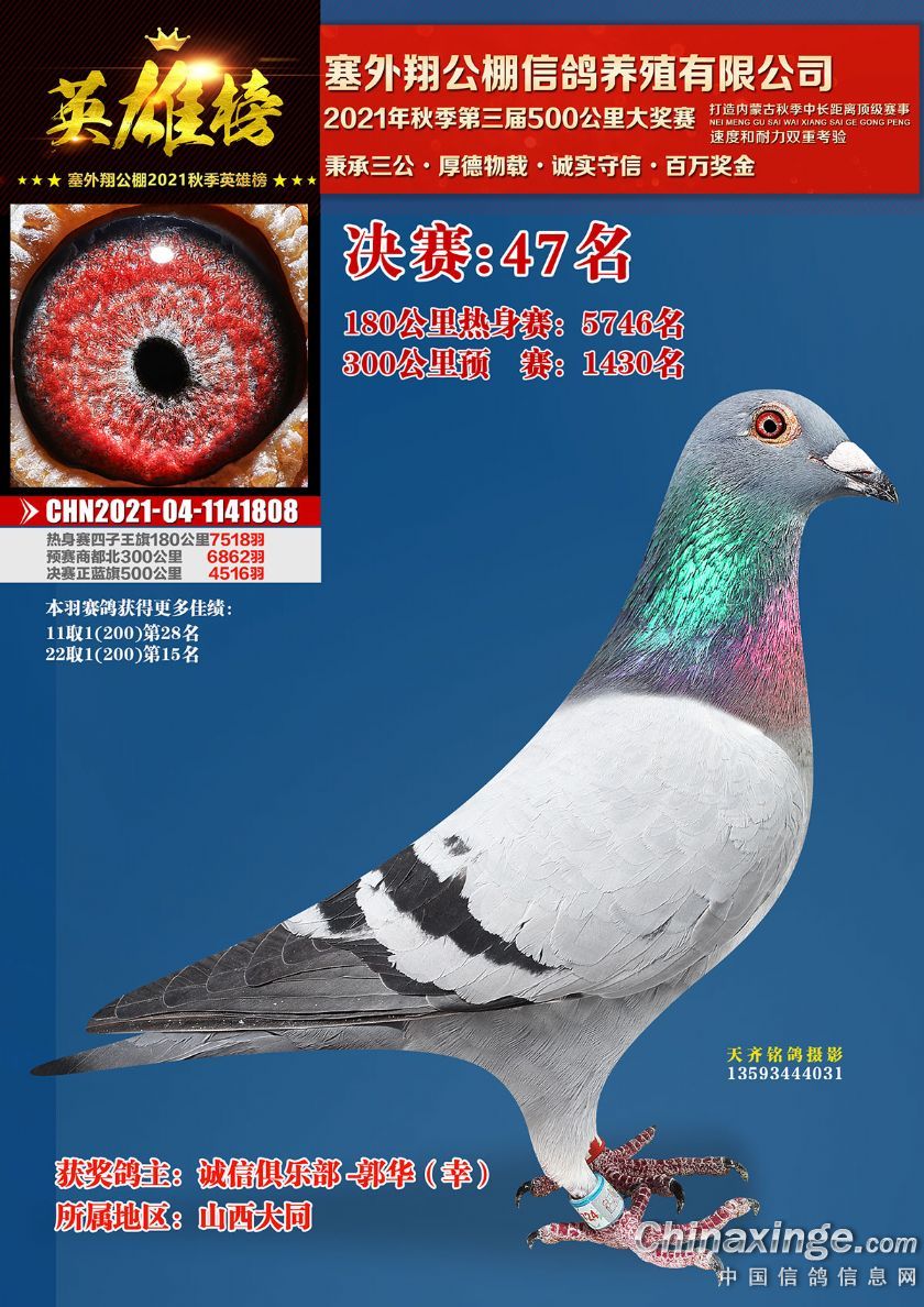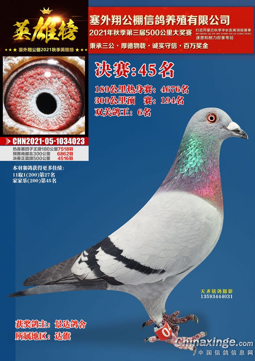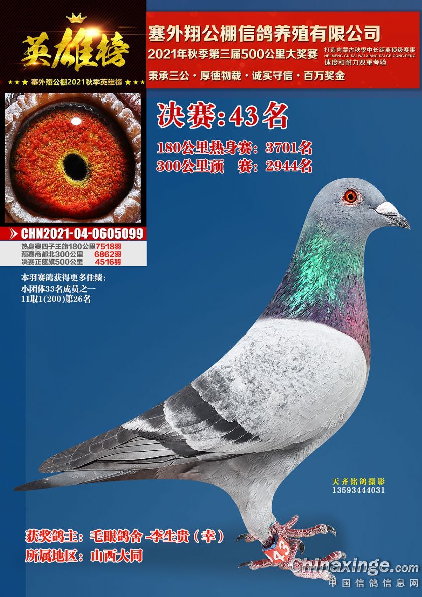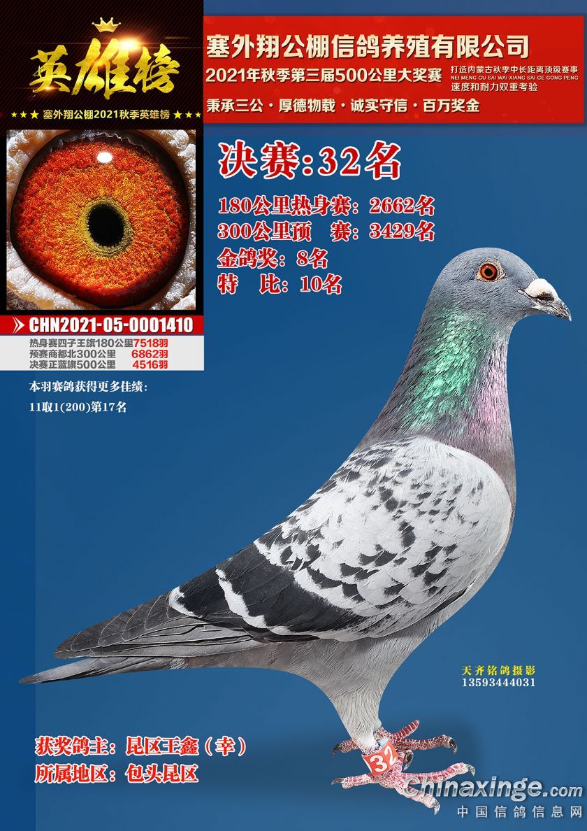 作品说明: 包头市塞外翔公棚2021年获奖鸽专辑(21-50)