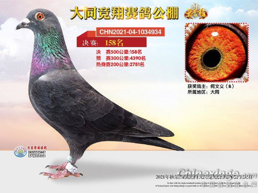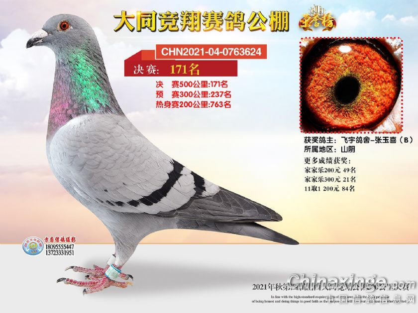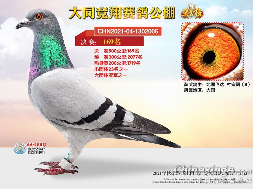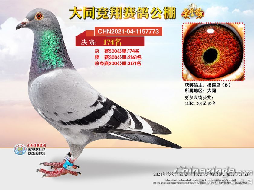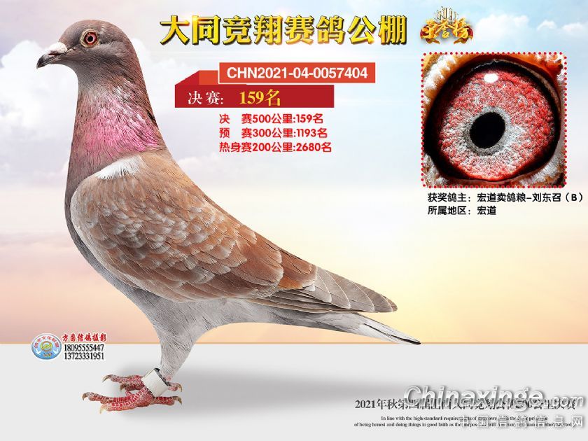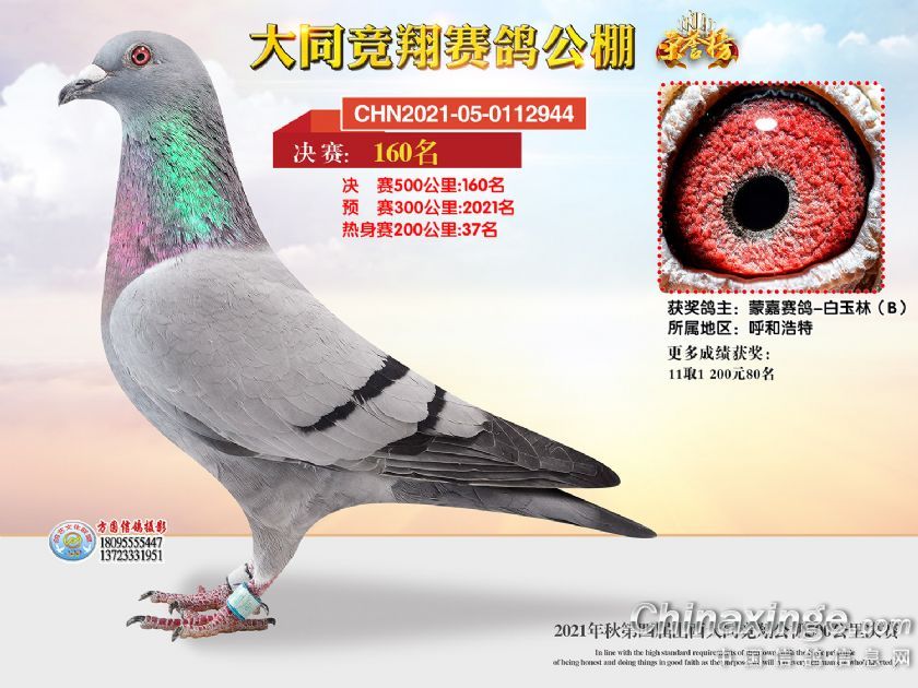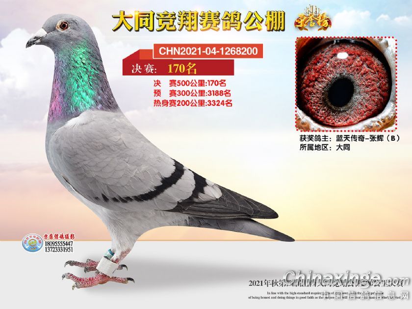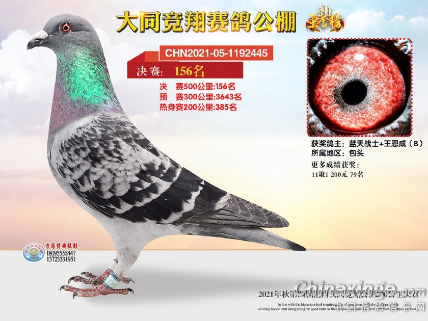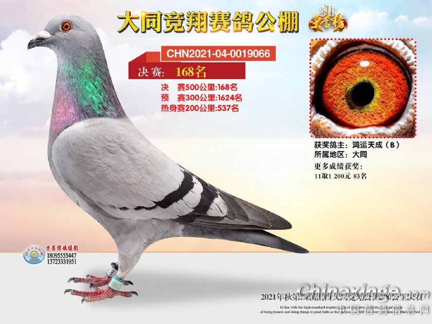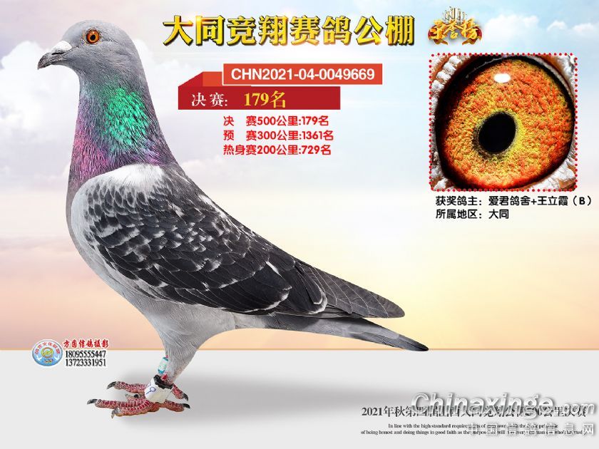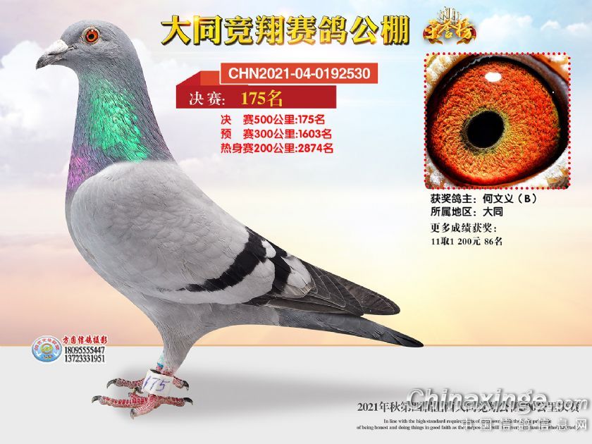 作品说明: 2021年秋季山西大同竞翔赛鸽公棚决赛获奖鸽照片151-180