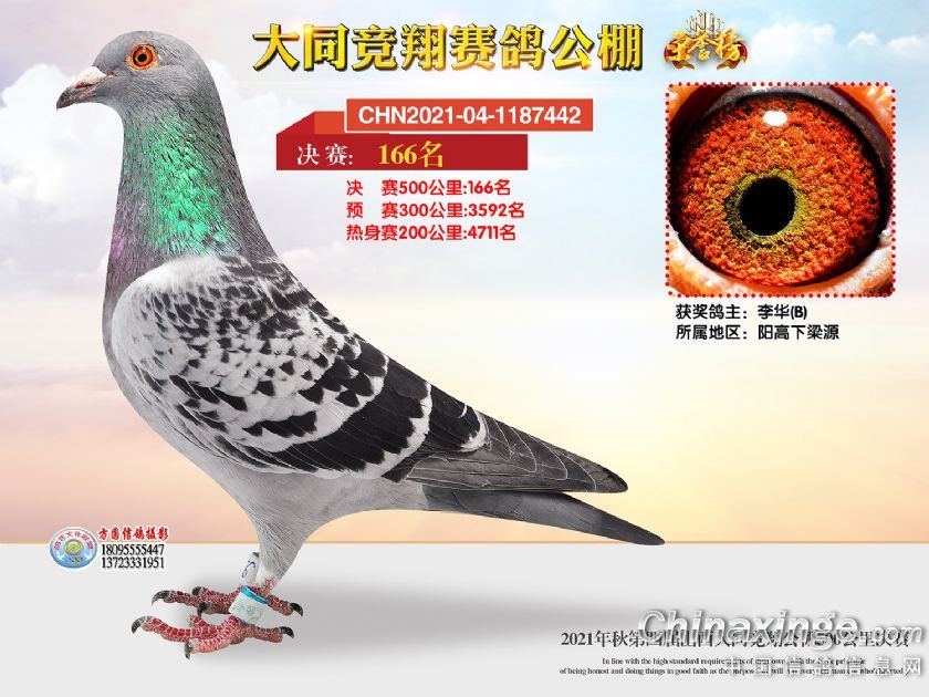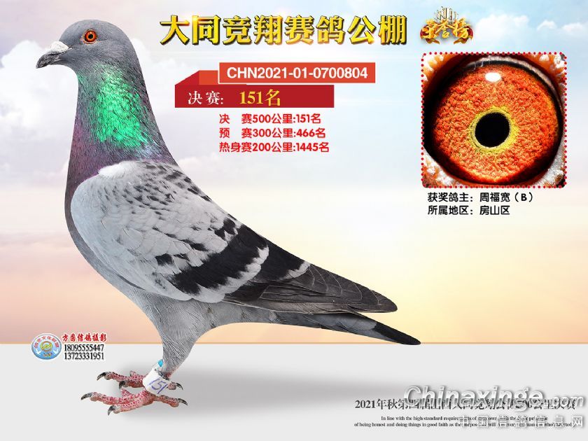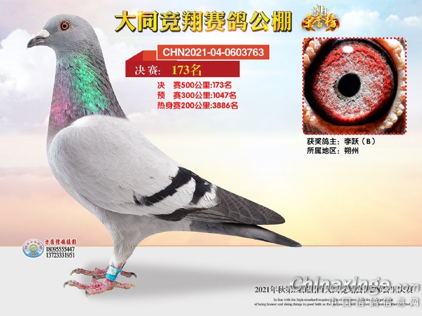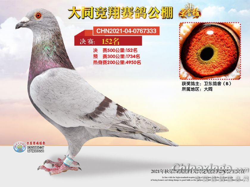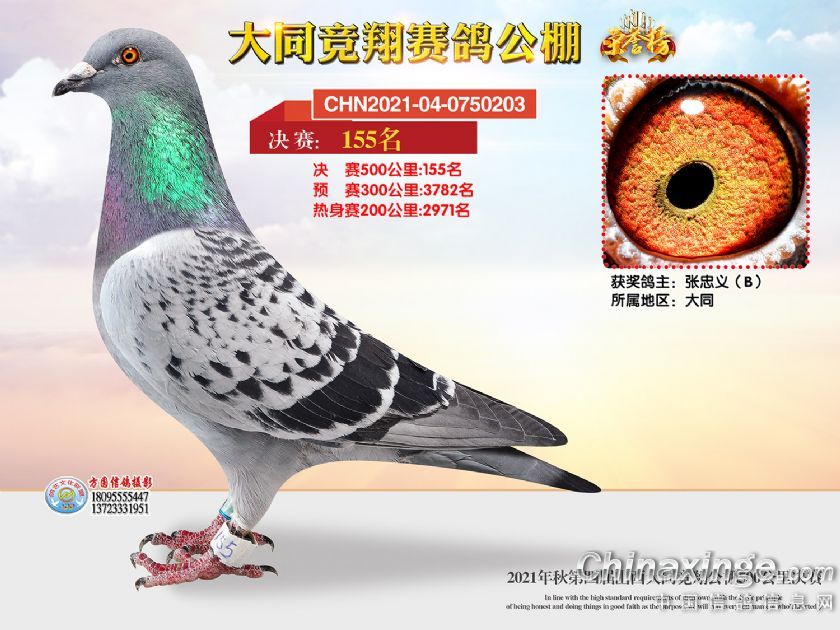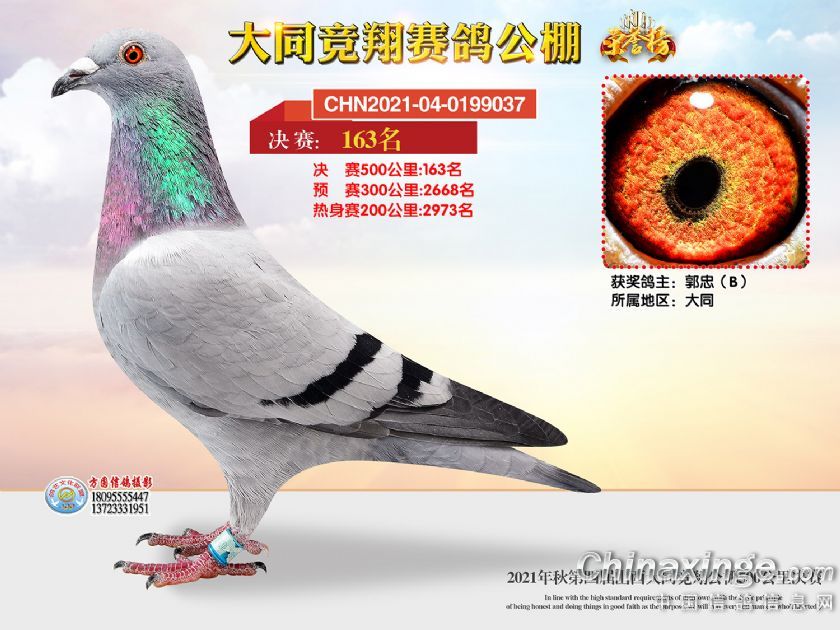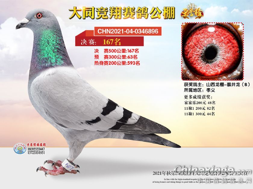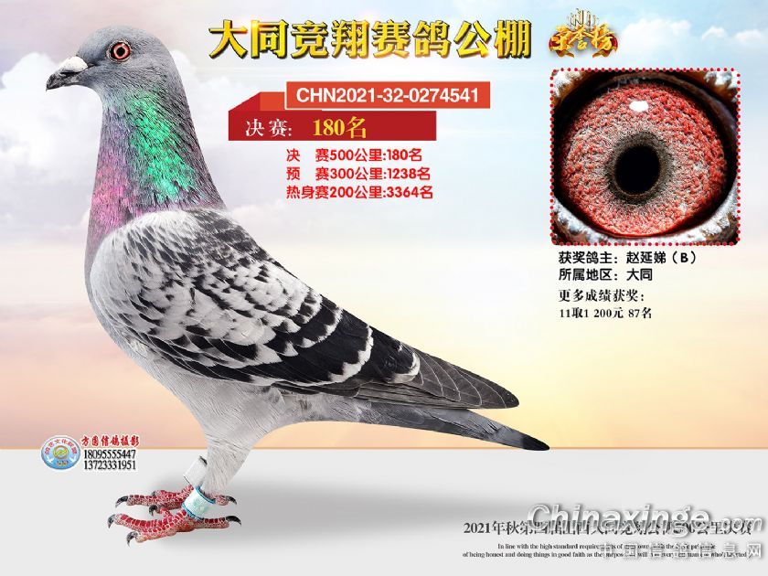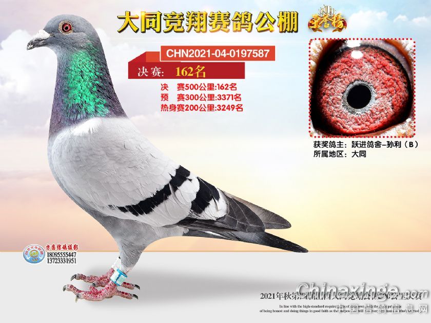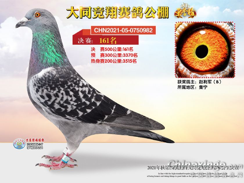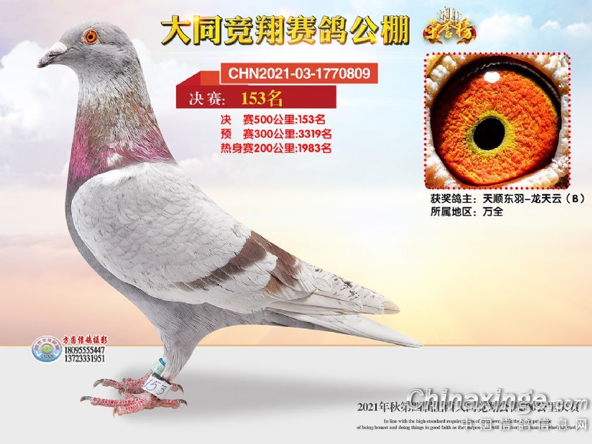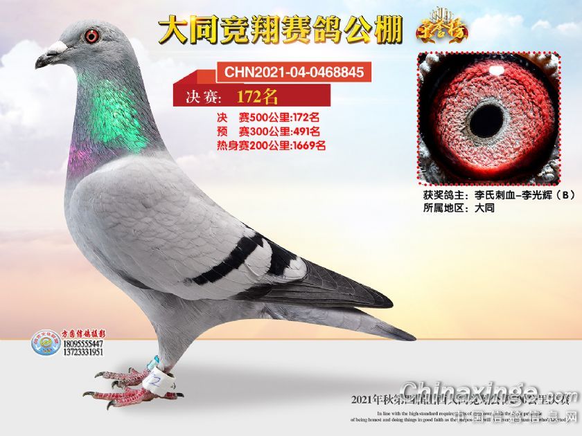 作品说明: 2021年秋季山西大同竞翔赛鸽公棚决赛获奖鸽照片151-180