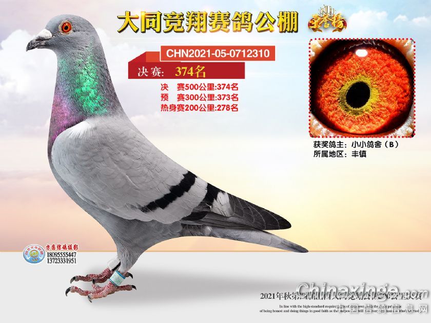 作品说明: 2021年秋季山西大同竞翔赛鸽公棚决赛获奖鸽照片361-390