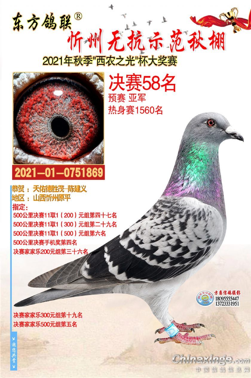 2021年秋季东方鸽联忻州无抗示范公棚决赛获奖鸽照片31-60