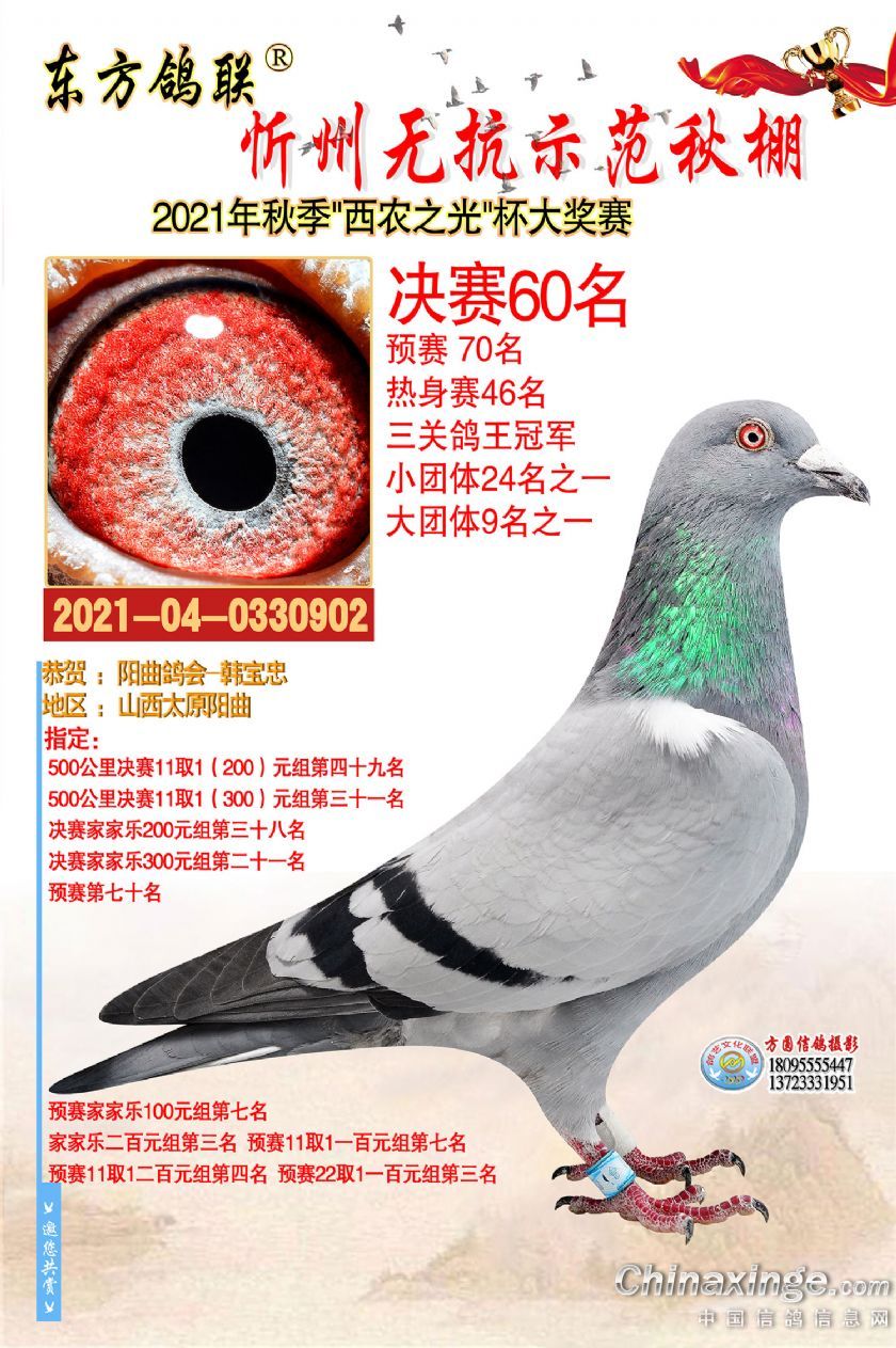 作品说明: 2021年秋季东方鸽联忻州无抗示范公棚决赛获奖鸽照片31-60