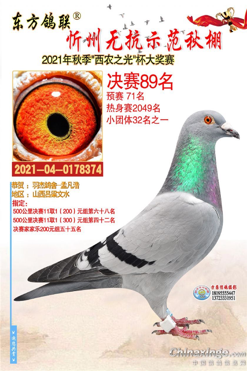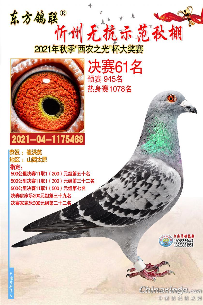 2021年秋季东方鸽联忻州无抗示范公棚决赛获奖鸽照片61-90
