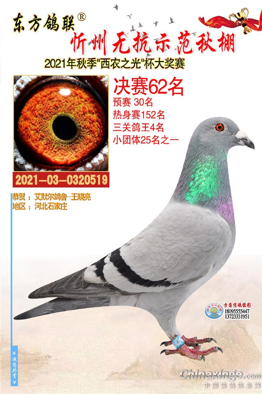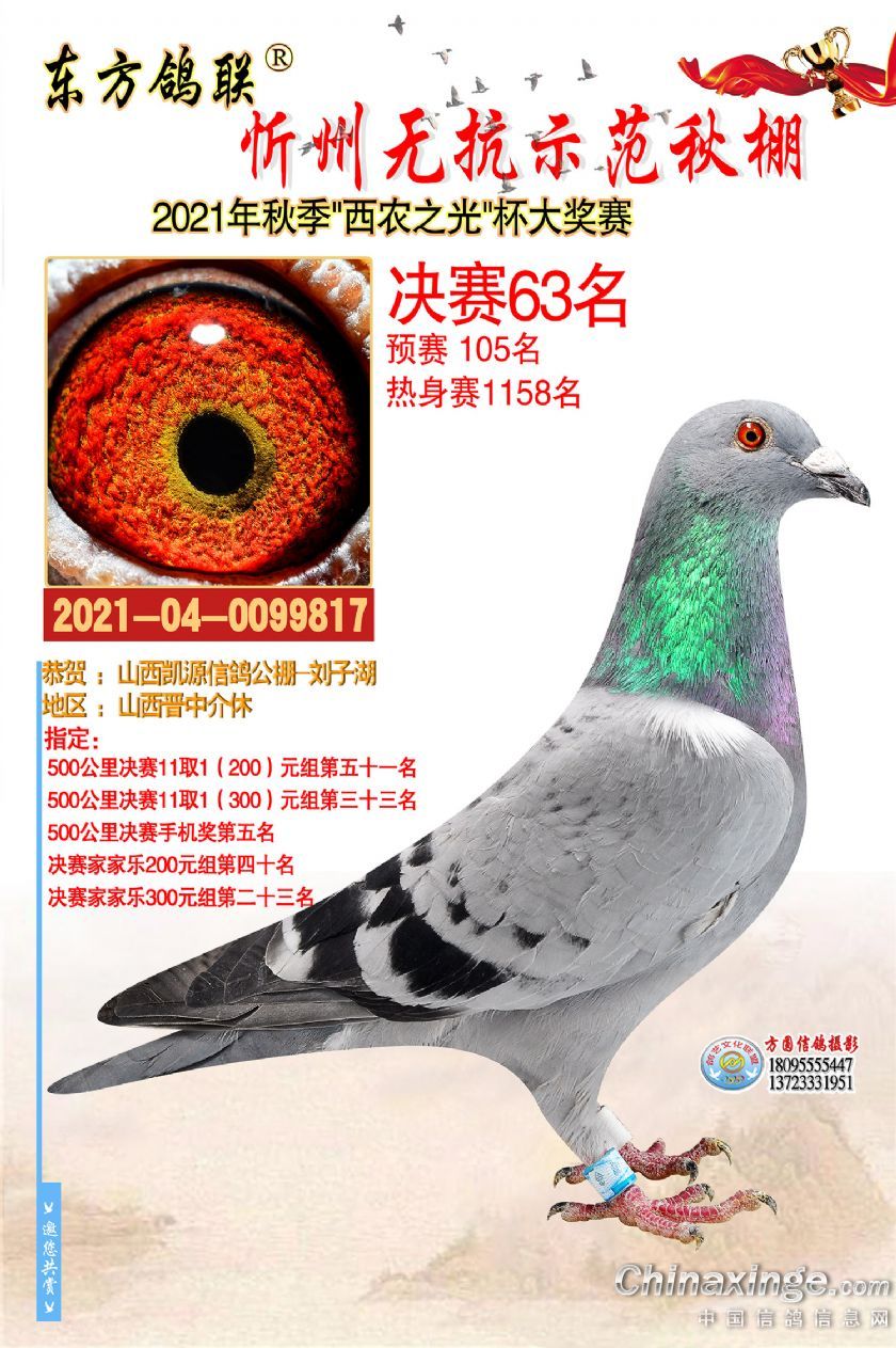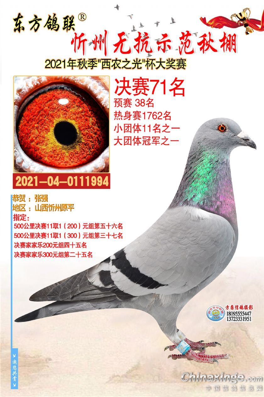 作品说明: 2021年秋季东方鸽联忻州无抗示范公棚决赛获奖鸽照片61-90