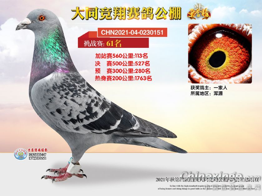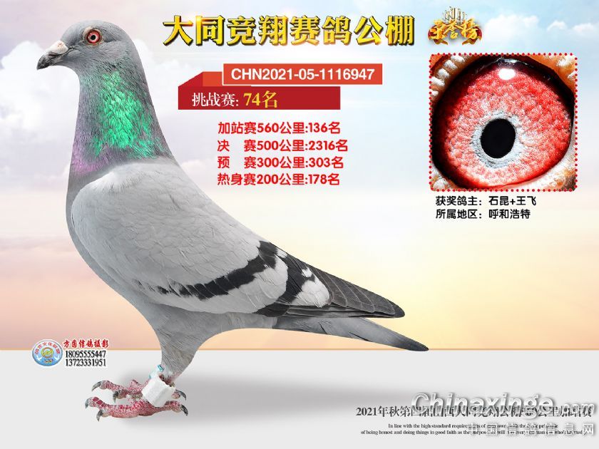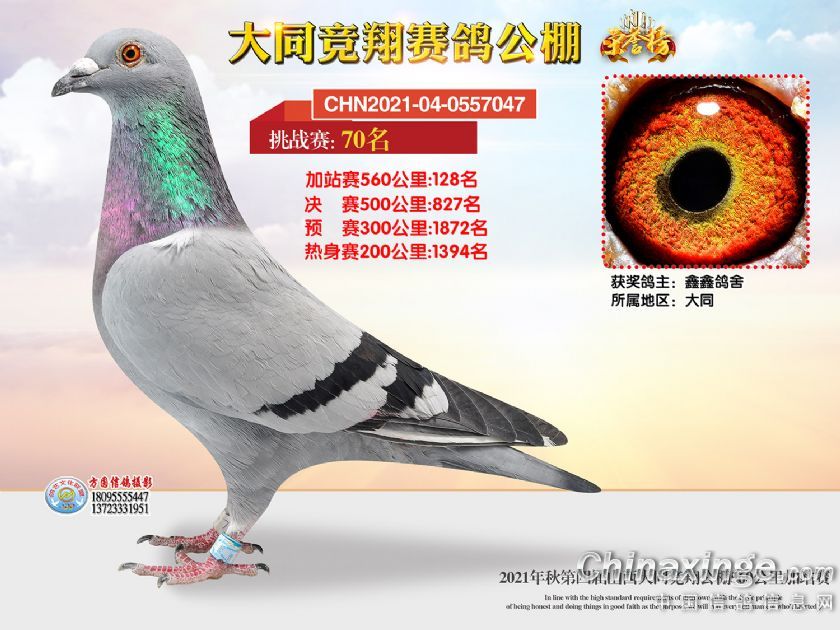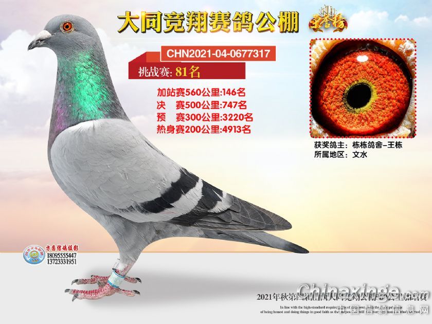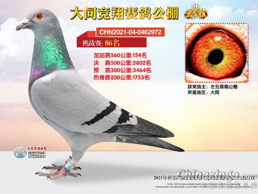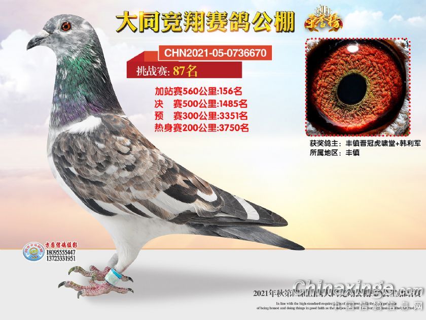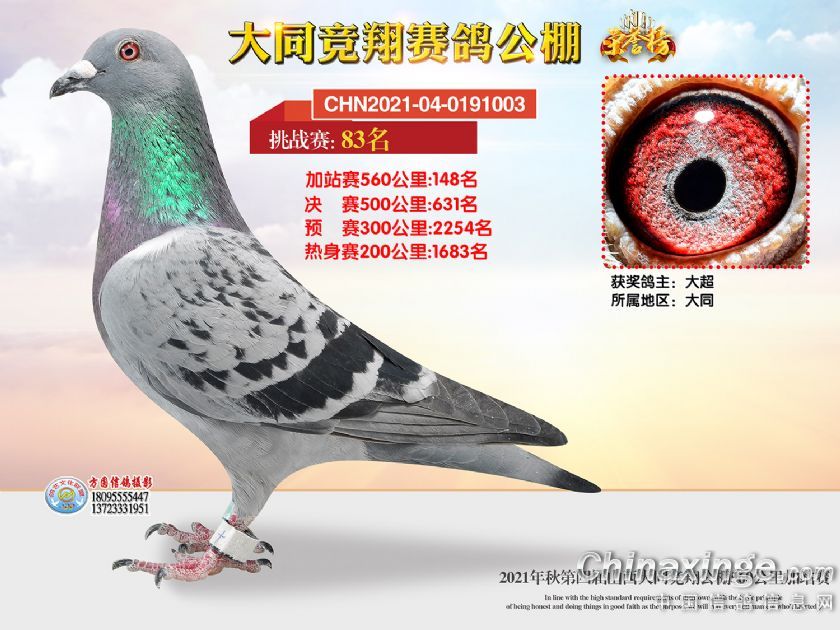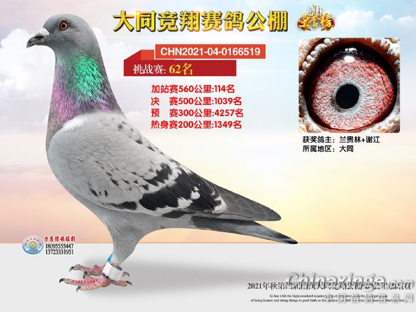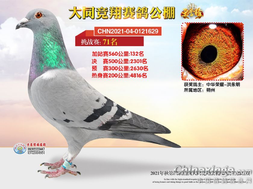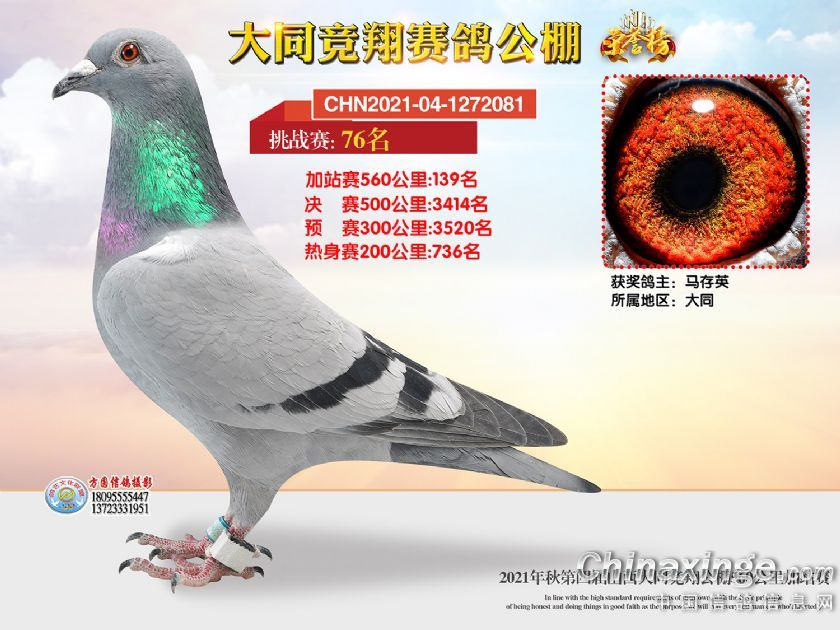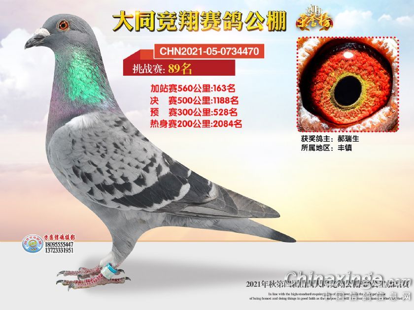 作品说明: 2021年秋季山西大同竞翔赛鸽公棚加站赛获奖鸽照片61-90