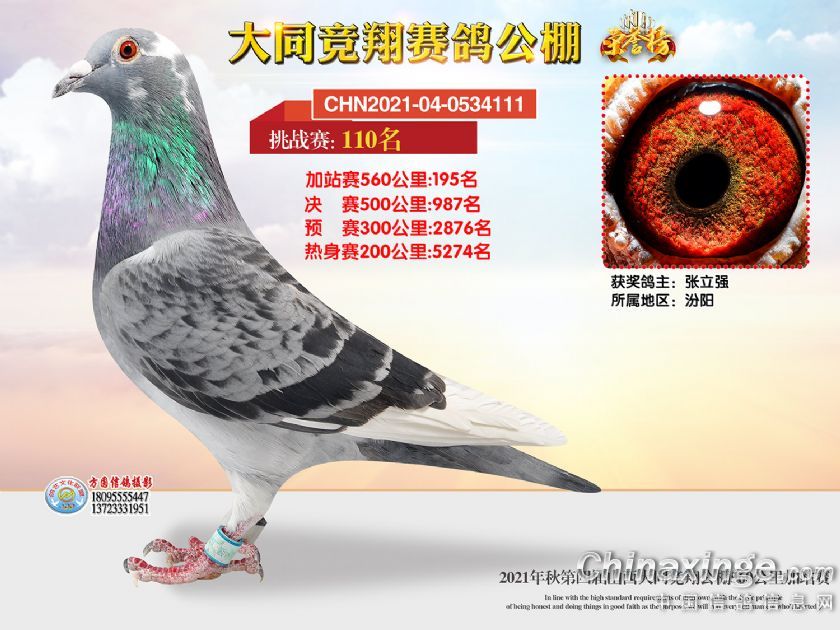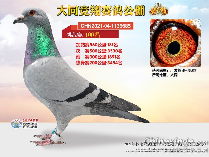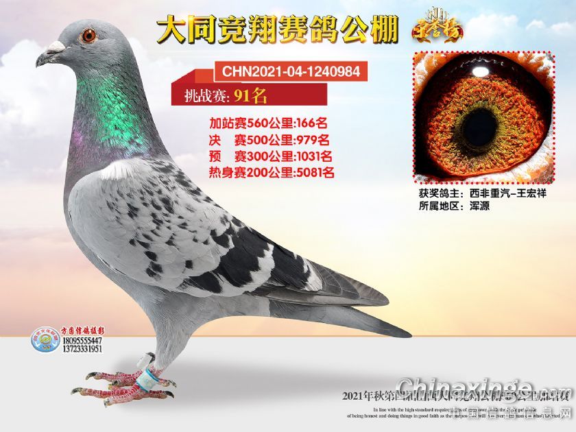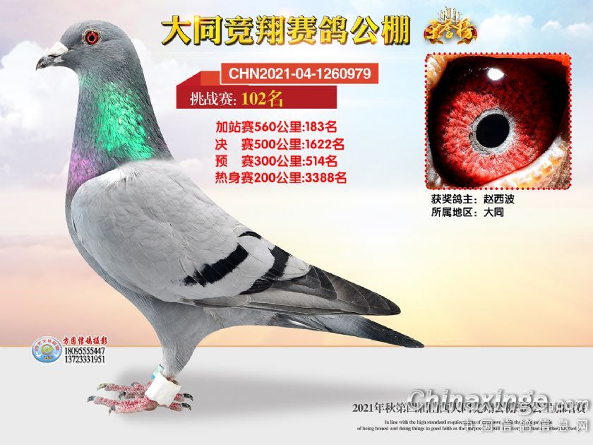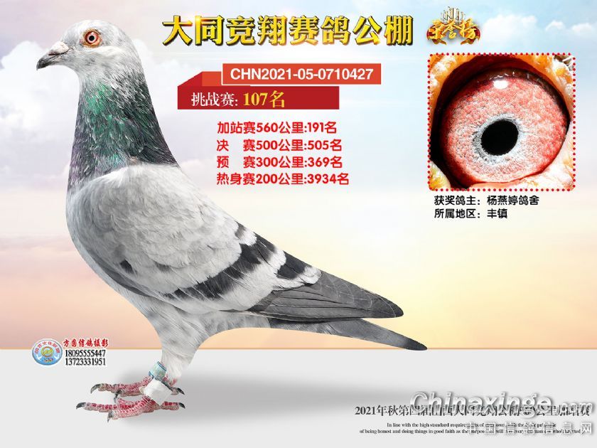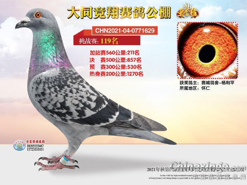 作品说明: 2021年秋季山西大同竞翔赛鸽公棚加站赛获奖鸽照片91-120