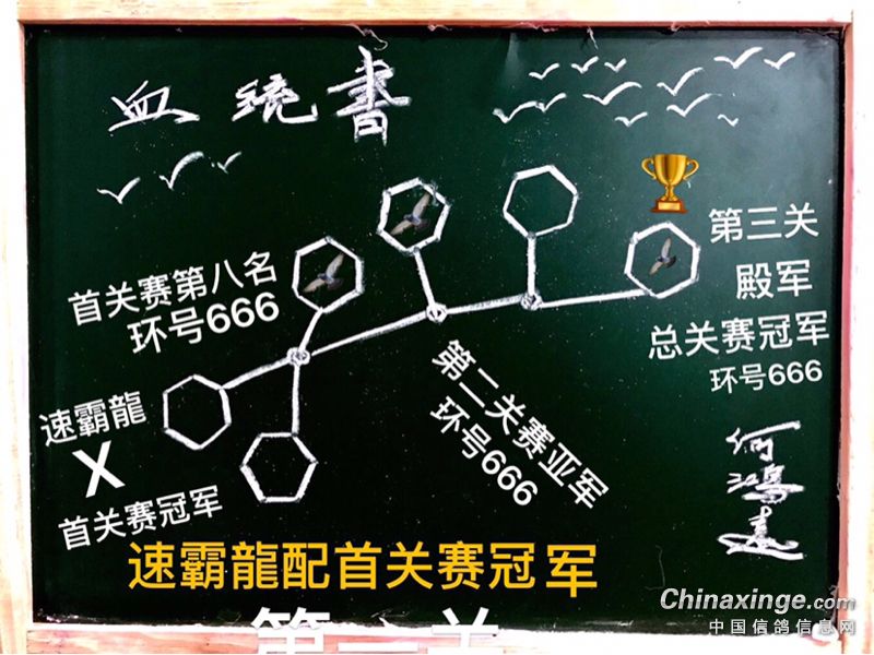 作品说明: 当鸽子在同一鸽舍的饲养条件与管理的情况下,为什么在每一关赛事有分速与名次的差距呢?我们不难看出每一对不同种鸽,都有速度基因在不同距离中淋漓尽至的表现出来。请让我们一起来看看引进的种鸽“速霸龍”,它在打多关比赛的表现以及配对的思路吧!