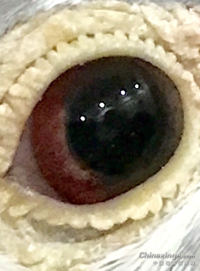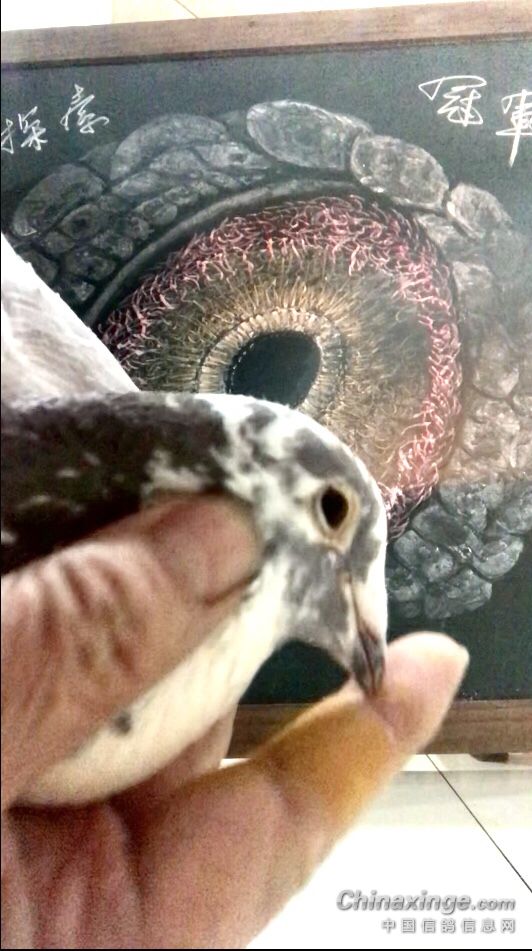这是一只2018年的首关赛300公里的冠军,只可惜在第二关赛放飞后半月才回来的脱关赛鸽。它比亚军领先18分钟,该鸽最大的特点是羽毛光滑细腻如燕子一样,真可谓破风提速的好才子,眼志很窄,赛囗8到9点,面砂溥底砂厚,这就是地地道道的300公里赛距基因。