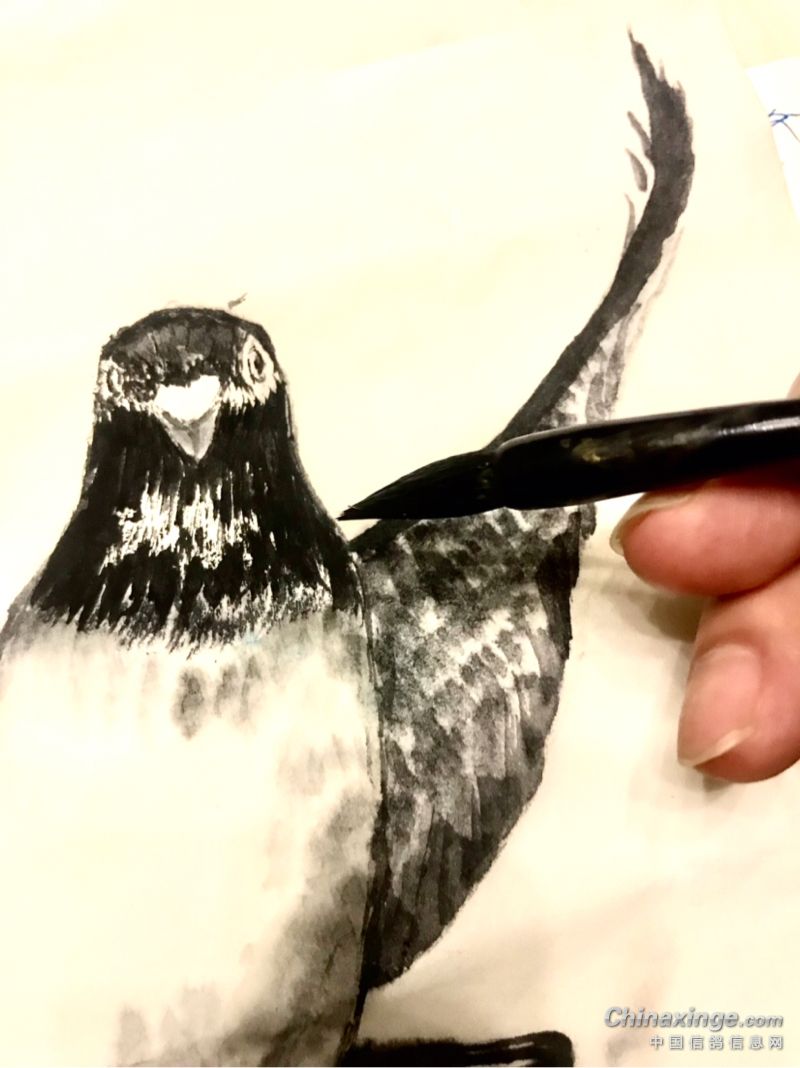 泼墨下筆求神,赛鸽有能人。