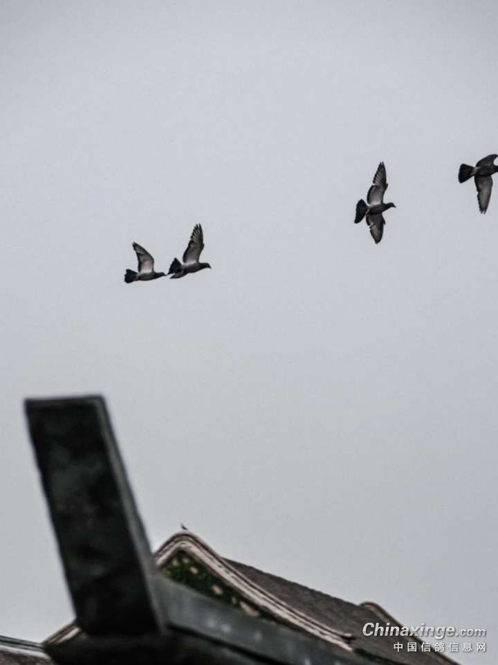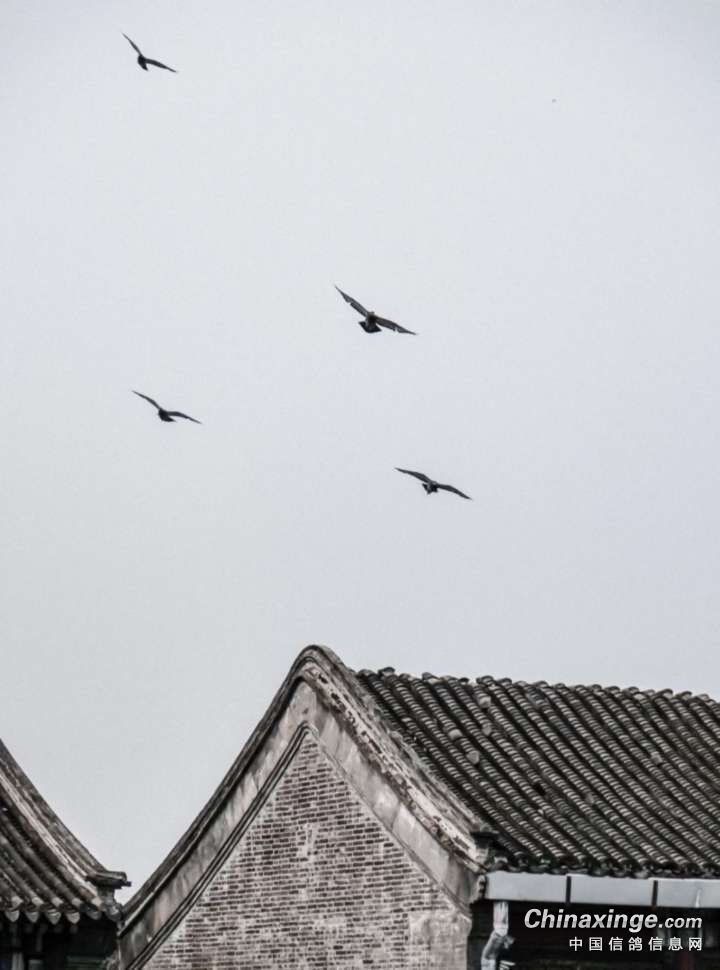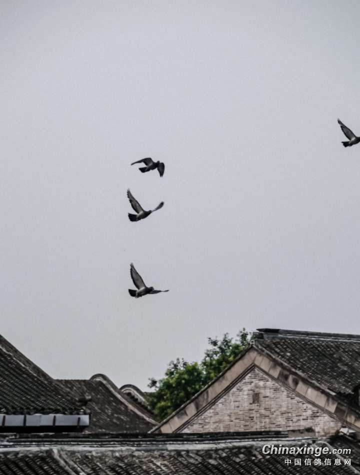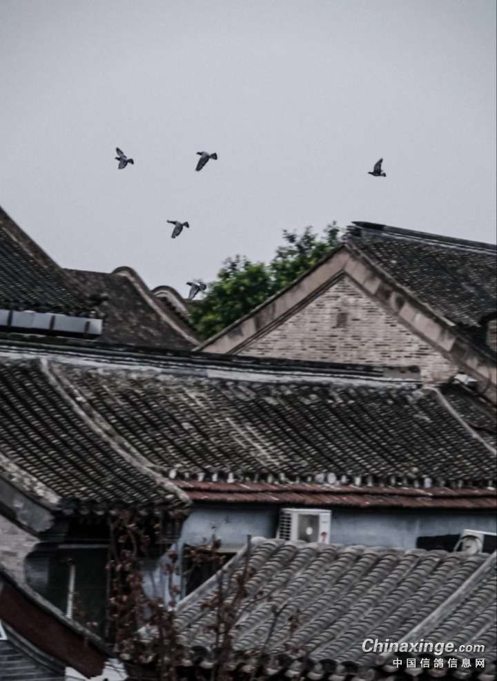 飞翔的鸽子,映衬着青砖布瓦,像一幅黑白色的水墨丹青,古朴大气,既养眼也养心,充满无限遐想!
