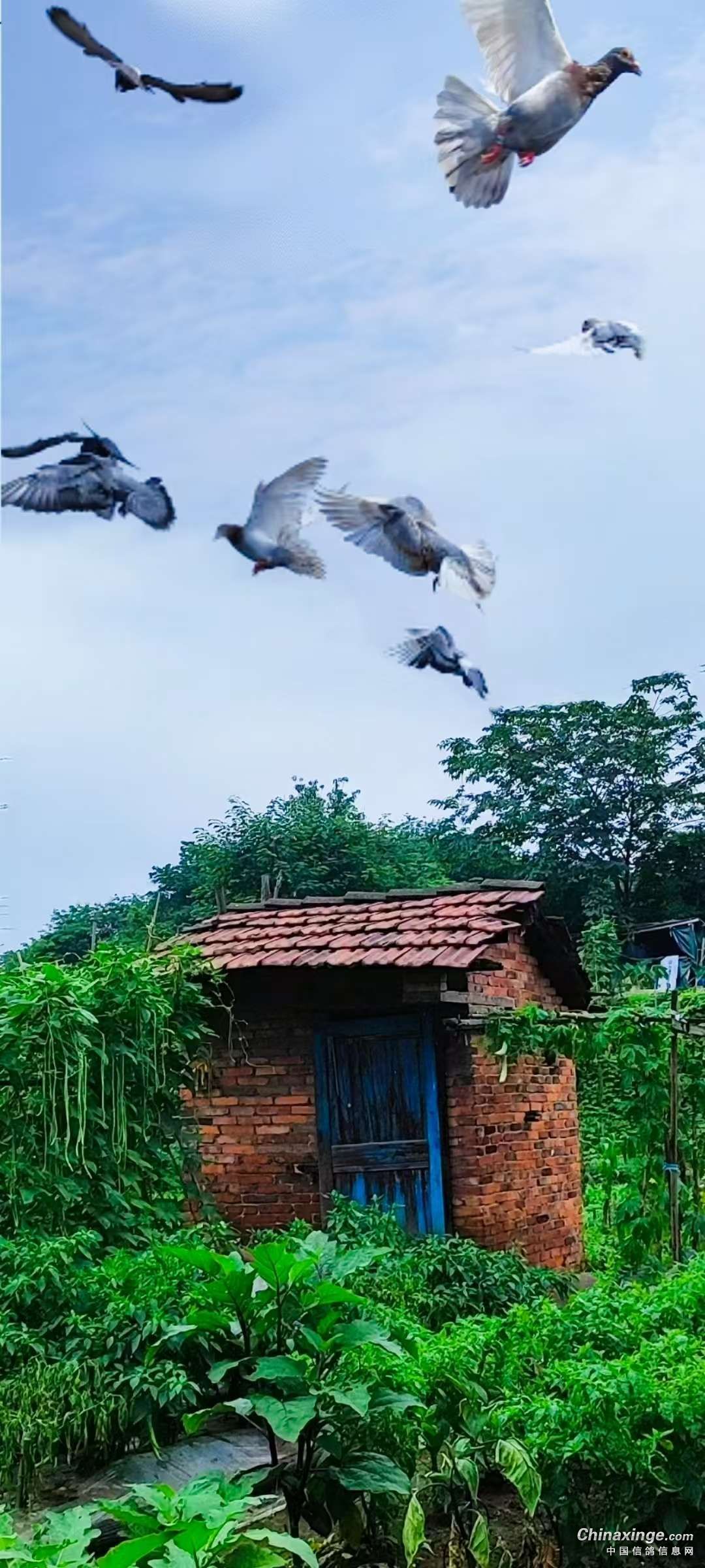 农村平瓦房养鸽免费喂鸽吸引了城里人的度假生活:农家乐。