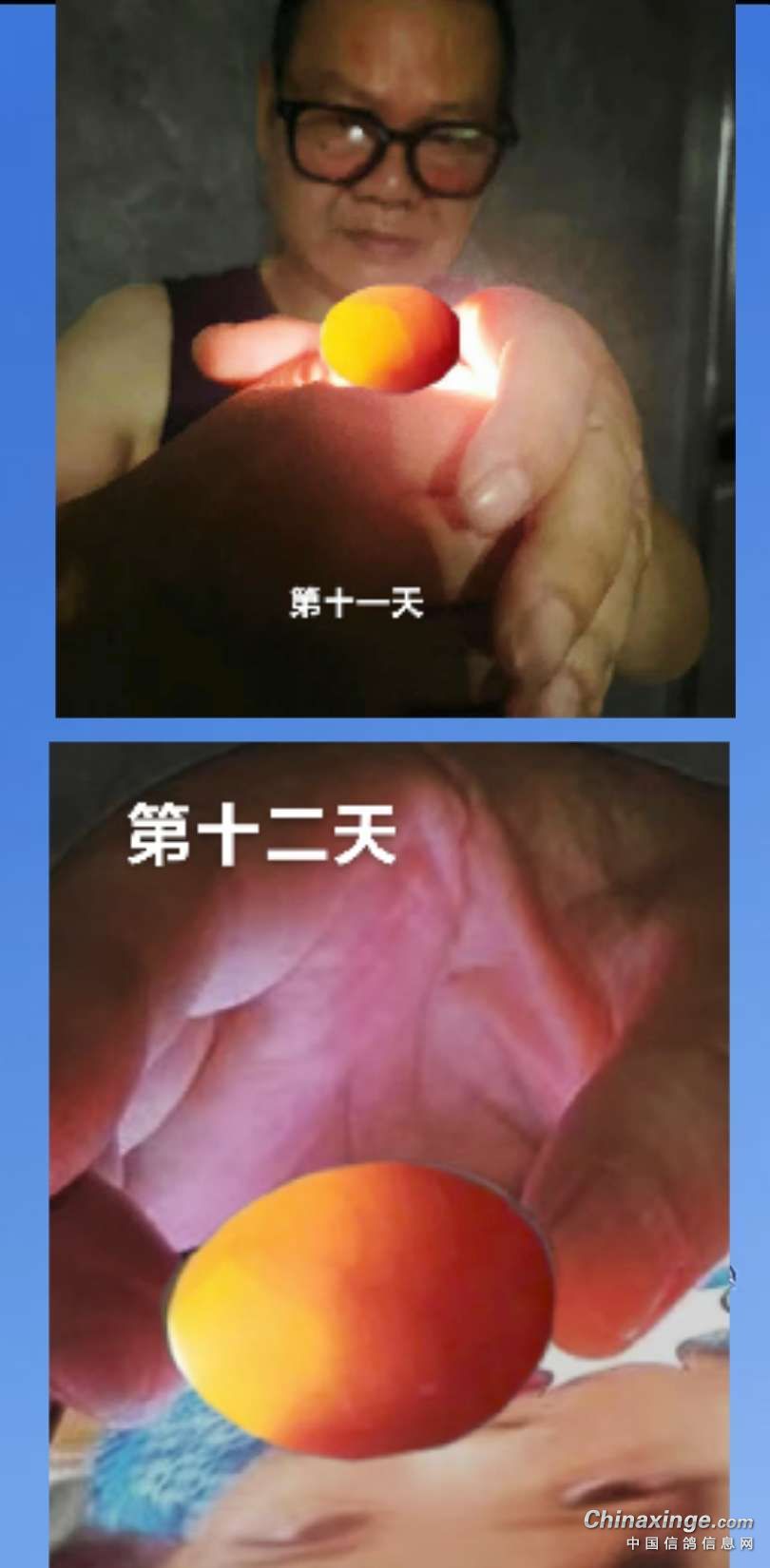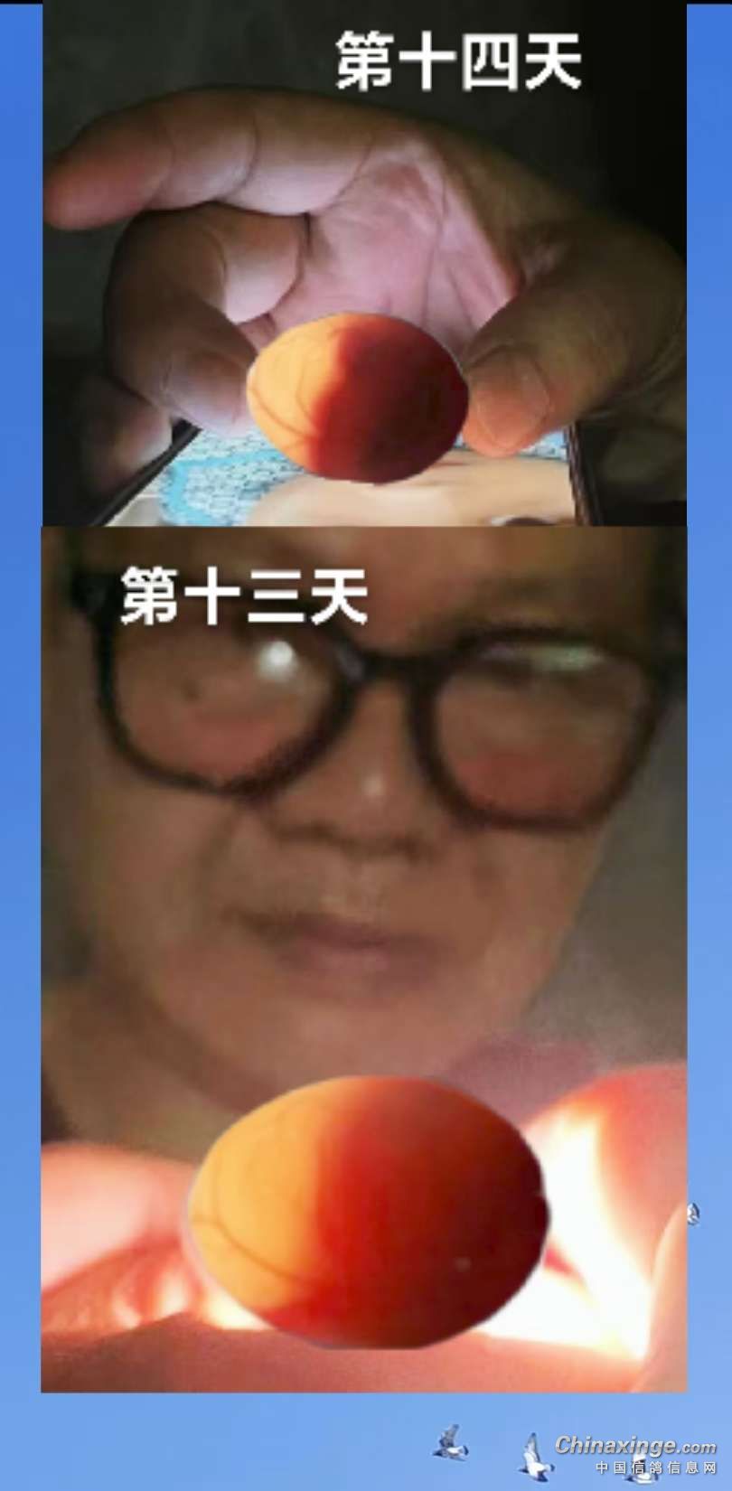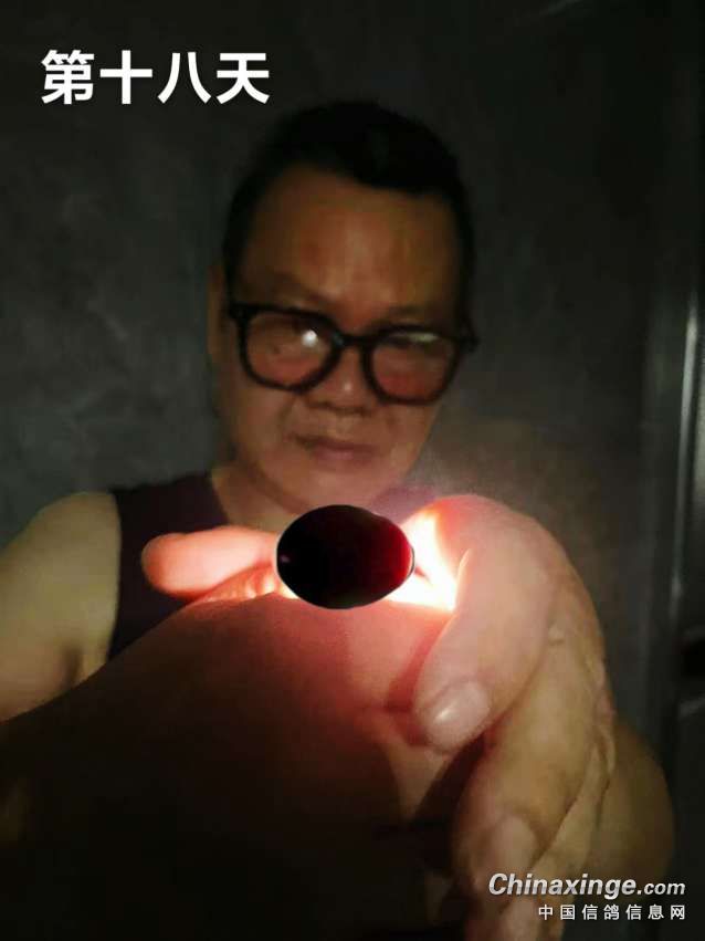 作品说明: 赛鸽健康从孵化期要很抓以下几个方面: 一、种蛋品质:优质的种蛋表面应光洁,蛋壳均匀、厚薄适中。在光照下白里透红,能看清蛋黄居中且微微浮动。 二、胚胎听、照、感受抖动的频率:这是一种不手轻视的重要监督措施,健康人的一呼一吸胚胎在光照的作用下血丝就会抖动一次,慢于这个节奏该种鸽亚健康,脴胎将来不适宜参赛且难成活。 三、胚胎早教:种鸽是否健康看胚胎的音乐感觉,当手机打开音乐、蛋放在手机频上能看到抖动频率加快,有时候抖动出慢三步的节奏,这是早教、健康、聪明、快乐的表现。 四、此时,如果父母鸽参赛前感受胚胎抖动的信号就越快,归巢欲望更强、分速更快。 五、胚胎发育:孵化至10天后蛋会变黑,气室增大,这有利于为成形的胎雏提供充足氧气。到15-16天,胎雏发育成熟开始啄壳,抖动感会更强烈。 六、此时把鸽蛋贴在耳朵上能听到胎雏啄壳声频繁、有力且有节奏的快三步声响,说明胎雏体质强壮。 七、出壳情况:正常情况下,赛鸽的孵化期为1为17至18天。 八、如果幼鸽能在正常时间内顺利出壳,且蛋壳的齿线整齐有序,内壁干净无胎毛残留和血污,胎粪洁净,通常意味着幼鸽较为健康。 九、此外,在孵化期保持适宜的温度和湿度,以及良好的通风条件,对赛鸽胚胎的健康发育也至关重要。发现亚健康的情况随时淘汰,总的来说赛鸽健康从孵化期很抓。