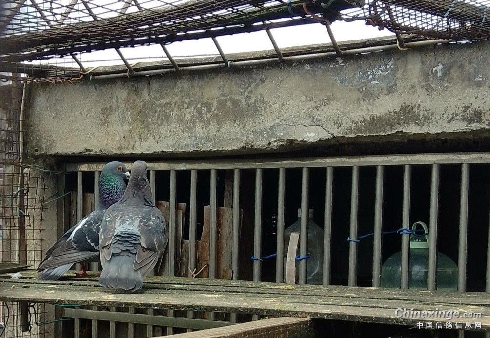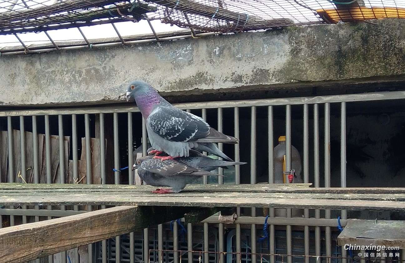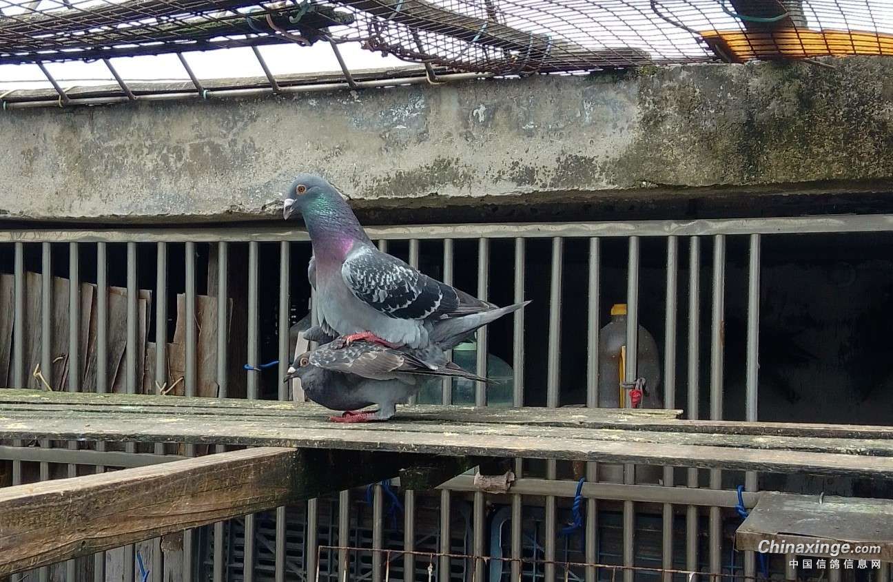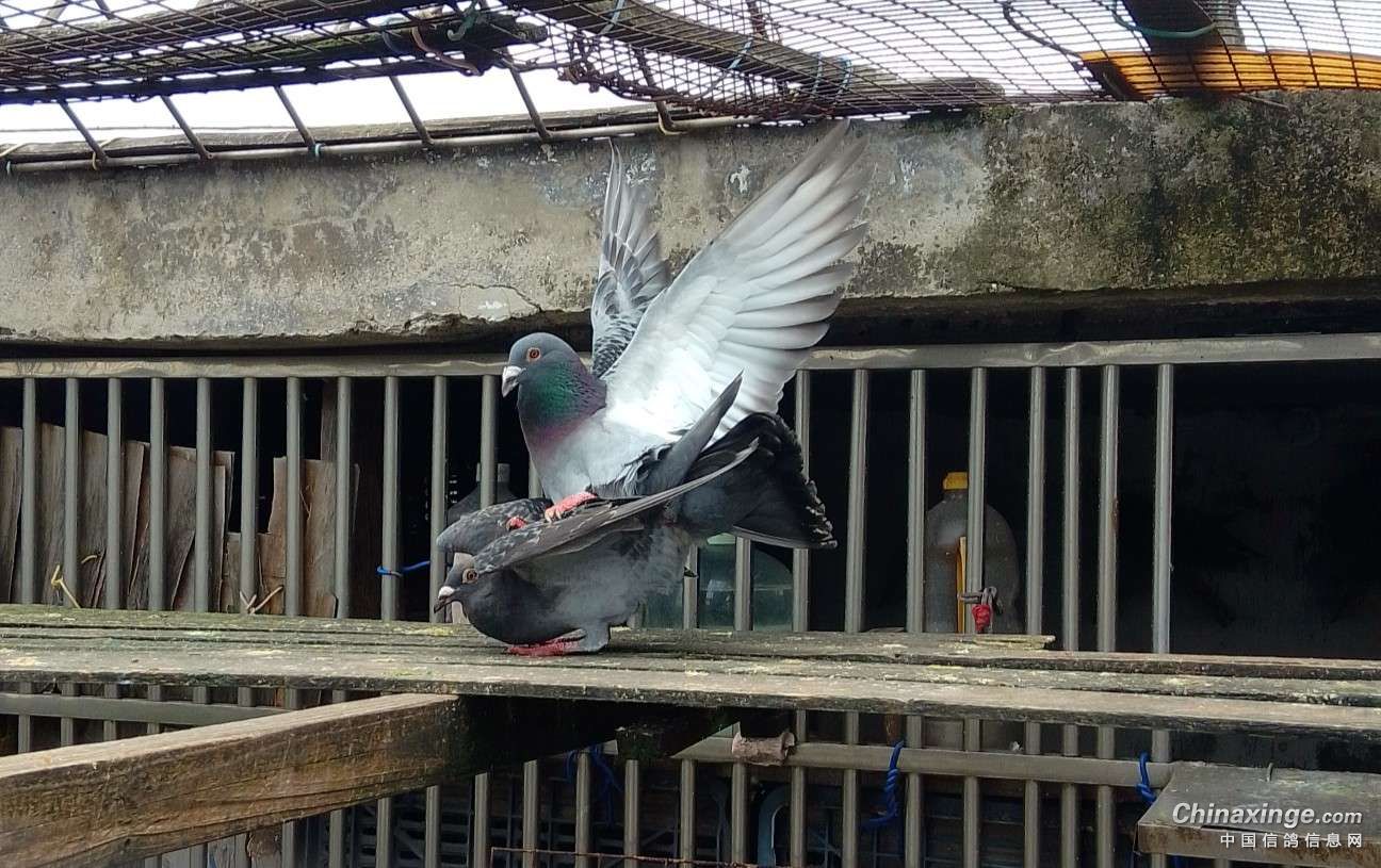 作品说明: 为提高棚内鸽子的质量,引进了一对成绩鸽的种蛋,3个月的小雌鸽与棚内的单雄配对了并开始踩背了。