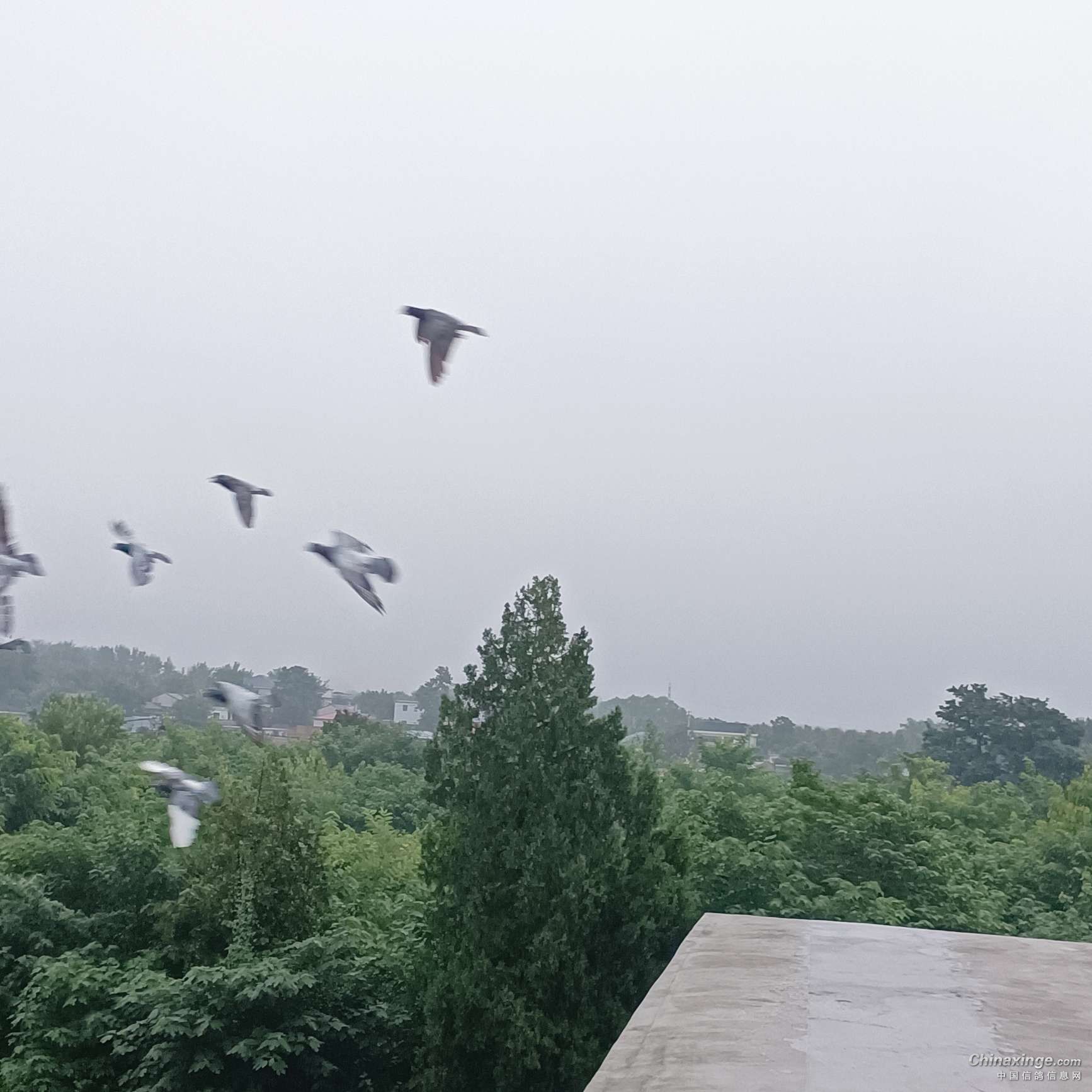 昨天下了一天的雨。下午雨没停喂喂鸽子。
