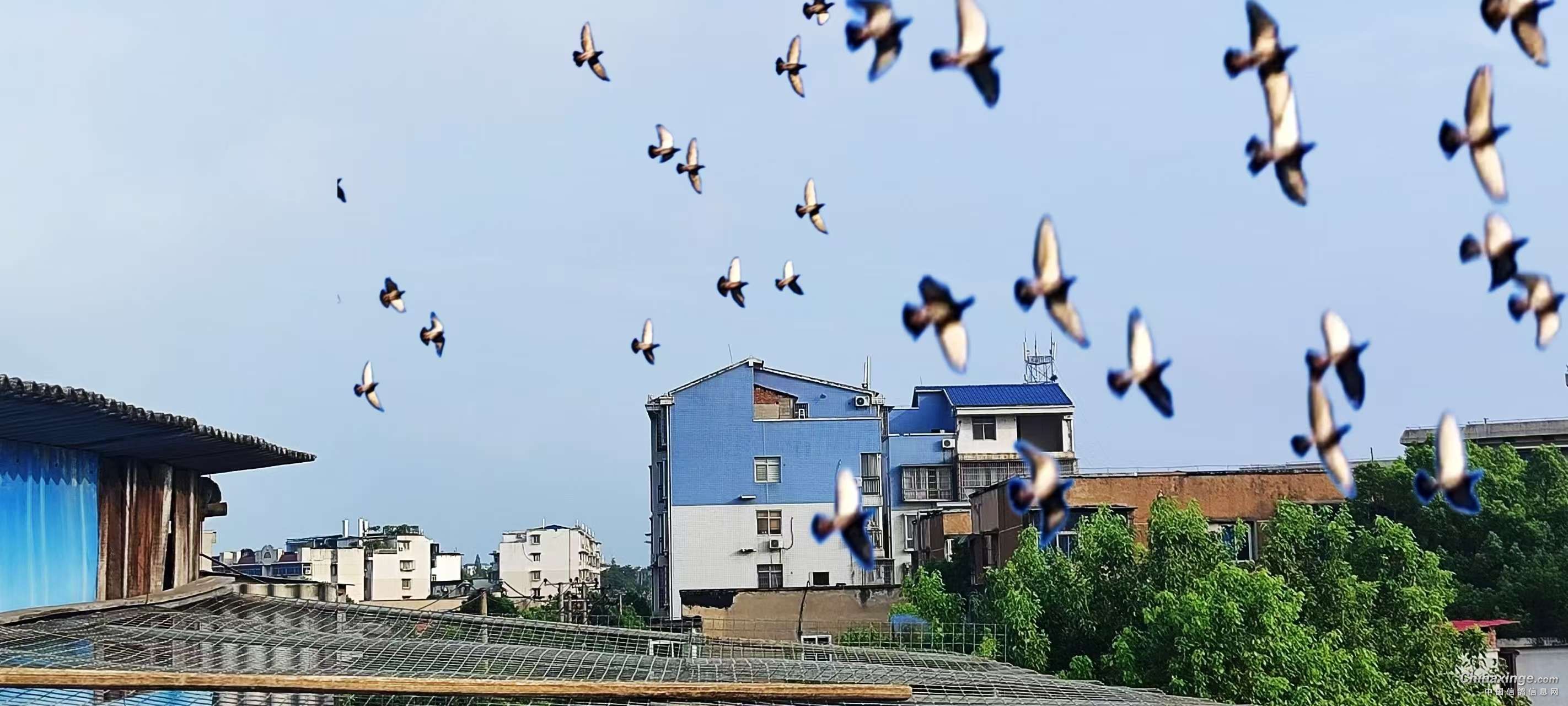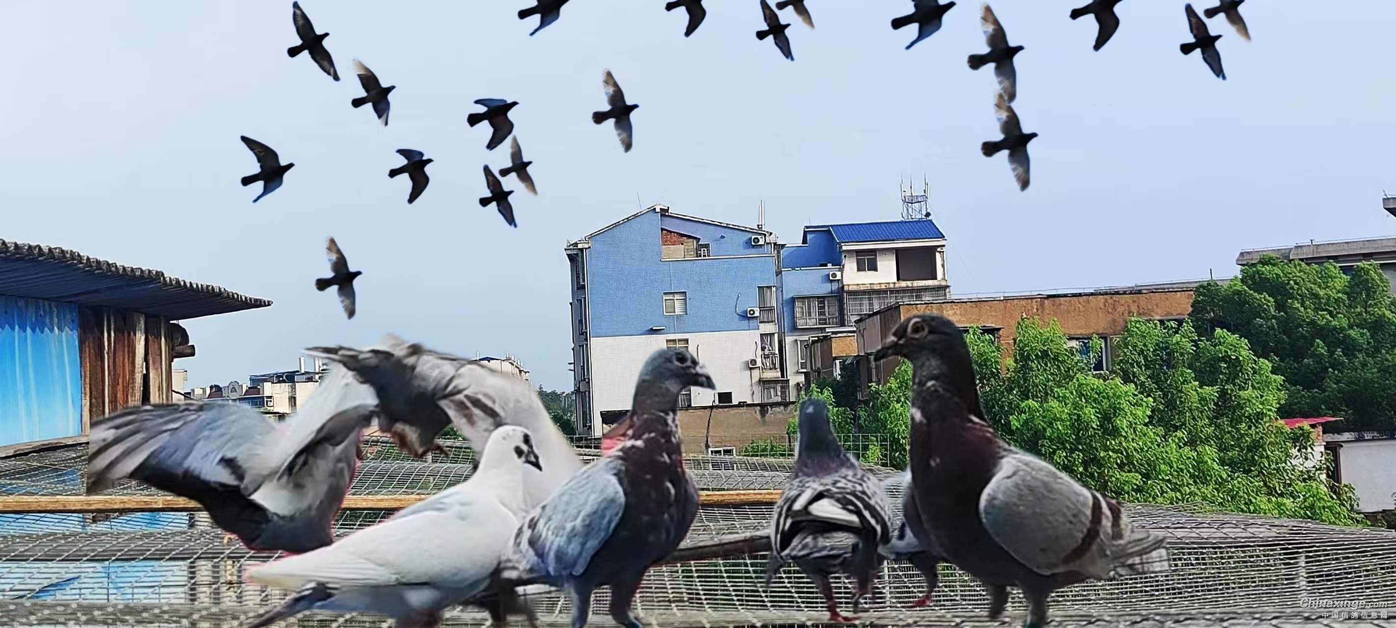 作品说明: 我家顶楼的铁笼鸽舍里,住着60只秋赛信鸽,血统金太阳、它们是来自会长家的一批雏鸟,羽毛从鹅黄褪成瓦灰那天起,我就每天拎着小旗在楼顶踱步,哨音穿过晨雾,惊得它们扑棱棱掠过晾衣绳。今天是它们头一回集体挑战五十公里,天没亮,我就蹲在笼前数了三遍脚环——“小点子”的左翅有撮白(叉条),“老歪”的喙总歪向一边,还有那只最怯生的“灰姑娘”,总躲在伙伴们身后。 立秋后凌晨四点的风带着露气,我把它们分别装进透气的笼子里,往车后箱一放,去长沙的河滩放。笼里的影子挤成一团,倒像是我比它们一样紧张。放飞时“眨眼就成了天上的芝麻粒。”一小时后它们像被无形的线牵着,一批批从不同方向聚来。最让人揪心的是“灰姑娘”,直到夕阳把云朵染成橘色,它才孤零零出现在楼顶的避雷针旁,翅膀扇得格外慢,落地时踉跄了一下,我赶紧抓把谷子递过去,它啄两口,突然抬起头,喉咙里发出咕咕的轻叫,像是在说“我回来,.知道我这一天飞了多少公里吗?” 60只鸽子全归巢时,我给每只的脚环都抹了点凡士林,又在食槽里添了新的油菜籽,在水里换上新的电解质。我看着笼里挤挤挨挨的影子,它们的眼睛在阳光下亮晶晶的,像装着整个天空的路。“归巢”不只是回到熟悉的铁笼,更是带着远方的风、陌生的沙,还有那股子认准了就不回头的劲儿,扑向那个等它的地方。 夜风里,我又吹起了哨子,这次的调子轻轻的,像在说:“明天,咱们再走一次20公里。”笼里的鸽子们咕咕应着,瓦灰色的羽毛在灯光下,闪着比星星还暖的光。