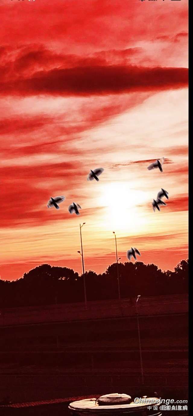 作品说明: 秋后的日出湘江红似火,湖南湘潭秋意最浓,训放信鸽四周飞50公里是秋赛前重要的第一课,美丽湖南遍地都是荷花、荷叶、莲子、谷子已成熟,田野呈一片金黄;清晨有缸色调的薄雾,日出后渐散,空气带着农作物的清香。 立秋后四方50公里内,虽秋意浓淡有别,但均已褪去盛夏燥热,清风、秋色与丰收景致交织,训放信鸽翱翔蓝天尽显秋高气爽的初秋韵味。