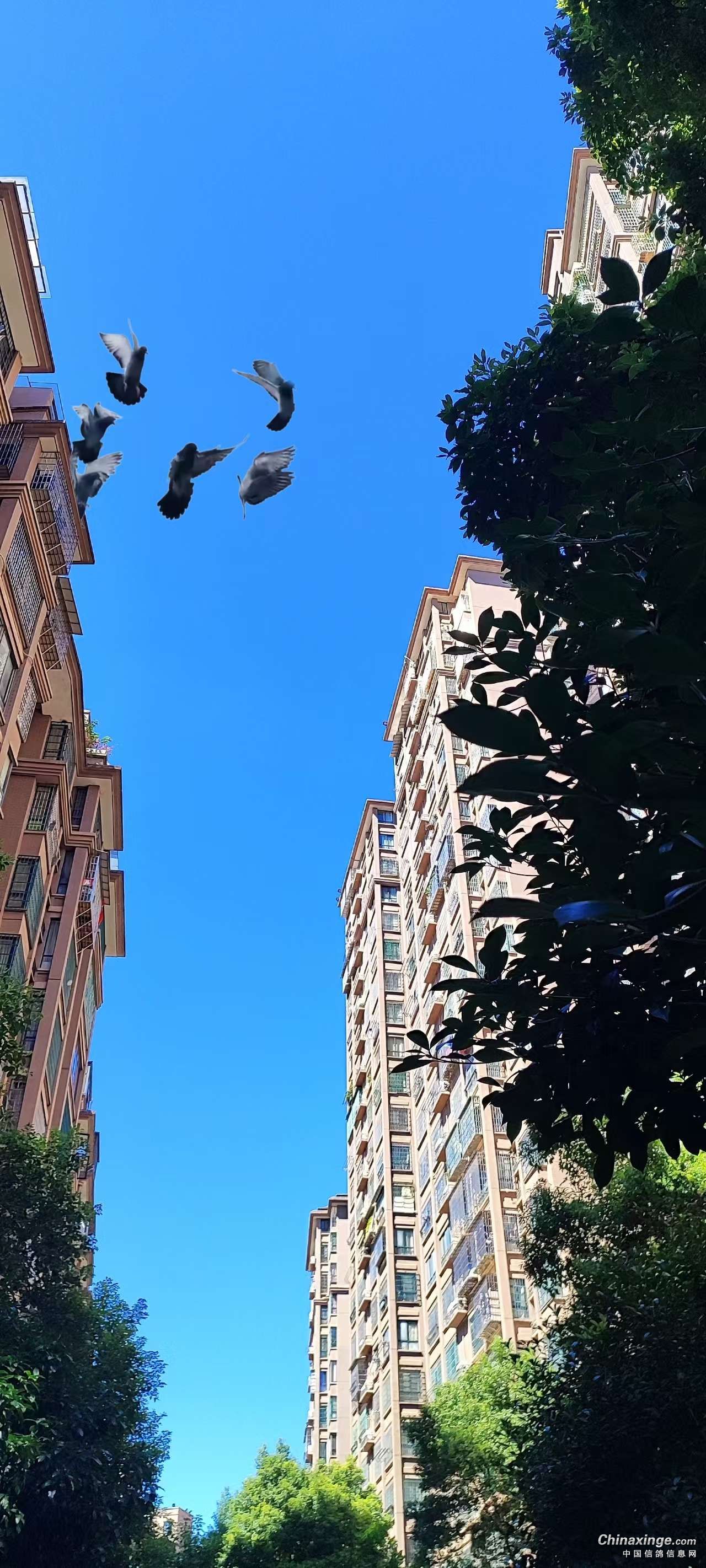 七、补课训放的“学员”飞越城市30多高层的电梯房,(翱翔日当午,补课的鸽子真辛苦)。