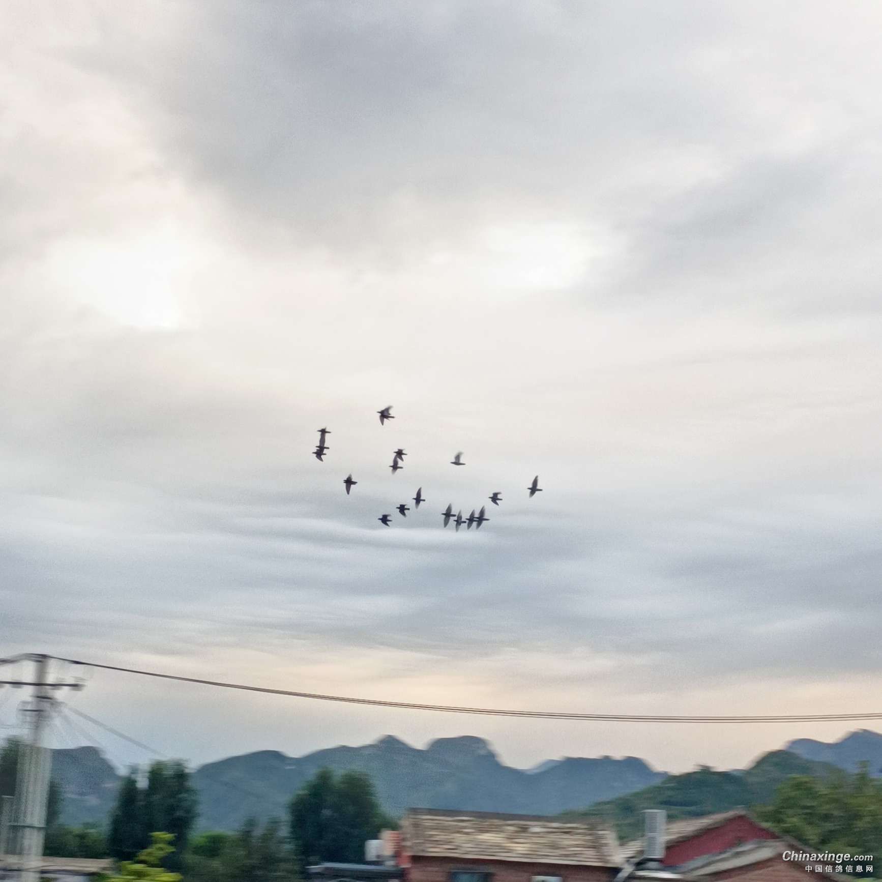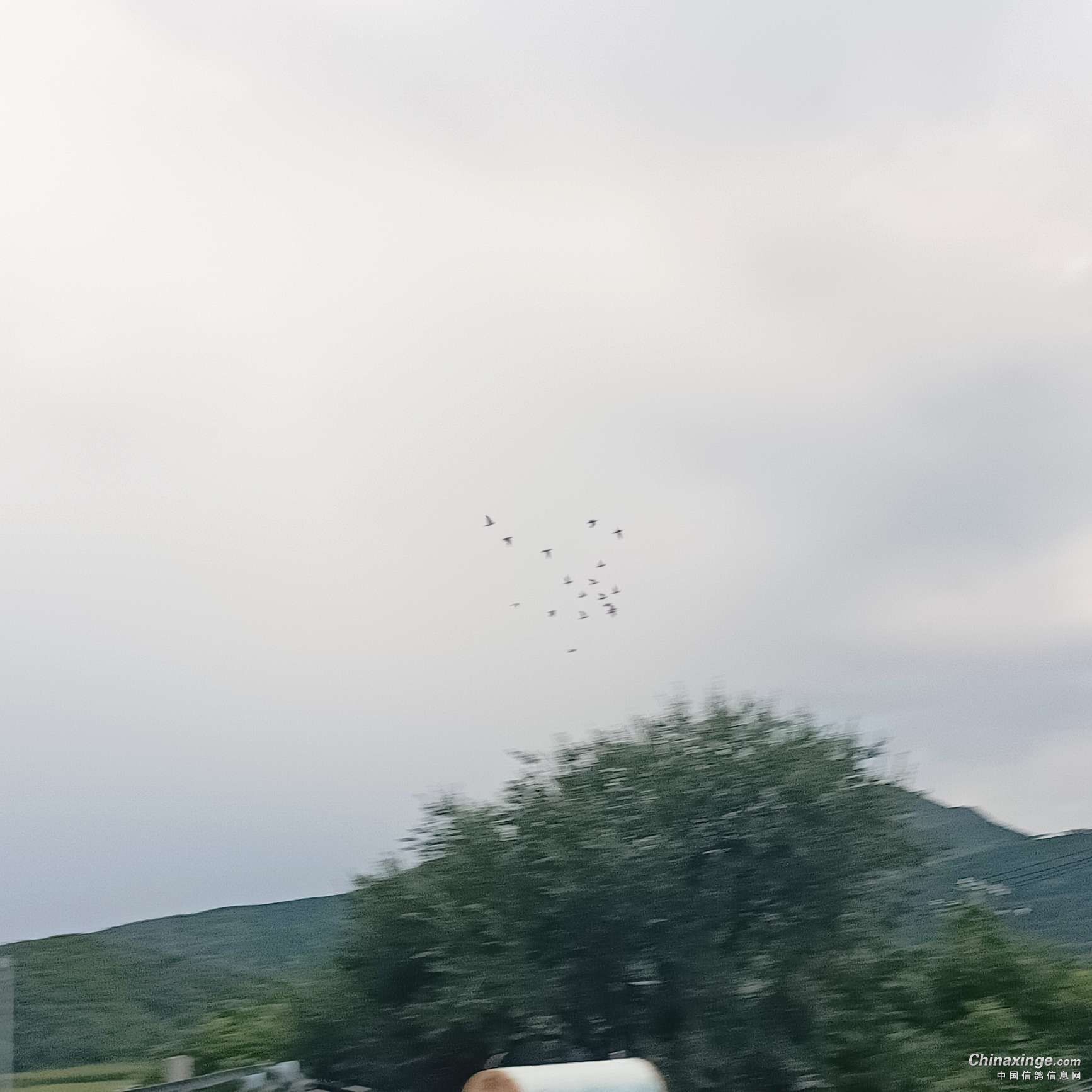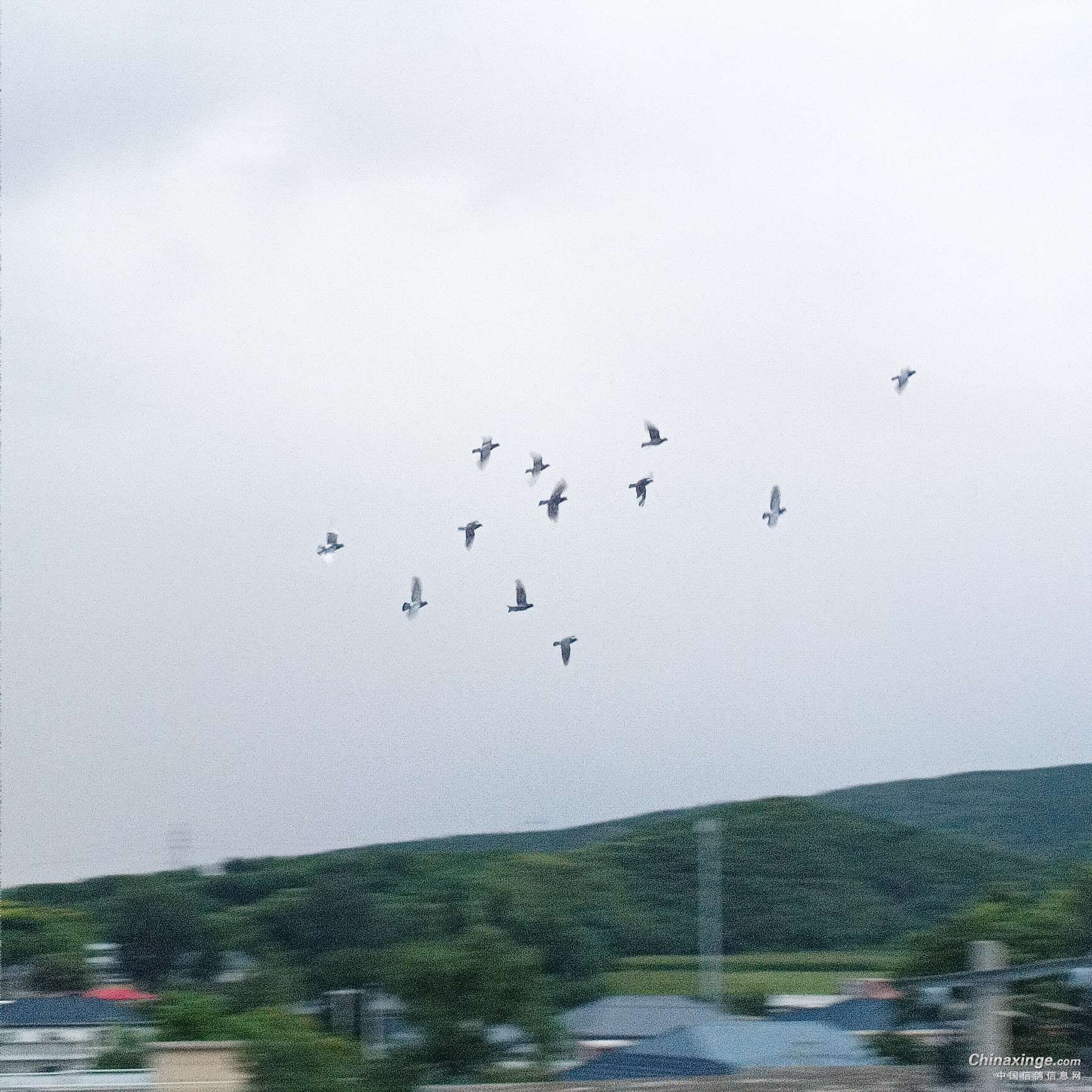 刚才我看是哪只单飞的呀?啊,就是上次被抓伤的那只。这次还不长记性。有老鹰在后边儿追着比以往飞的快了些。