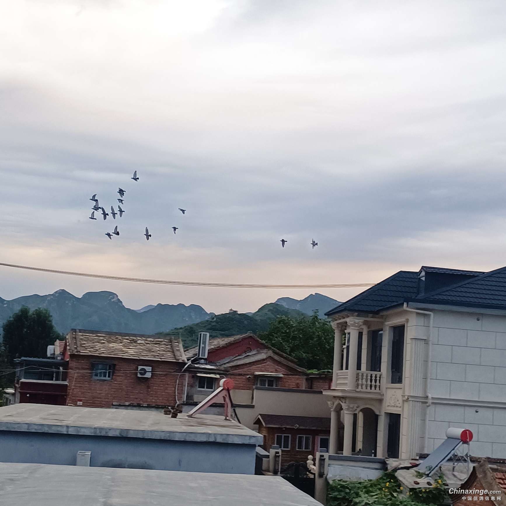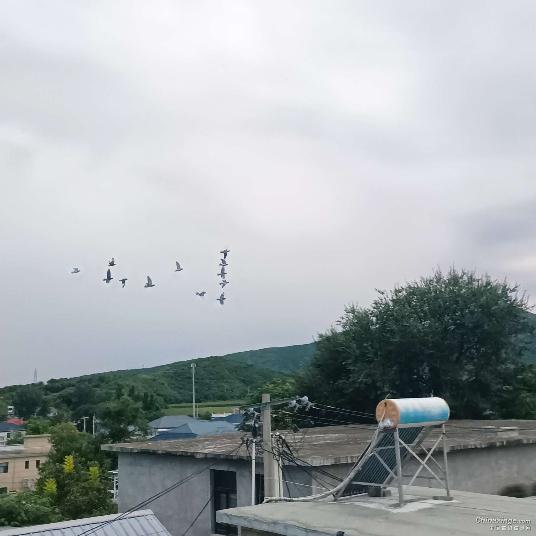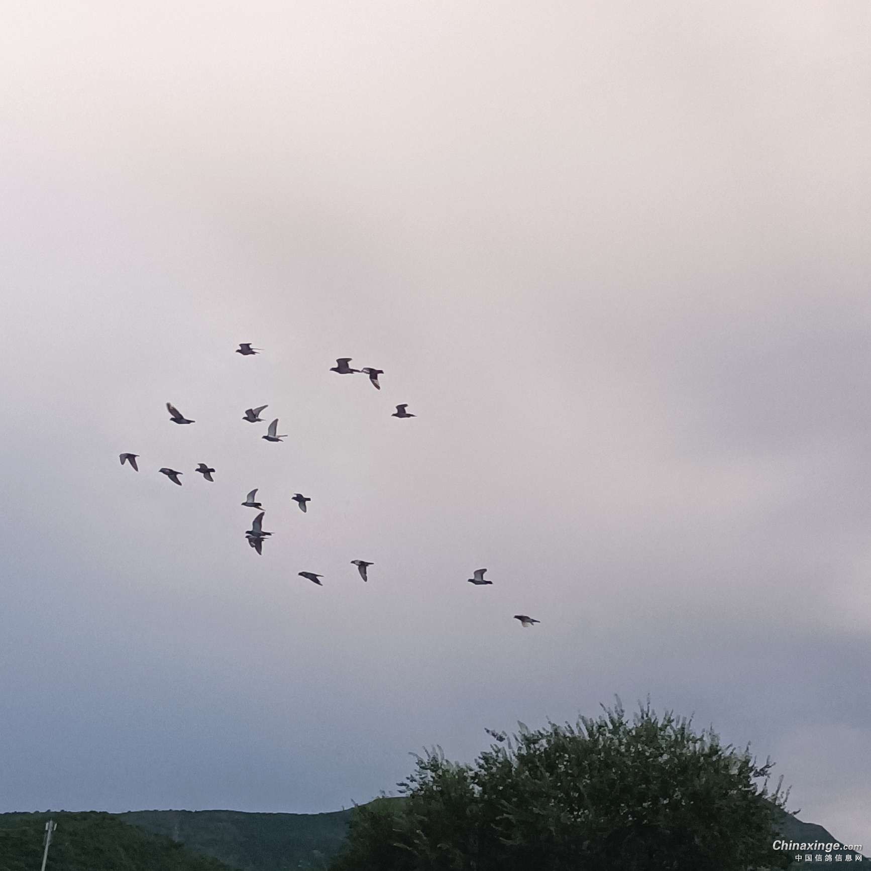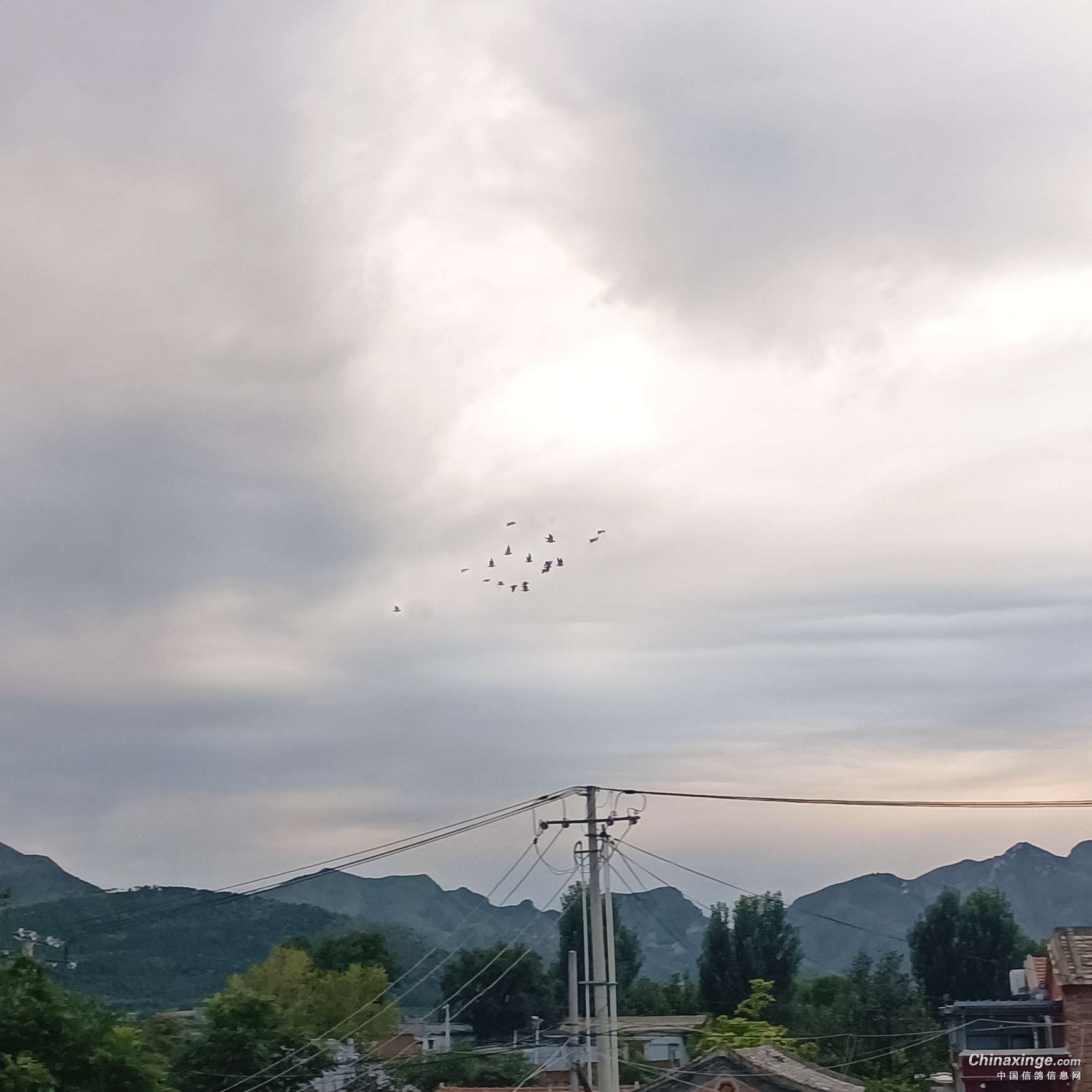 刚才我看是哪只单飞的呀?啊,就是上次被抓伤的那只。这次还不长记性。有老鹰在后边儿追着比以往飞的快了些。