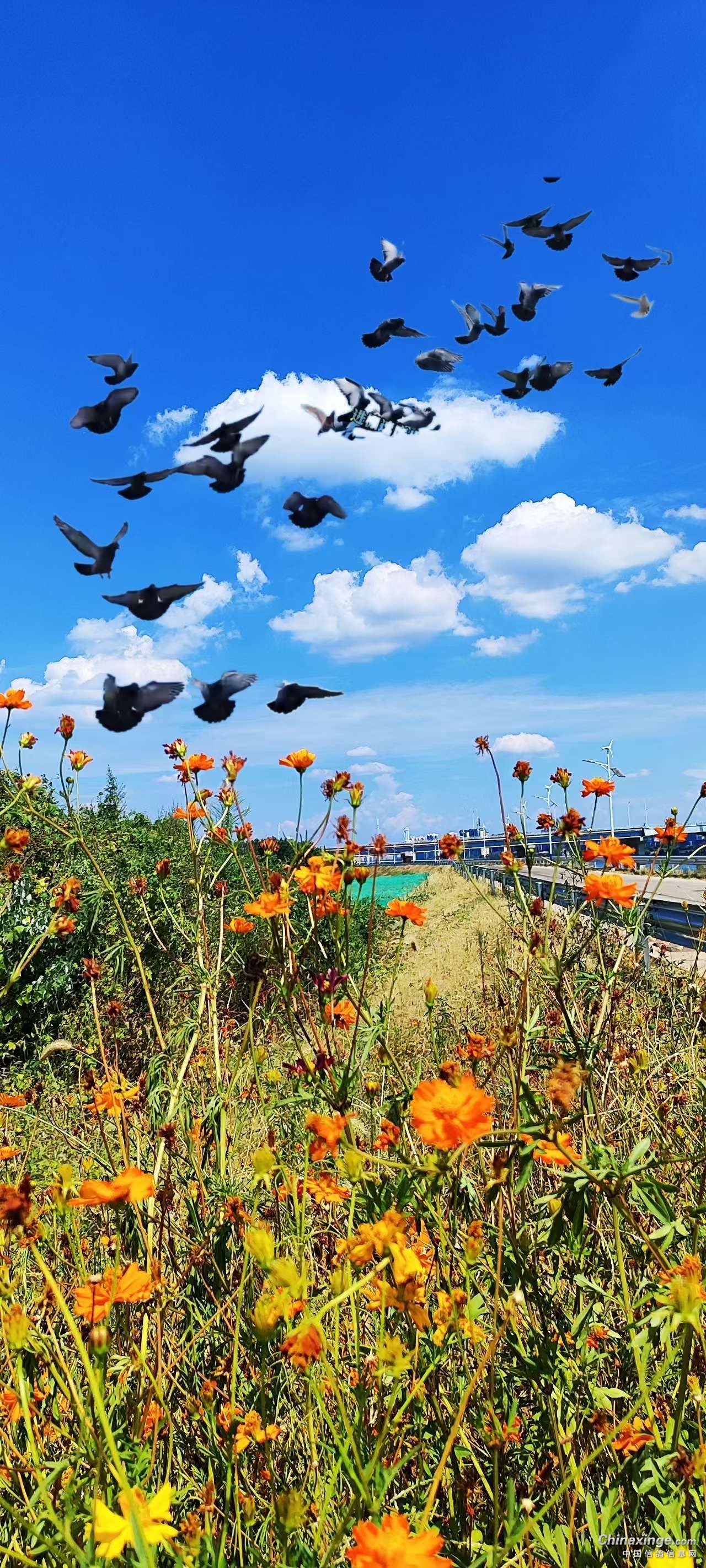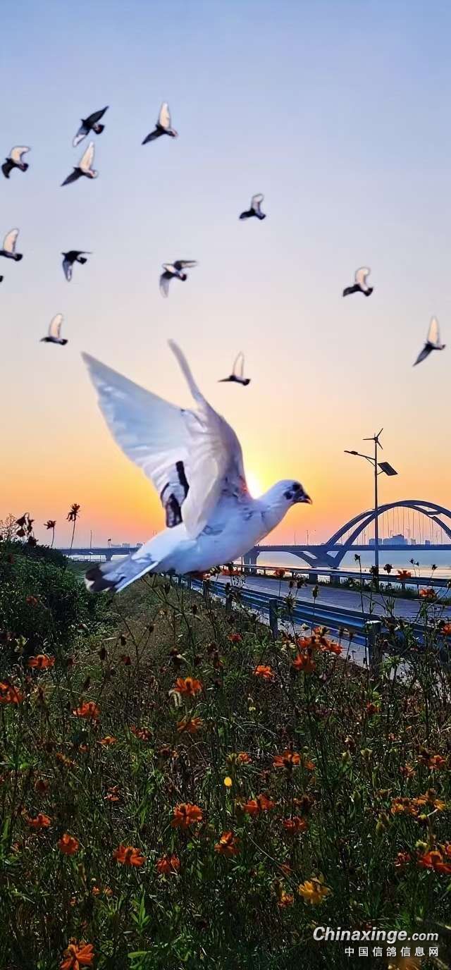 作品说明: 2025年8月27日睛,气温27至38度。今天为训放180公里启动、放飞、下摄司大桥,距离不远意义深远。为防止它们集体归巢並适行间隔10分钟一次单只放飞,没想到它们很犟、坚持集体归巢。