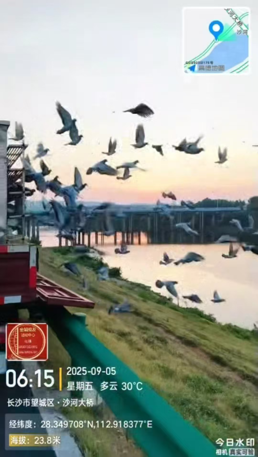 作品说明: 2025年9月5日星期五,天气:多云、最低气温30度。湘潭市信鸽协会组织放飞长沙,因天气太、热为躲避午时高温,所以,凌晨3点集鸽,6:15分开笼放飞。这也是与天斗极乐无穷抓气候的机遇。此次训放非常成功,普遍是集体归巢会员大有收获拍手叫好。