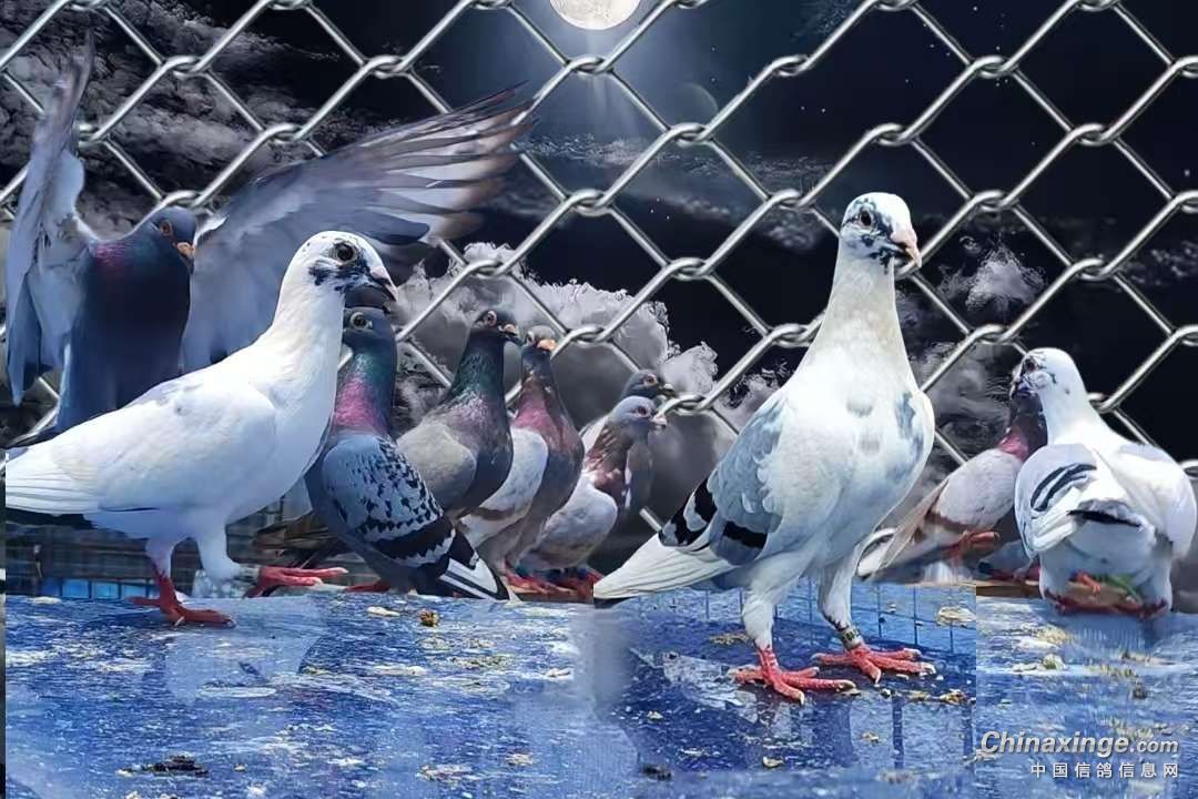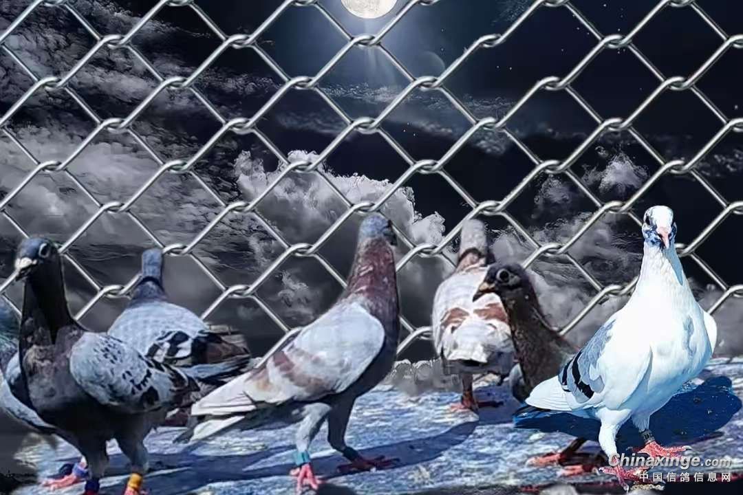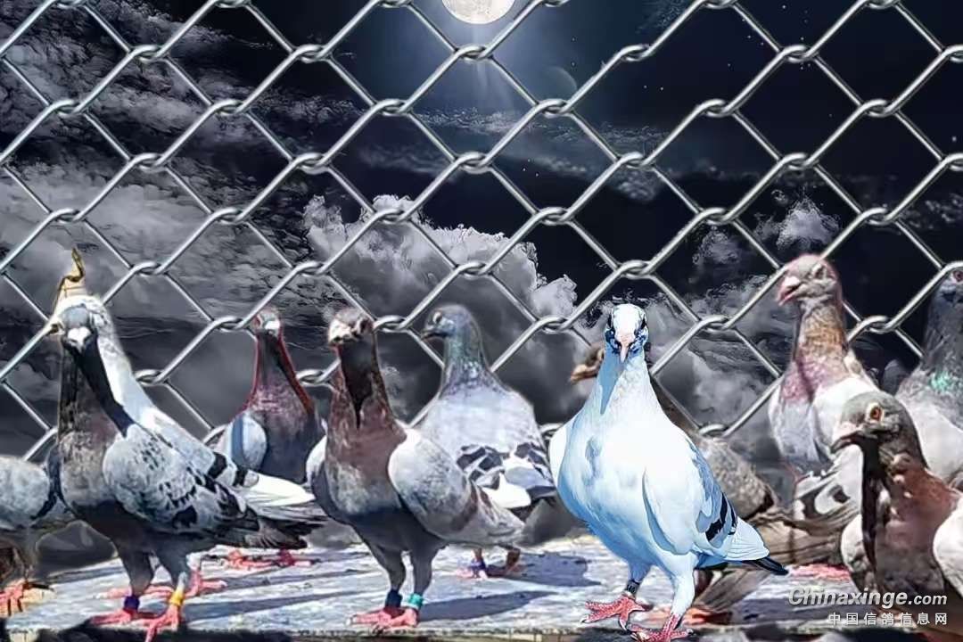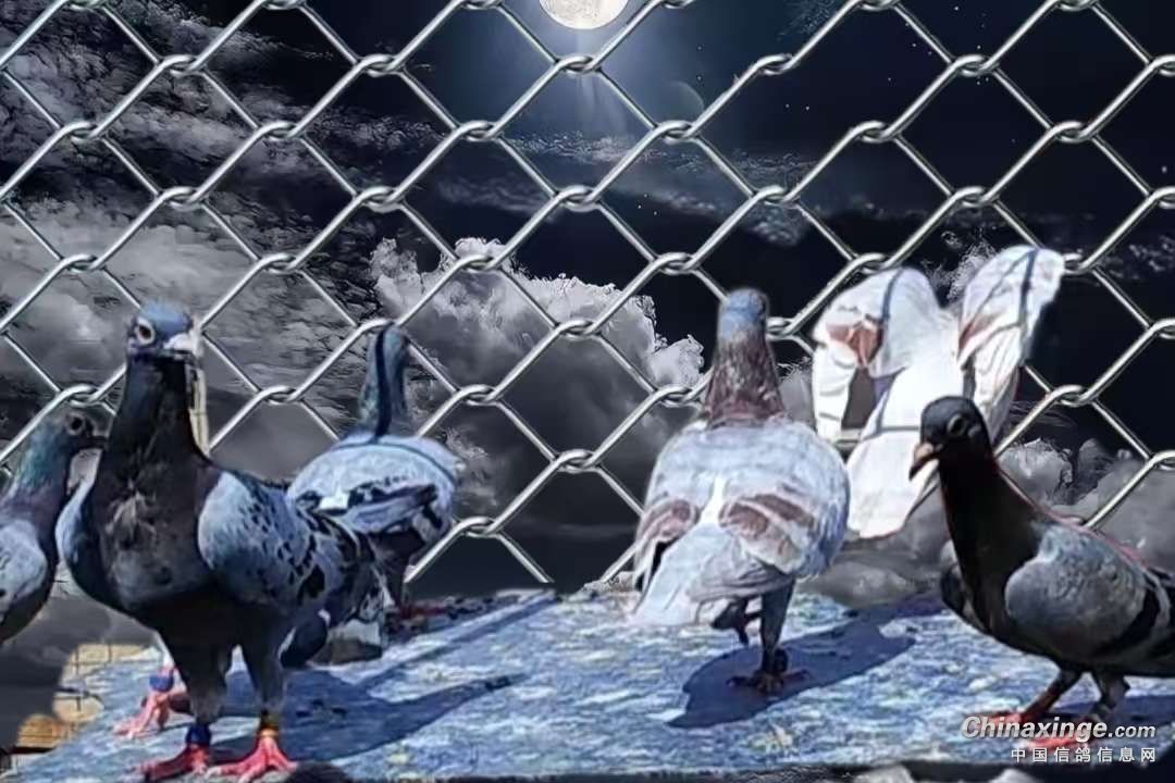 作品说明: 今天凌晨3点集鸽、训放113公公里,洁白的月光照亮了鸽舍,捉鸽入笼很方便。月光虽好、可惜如今再也不见我童年星星的记忆了,或许是导致鸽子难飞的重要原因。一阵滚滚的黑云压住了月亮,何日见云开?空气污染严重,祈祷月亮千万不能和星星一样离我们远去!