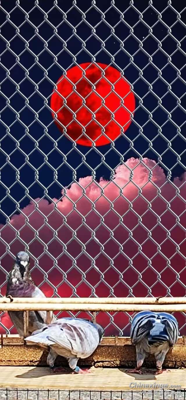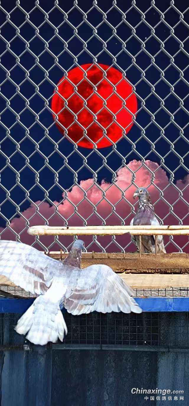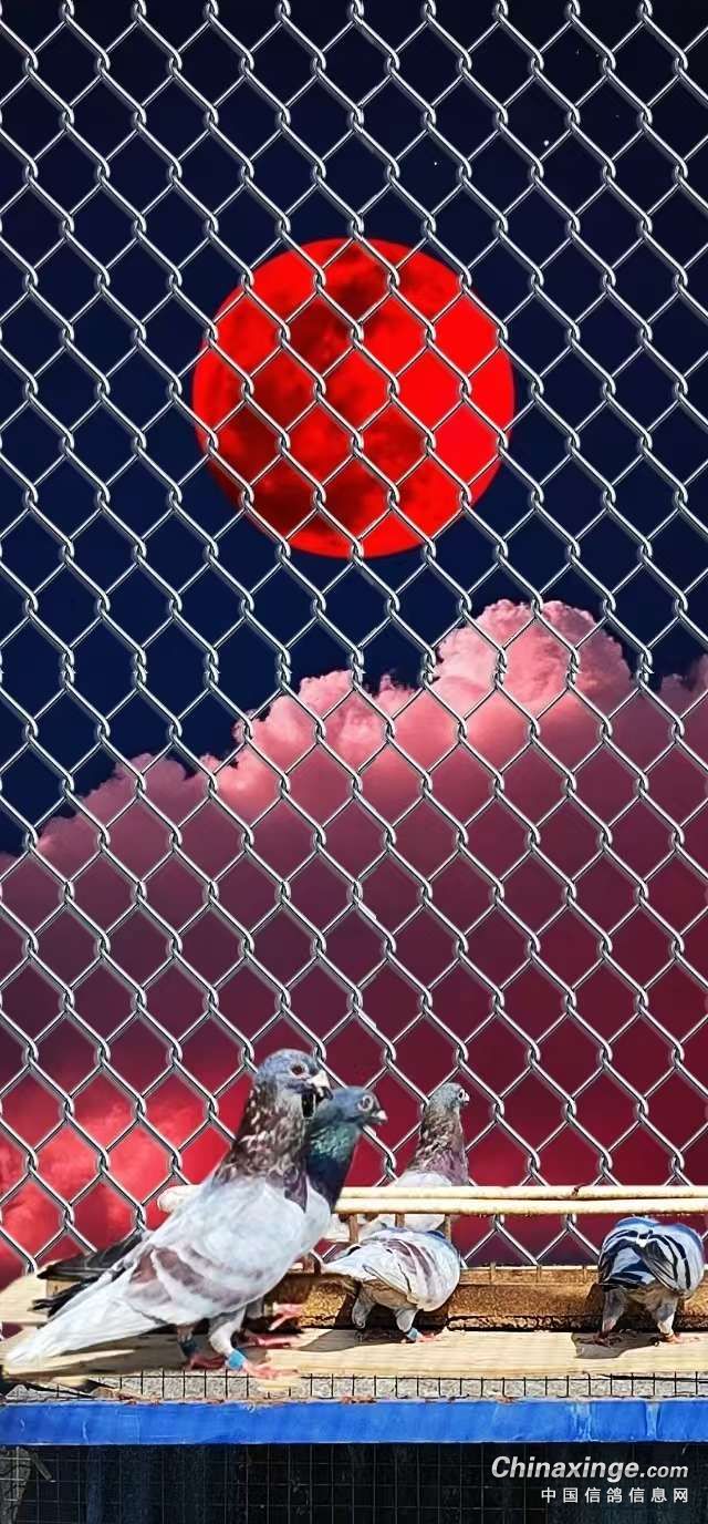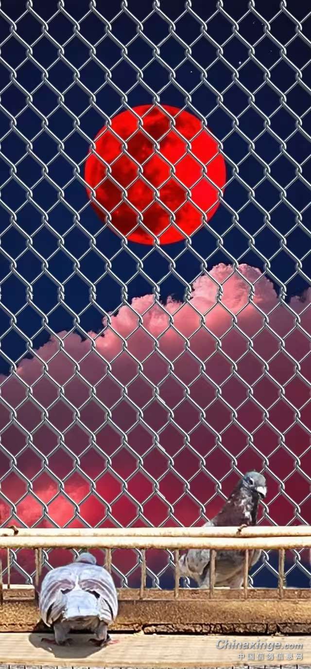 作品说明: 2025年9月8日凌晨抓鸽入笼参加训放,突然发现天上月亮是红的,並拍下照片记录养鸽打比赛的生活。翌日清晨我翻阅科普知识才知道,这是百年难遇的《血月》。