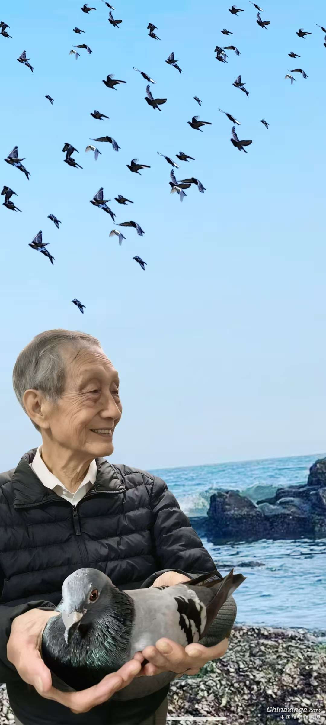 作品说明: 又逢七月思父,百岁老人远去多年。今又翻看父亲生前照,叫儿何不把泪流。生前你把鸽子拿捏得稳中有快,又准又很到恰好。如今我你的鸽子在中信网上描写得淋漓尽致。