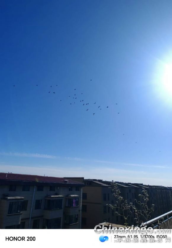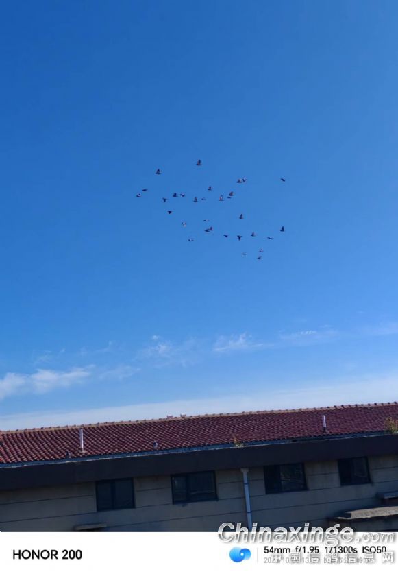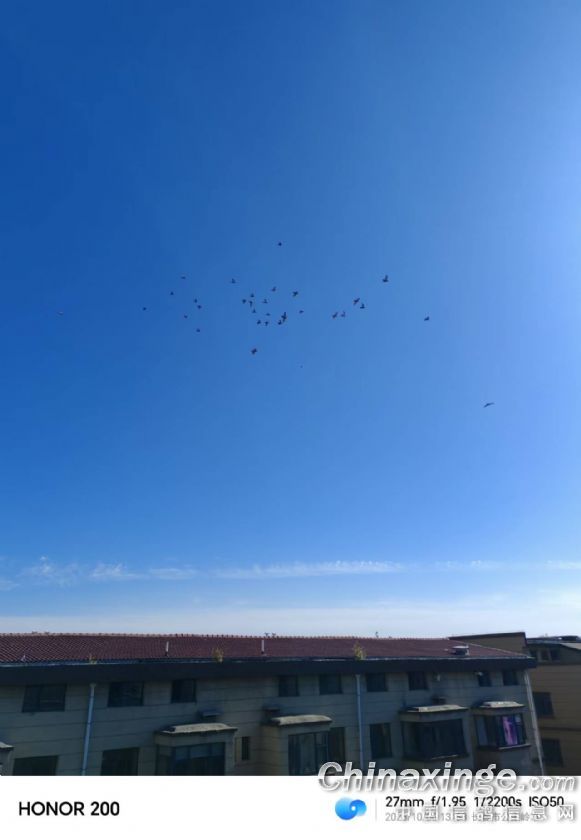 作品说明: 秋高气爽正适合鸽子家飞训练。