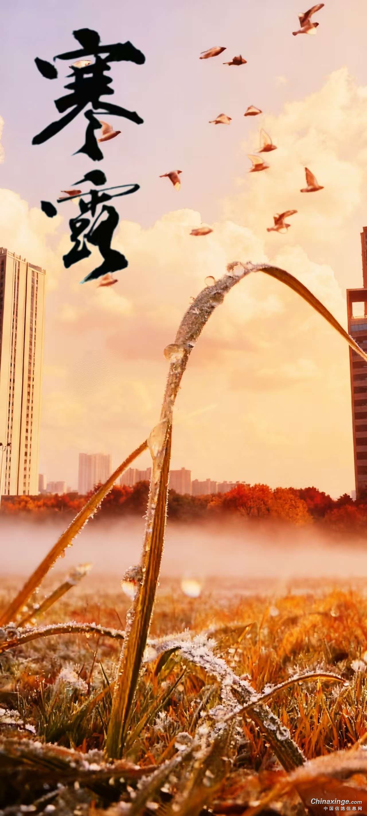 二、今天寒露,露重沾衣冷渐生,疏桐叶落雁南征。篱边菊蕊凝清霜, 风过闲阶报早晴。