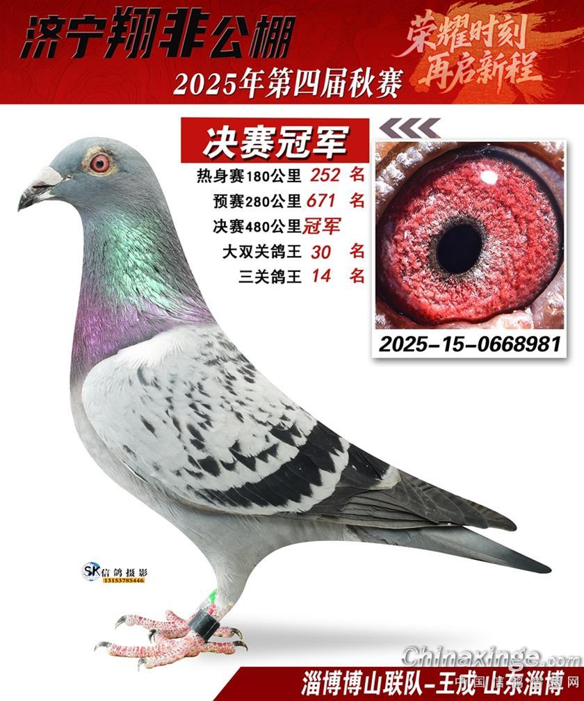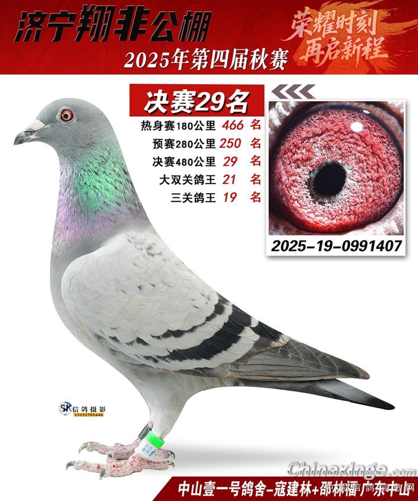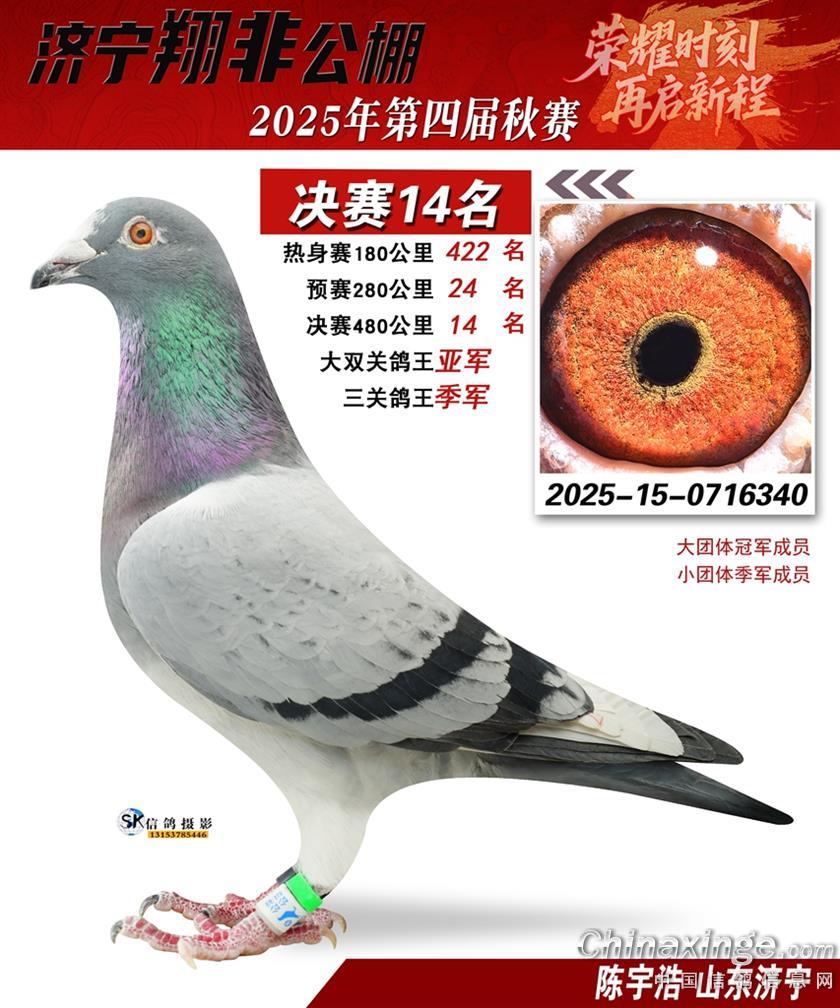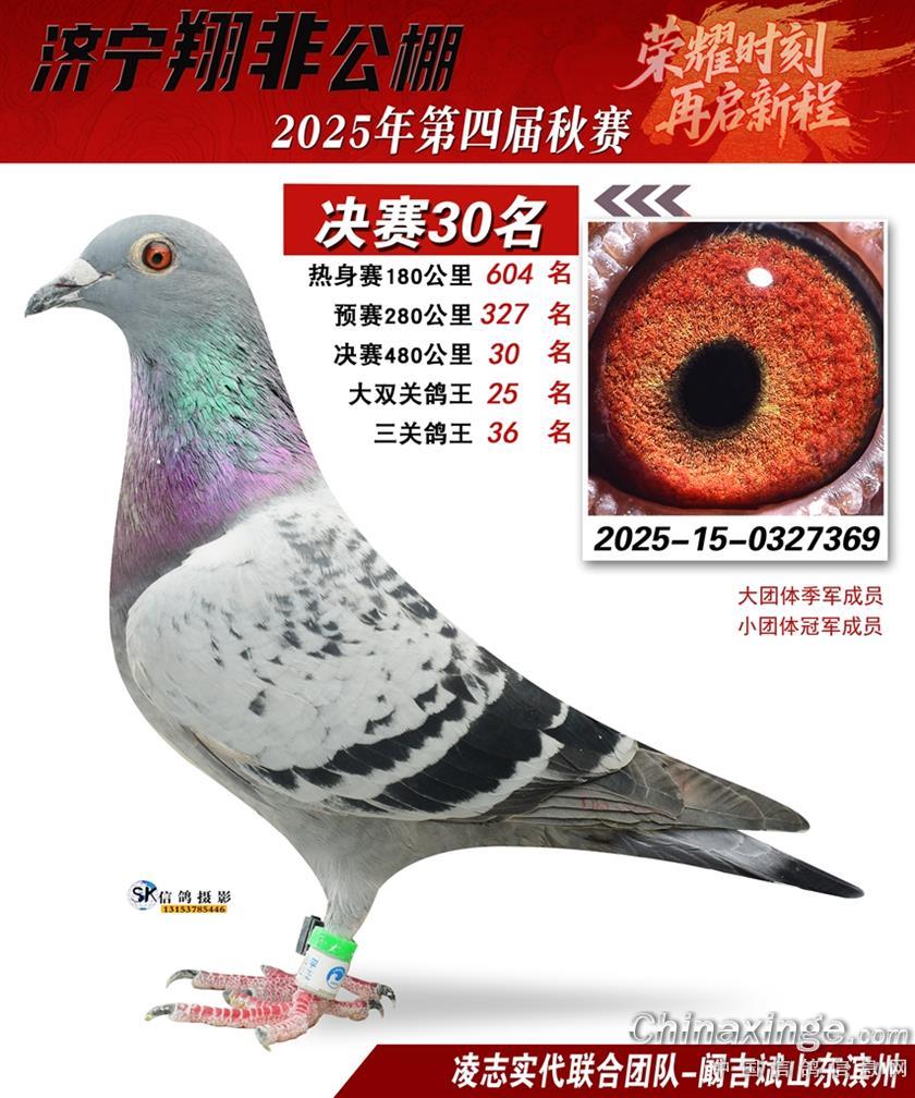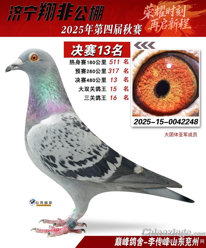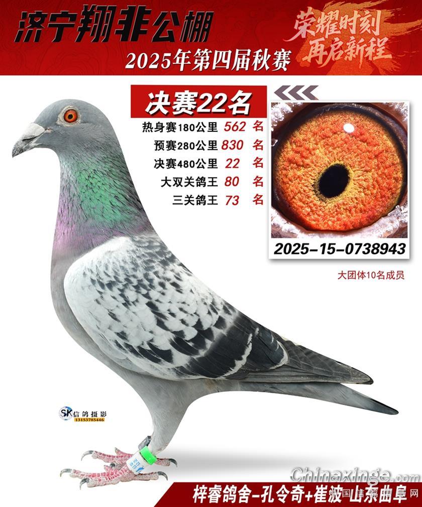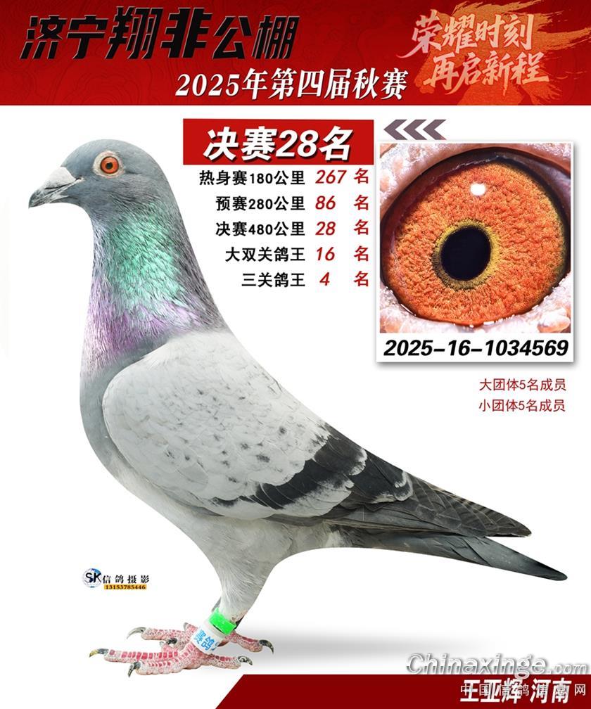 作品说明: 2025年济宁翔非公棚1-30名获奖鸽