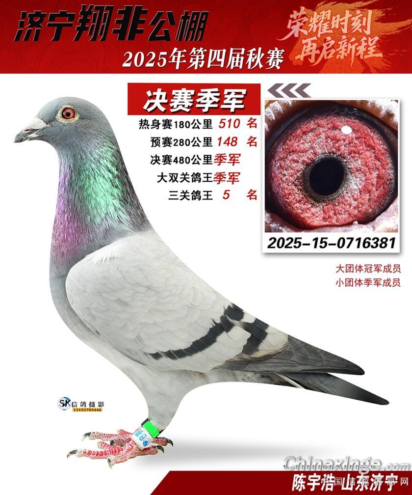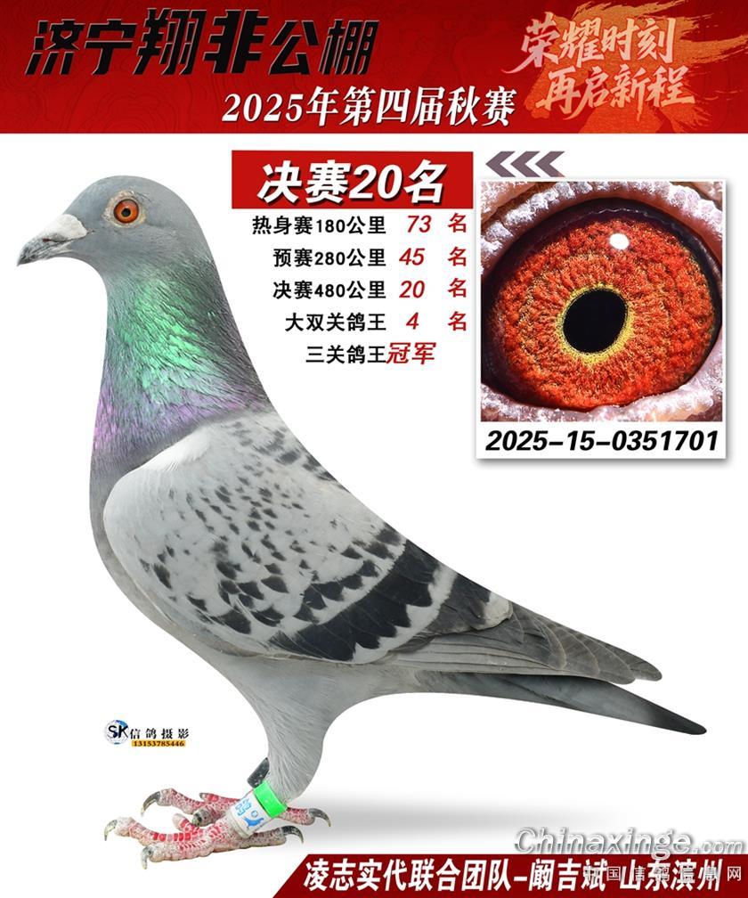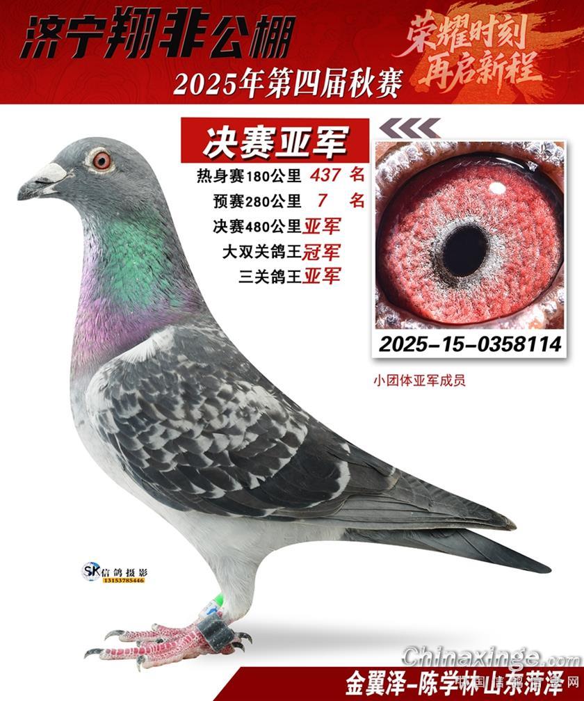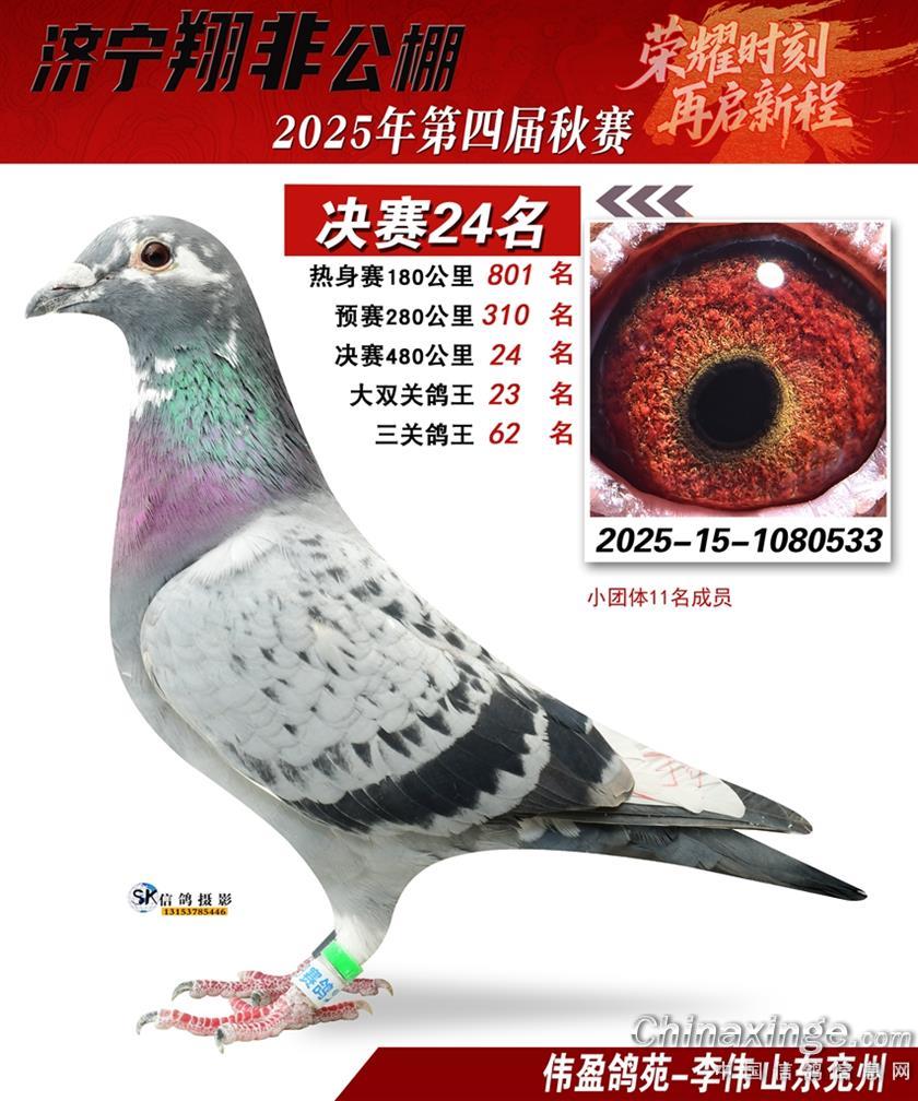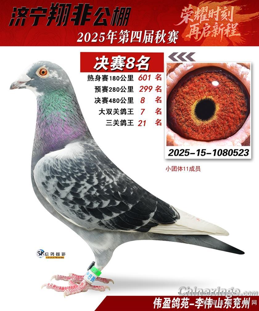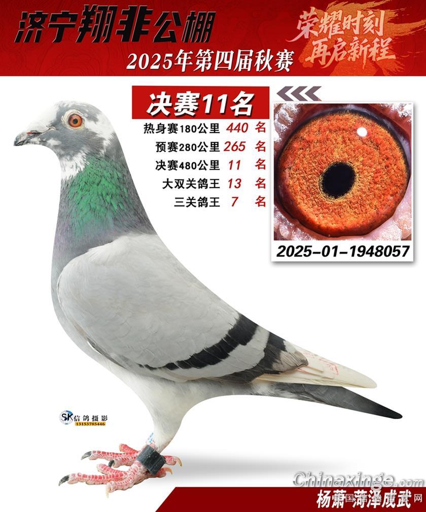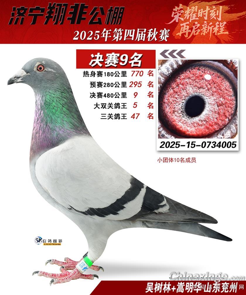 作品说明: 2025年济宁翔非公棚1-30名获奖鸽