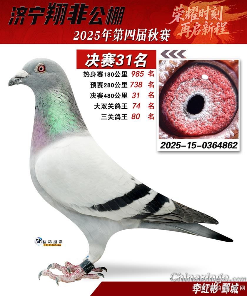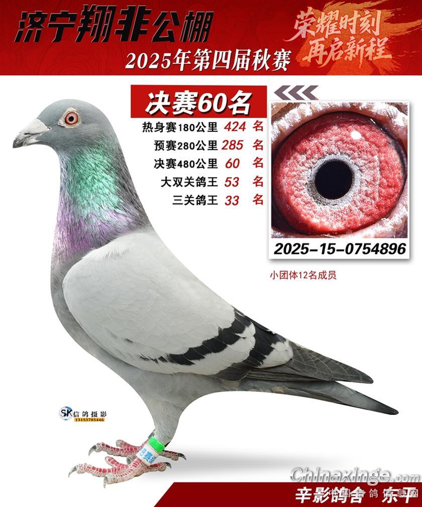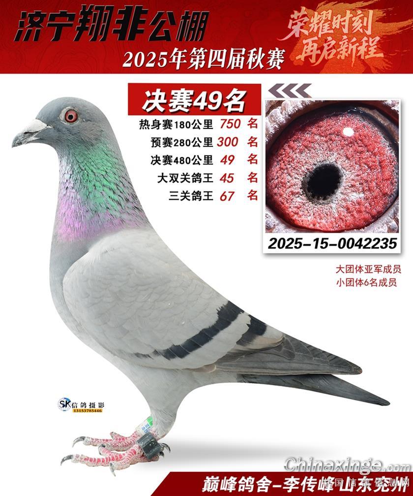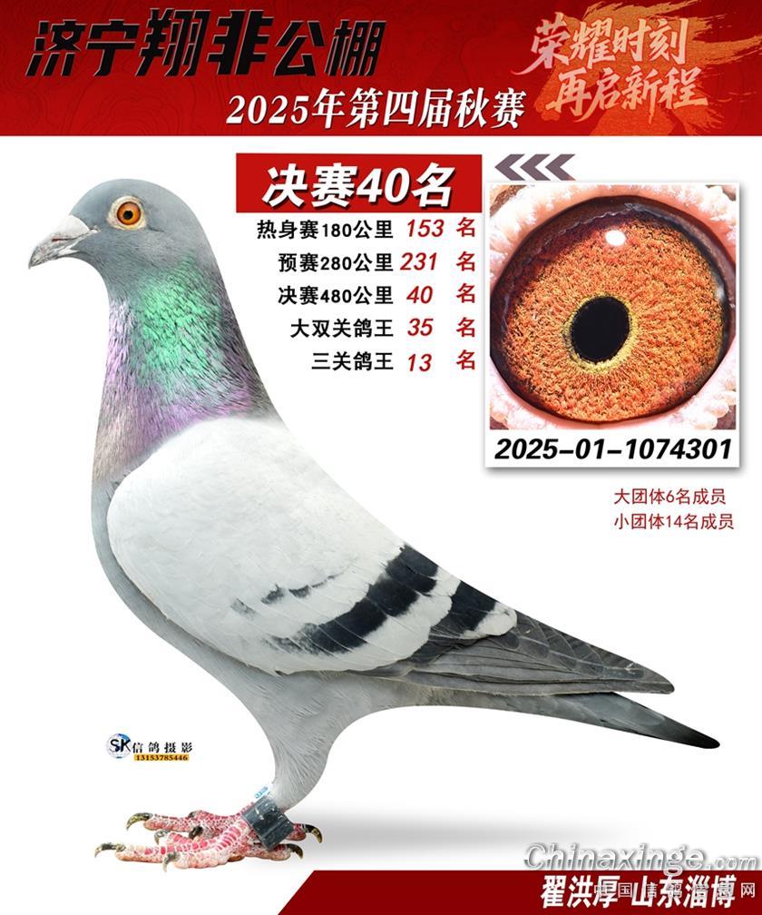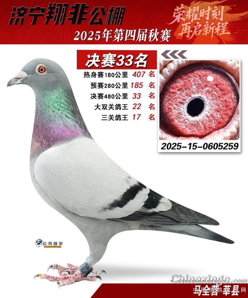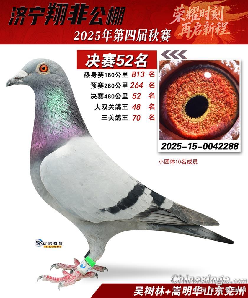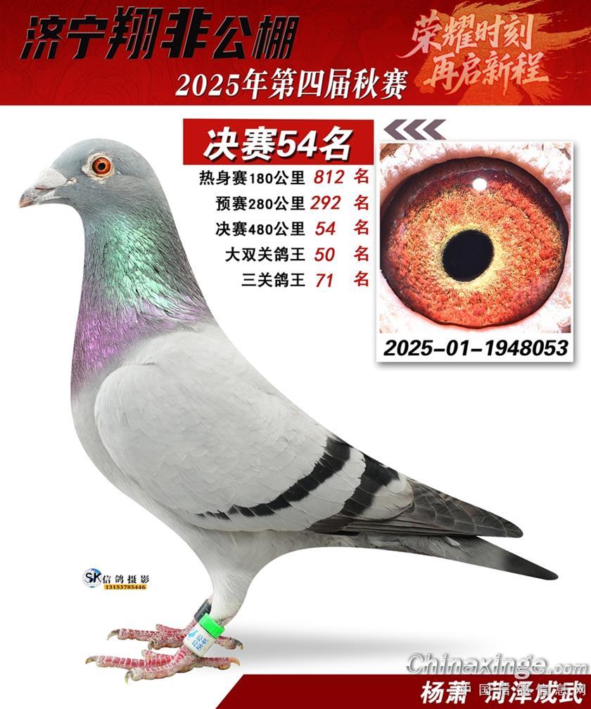 作品说明: 2025年济宁翔非公棚31-60名获奖鸽