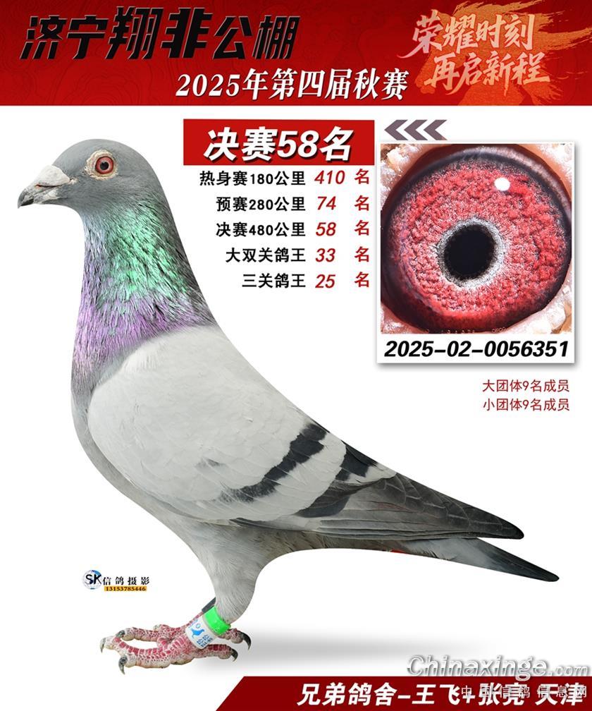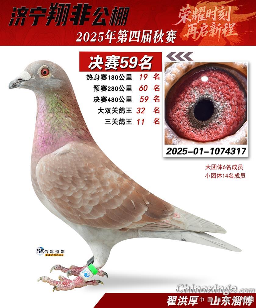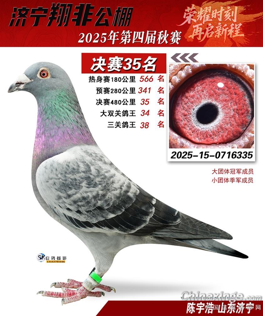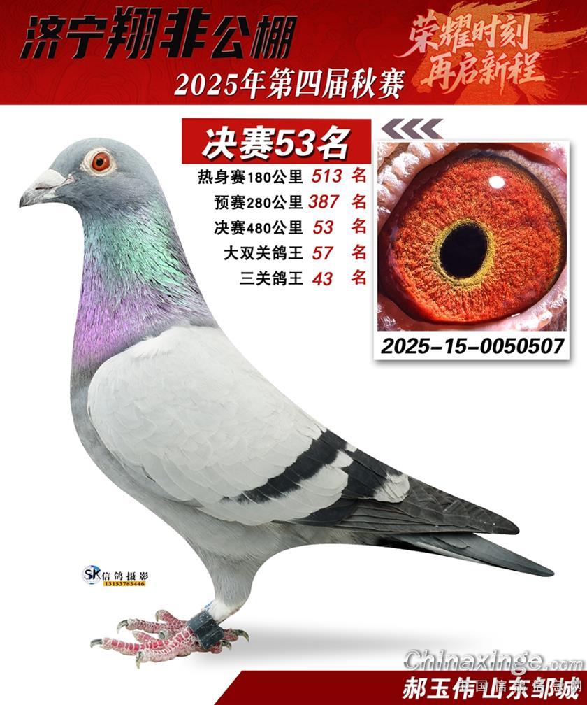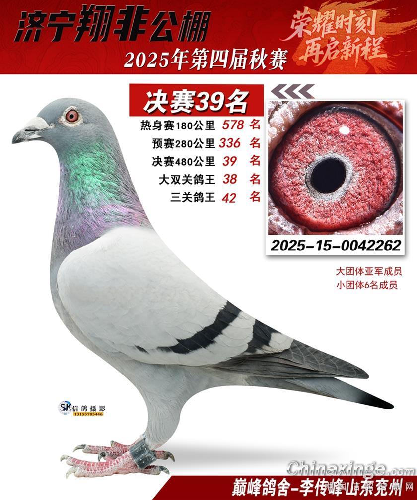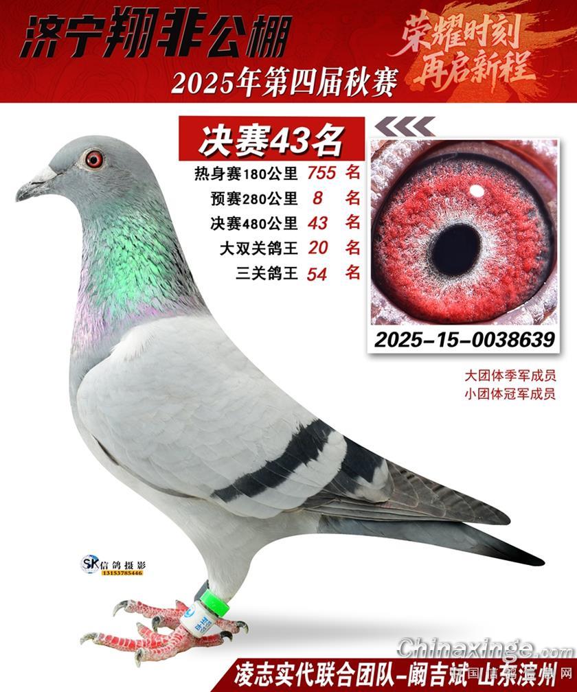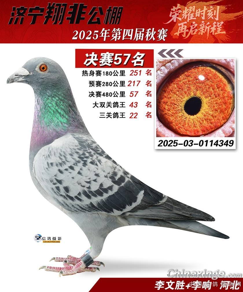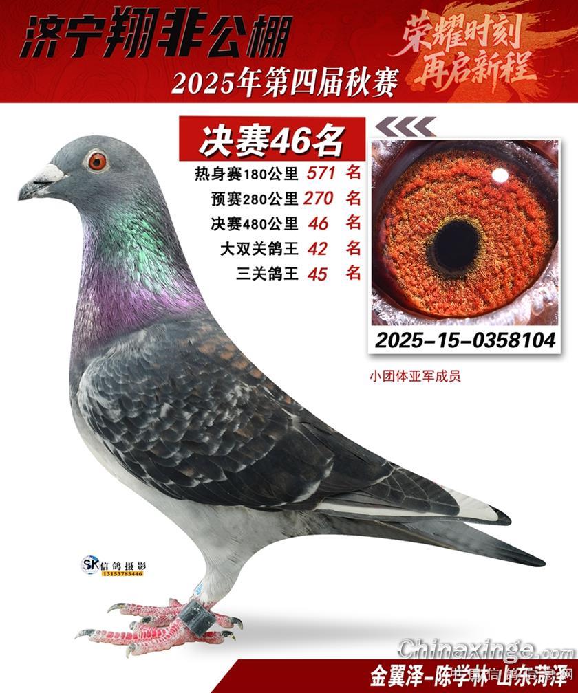 作品说明: 2025年济宁翔非公棚31-60名获奖鸽